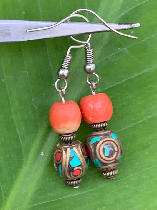 Boucles d'oreilles en perles facettées de Corail rouge avec perle d'Inde en turquoise. Finition Argent 925, laiton argenté ou doré, parfait !