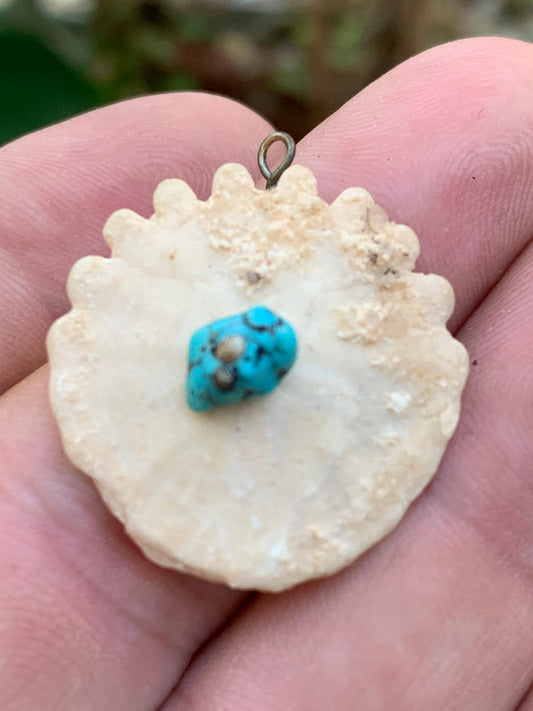 Oursin avec Turquoise, pendentif de 30x27x8 millimètres - 2,9 gr. Vendu avec cordon noir réglable offert, parfait !
