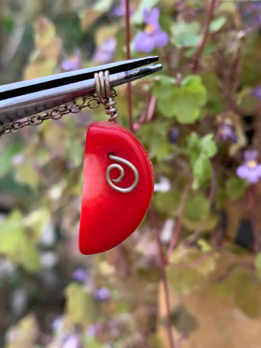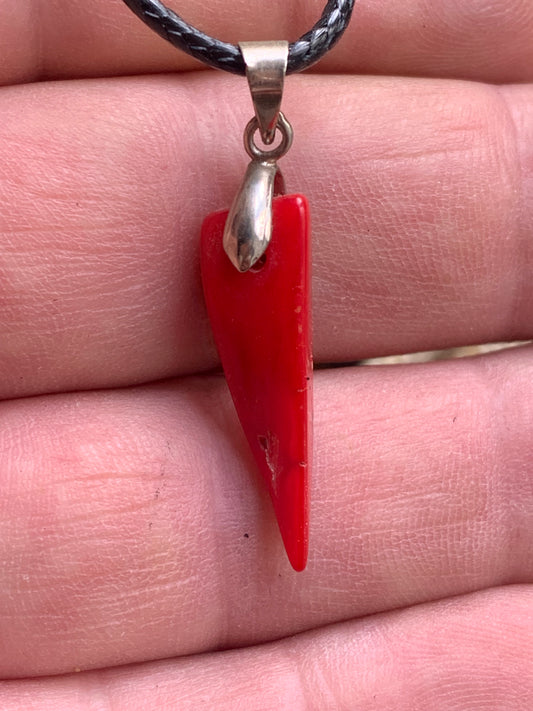 Corail/ Gorgone, pendentif en Argent fait par G & Z, de 26x10x7 millimètres, vendu avec cordon coulissant (réglable), en cuir noir de 40 à 70 centimètres !