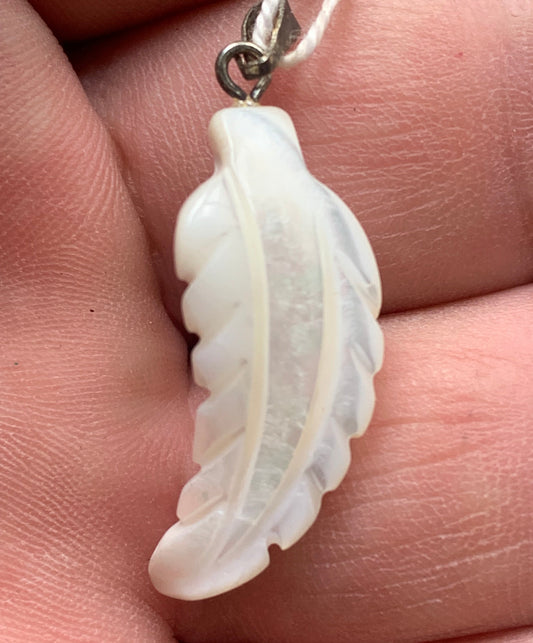 Nacre, pendentif en forme de plume, de 35 mm x11 x3. Vendu avec ou sans cordon noir et réglable de 60 cm !
