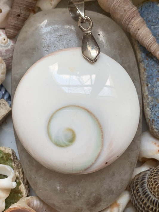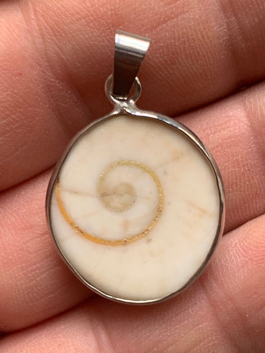 Oeil de Sainte-Lucie, pendentif de 42 millimètres de hauteur x 30 mm de largeur x 7 millimètres. Vendu avec cordon noir réglable offert !