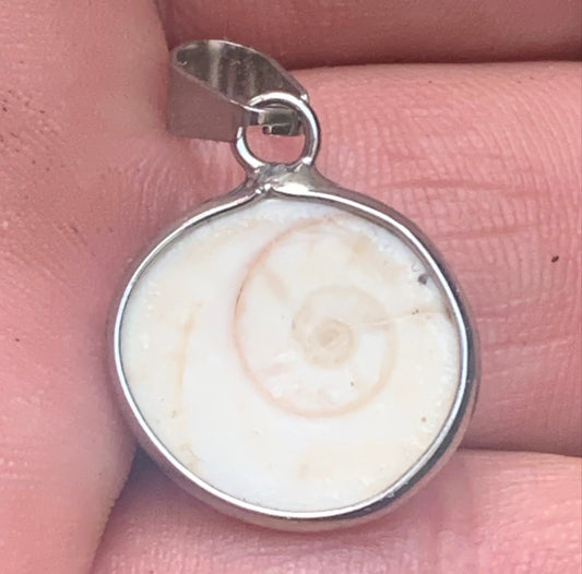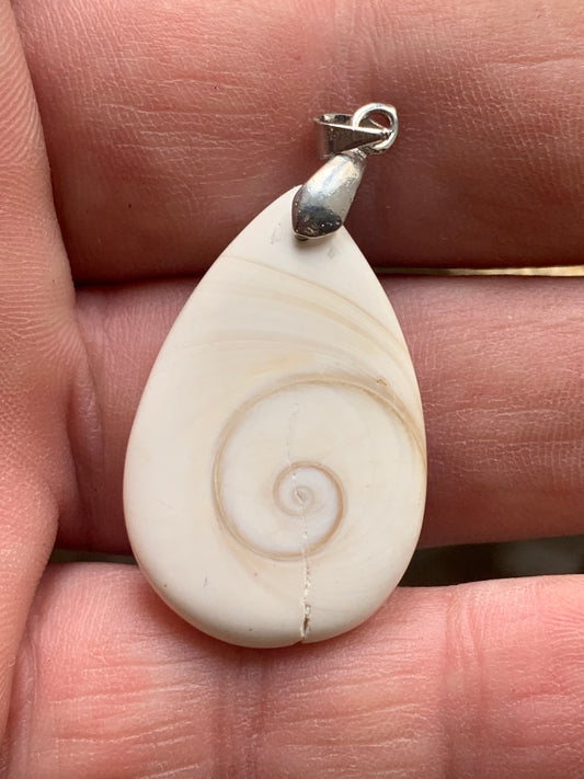 Oeil de Sainte-Lucie, pendentif de 42 millimètres de hauteur x 20 mm de largeur x 7 millimètres. Vendu avec cordon noir réglable offert !