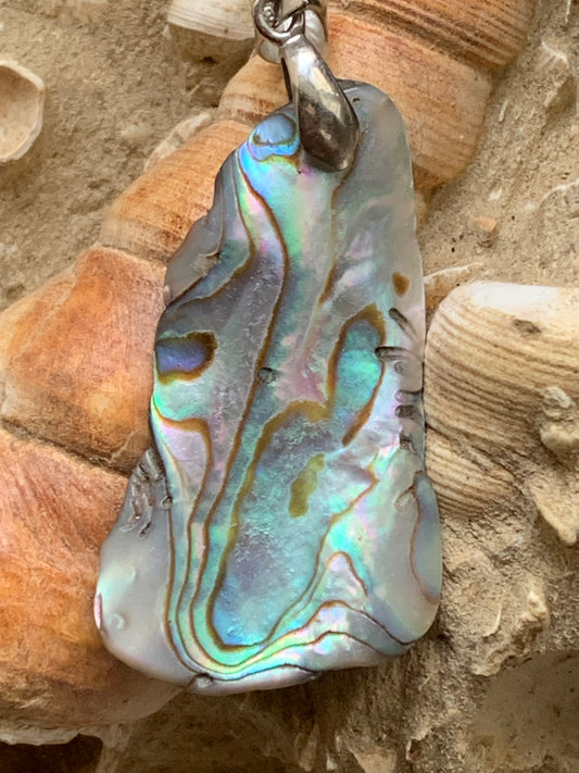 Nacre, pendentif en Ormeau de 60 millimètres x22 x3. Vendu avec ou sans cordon noir et réglable de 60 cm !