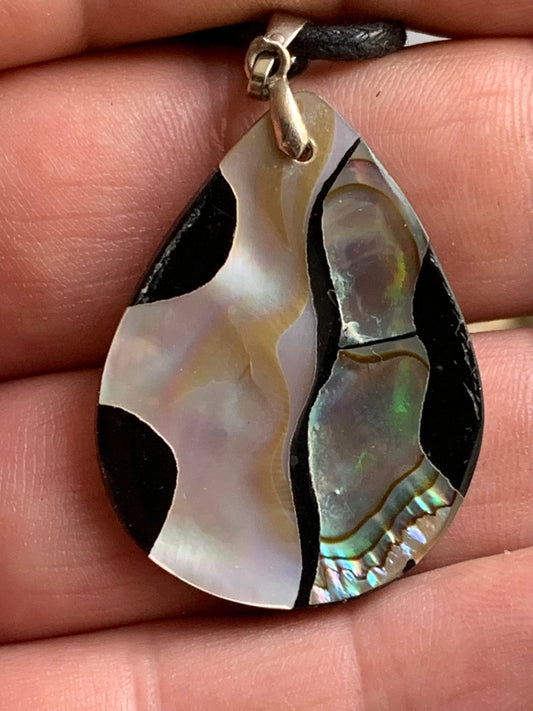 Nacre, pendentif en Ormeau de 45 millimètres x26 x5. Vendu avec ou sans cordon noir et réglable de 60 cm !