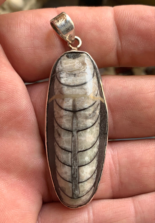Orthoceras, pendentif de 60 millimètres x21 x11. Vendu avec ou sans cordon noir et réglable de 60 cm !