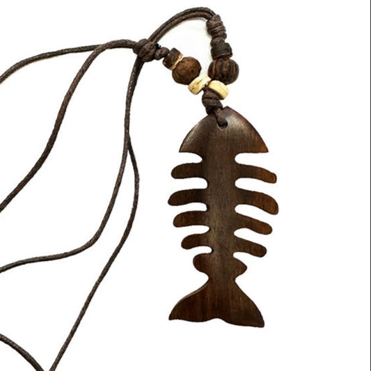 Collier/ sautoir de perles et pendentif en bois, 50 cm - Pendentif : environ 7 x 4 centimètres !