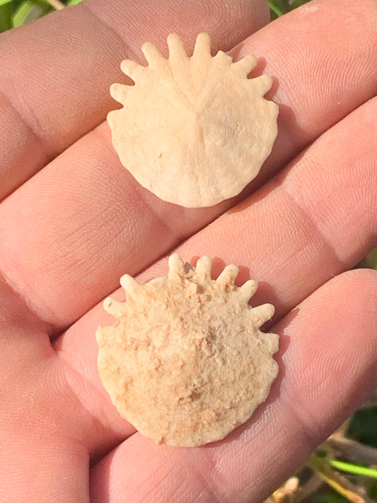 Oursin de Mauritanie aussi appelé 'échinide fossile', de 29 mm de diamètre x 5 - 3 grammes. Spècimen percé au centre pour bijouterie ou parfait pour collection, exposition...