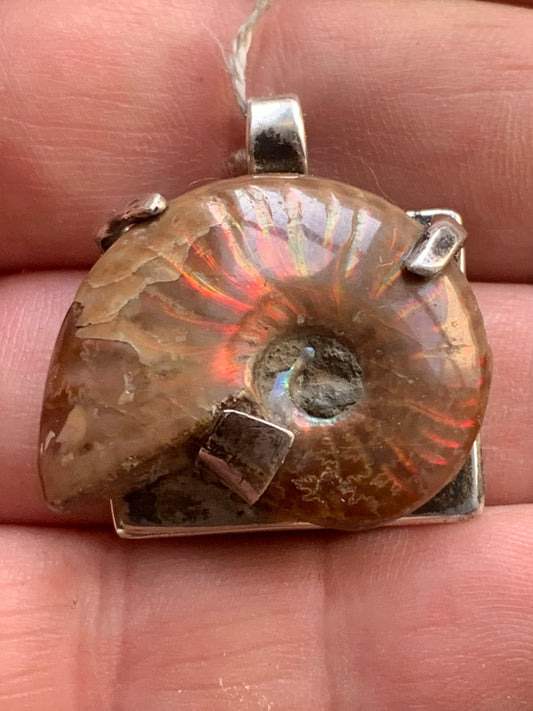 Ammonite nacré, joli pendentif avec structure en Argent 025 rhodié. Taille de 31 millimètres x 30 x 12. Vendu avec ou sans cordon noir et réglable de 60 cm !