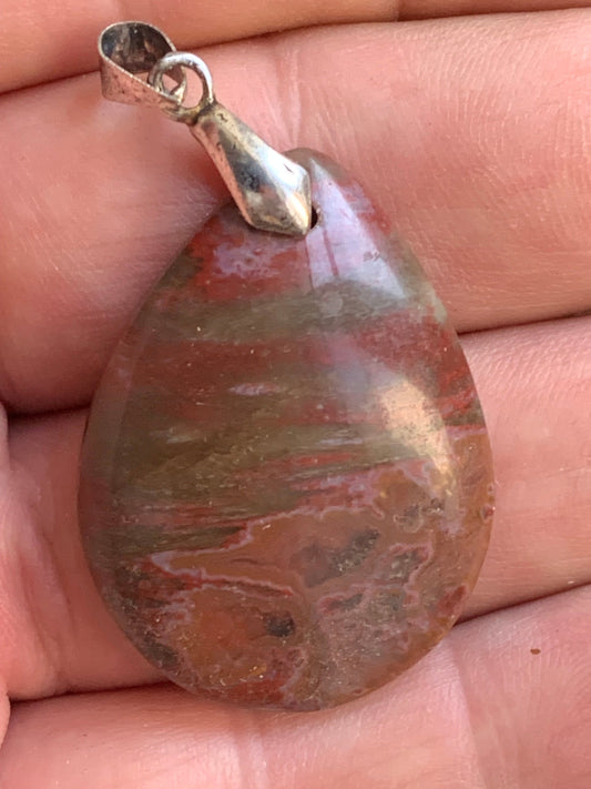 Bois fossilisé/ pétrifié, pendentif en cabochon de 48x25x6 millimètres, vendu avec cordon coulissant (réglable) marron de 40 à 70 centimètres !