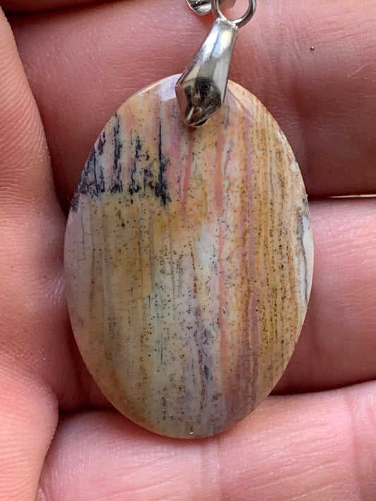 Bois fossilisé/ pétrifié, pendentif en cabochon de 48x26x7 millimètres, vendu avec cordon coulissant (réglable) marron de 40 à 70 centimètres !