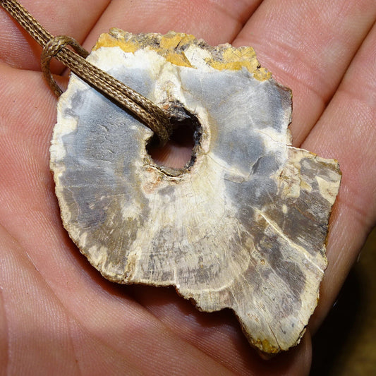 Bois fossilisé/ pétrifié, pendentif de 58x42x8 millimètres, vendu avec cordon coulissant (réglable) marron de 40 à 70 centimètres !