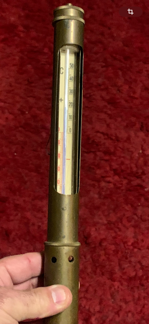 Antique brass nautical thermometer - 31 cm high x 3.5 cm in diameter