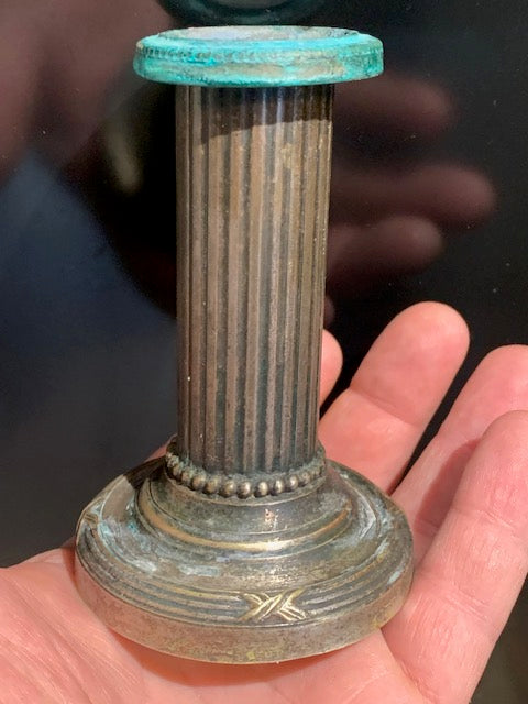 Antique 19th-century style candlestick, 10 cm high x 6.6 x 4.2 cm - Made of bronze-type metal