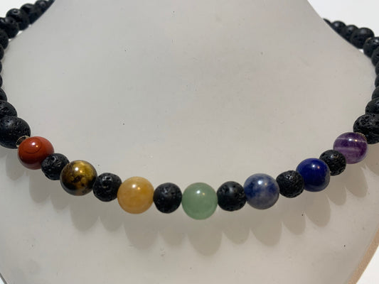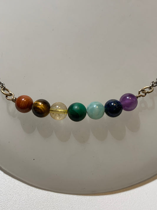 Necklace created by Zen Curiosity â 7 chakras, round beads â Length 43 cm with a 6 cm extension â 3 finishes to choose from