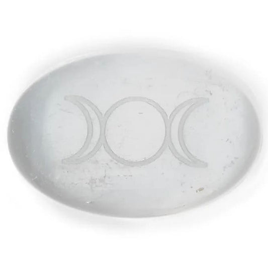 Selenite pebble, with engraving of triple moon symbol - 5.5 x 4 x 1.5 cm - 65 gr.