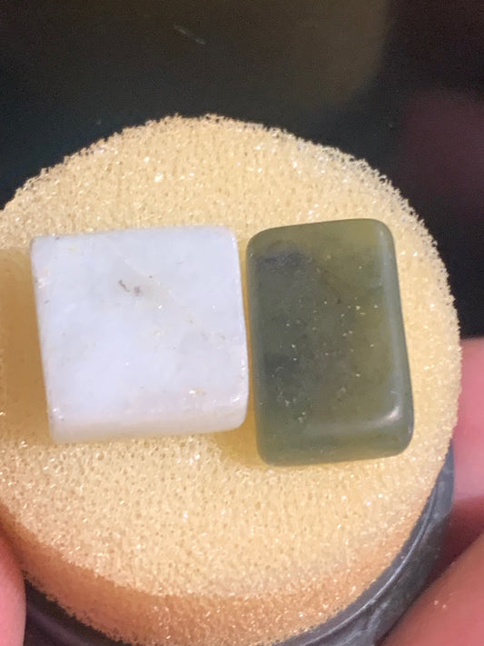 Jadeite cabochon – Set of 2 samples – approx. 1 × 1.5 × 3 mm