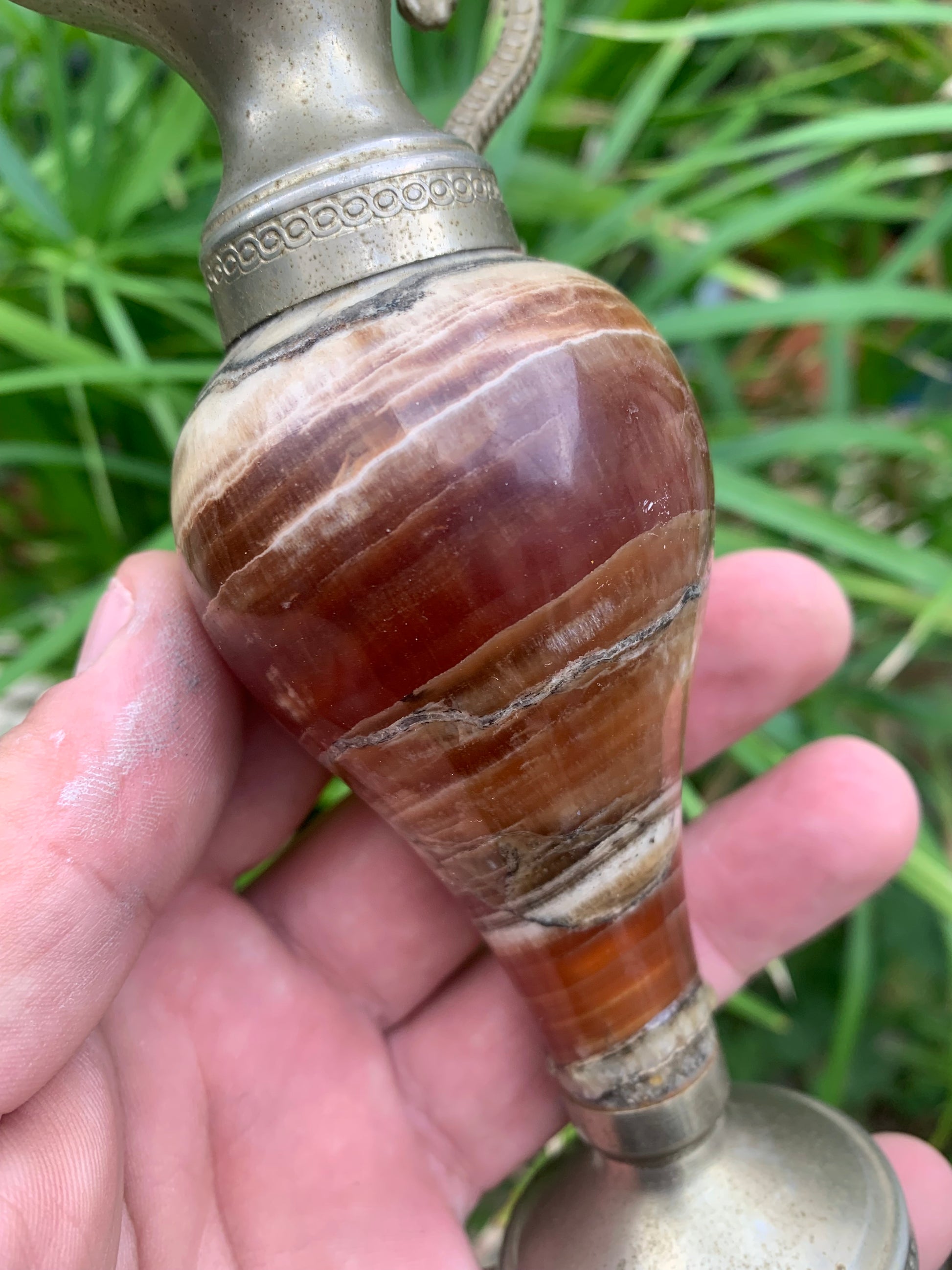 Decorative vase/pitcher made of onyx stone and metal (brass) - Superb antique piece, second-hand (perfect condition).