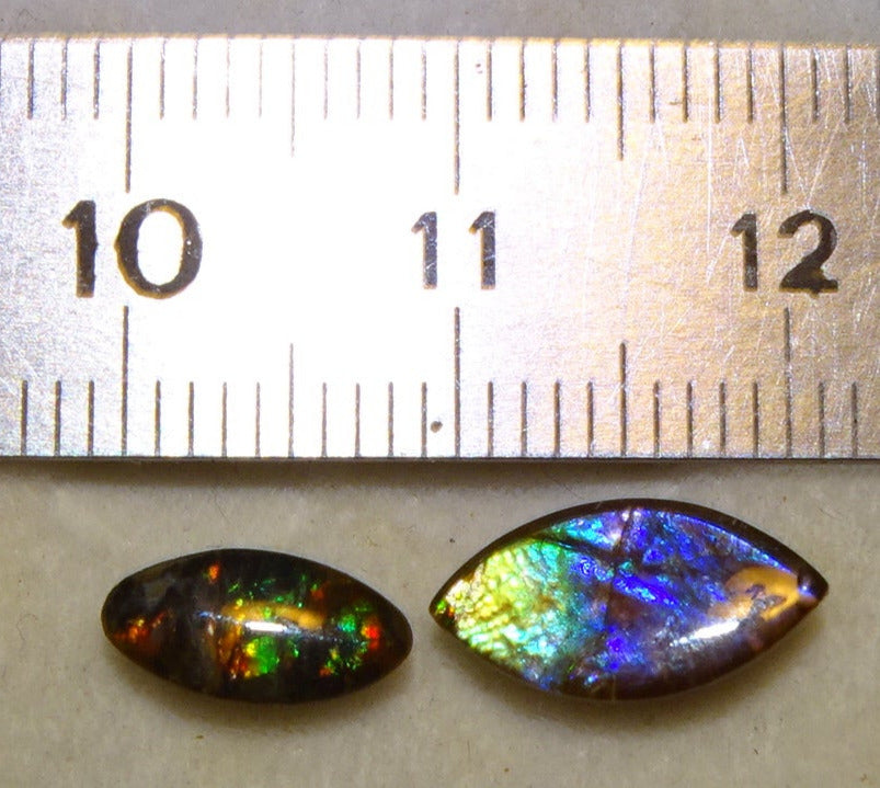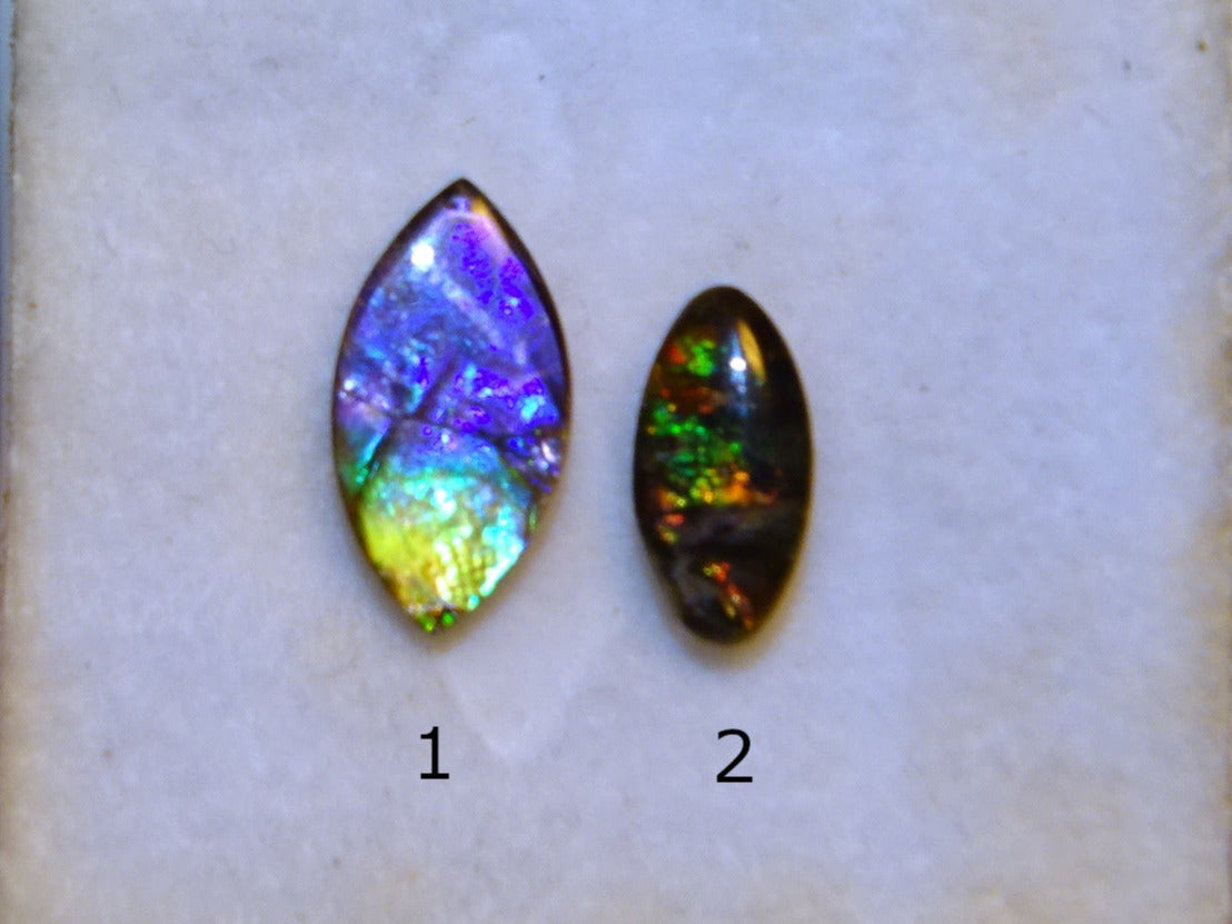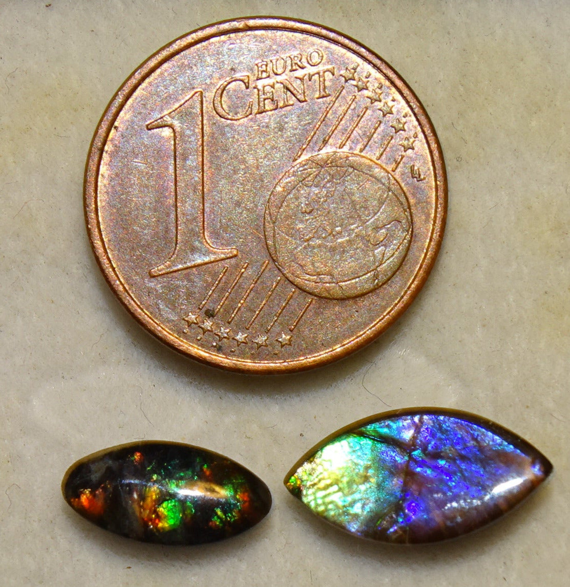 Ammolites 'véritables', 2 pièces au choix de 0,9x0,4x0,1 et 12x0,5x0,2 mm, magnifiques reflets multicolores, très belles pièces, parfait en bijouterie, collection ,exposition...