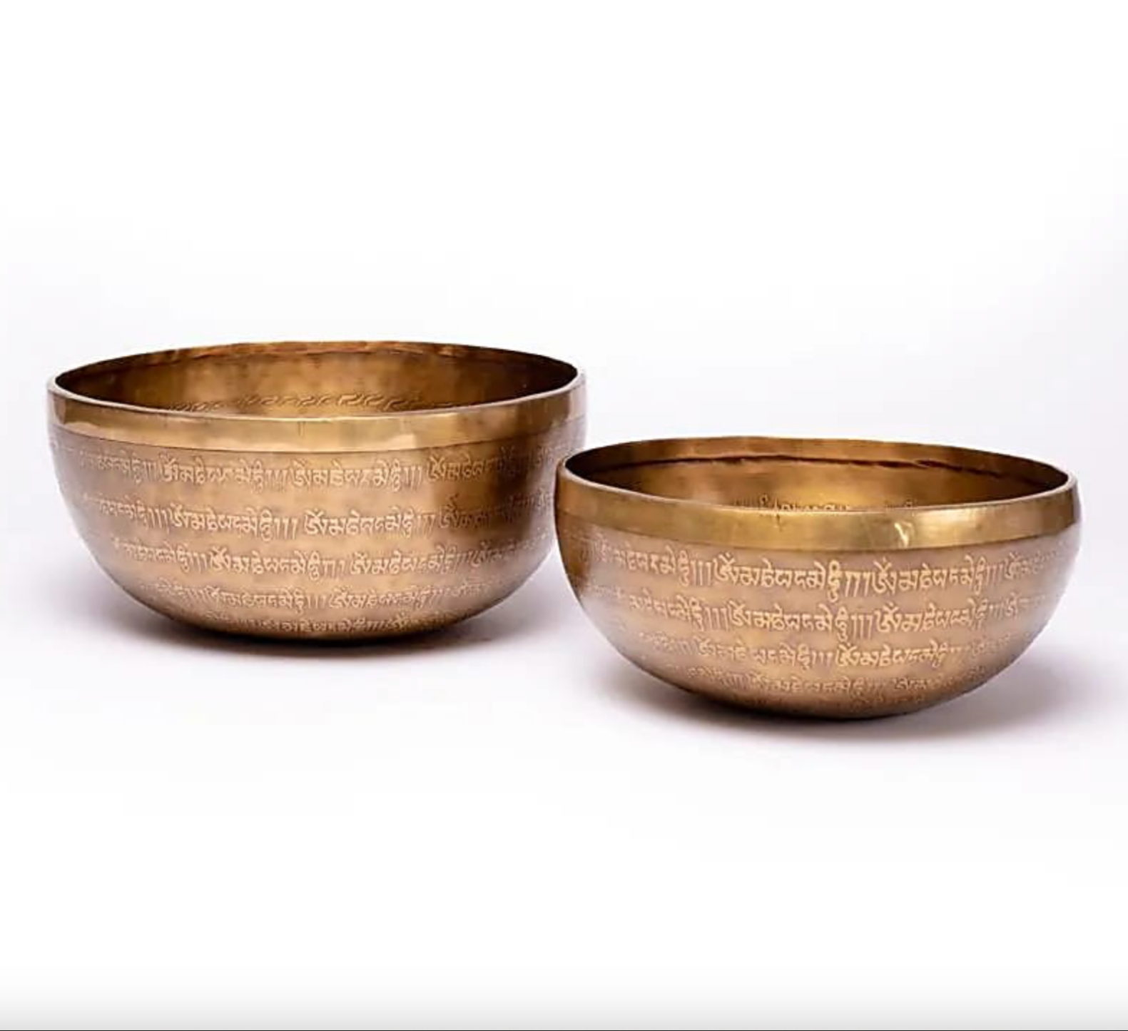 Aspect | Bol métallique creux, de différentes tailles, parfois décoré de motifs ou mantras |