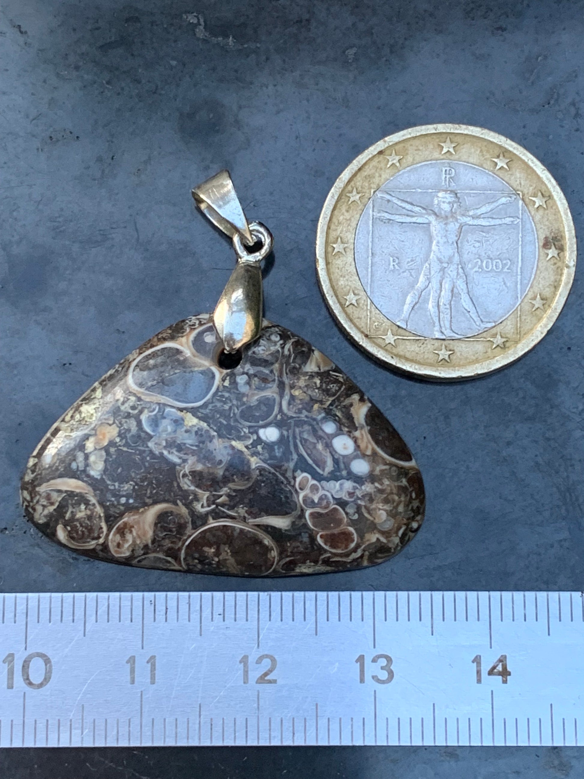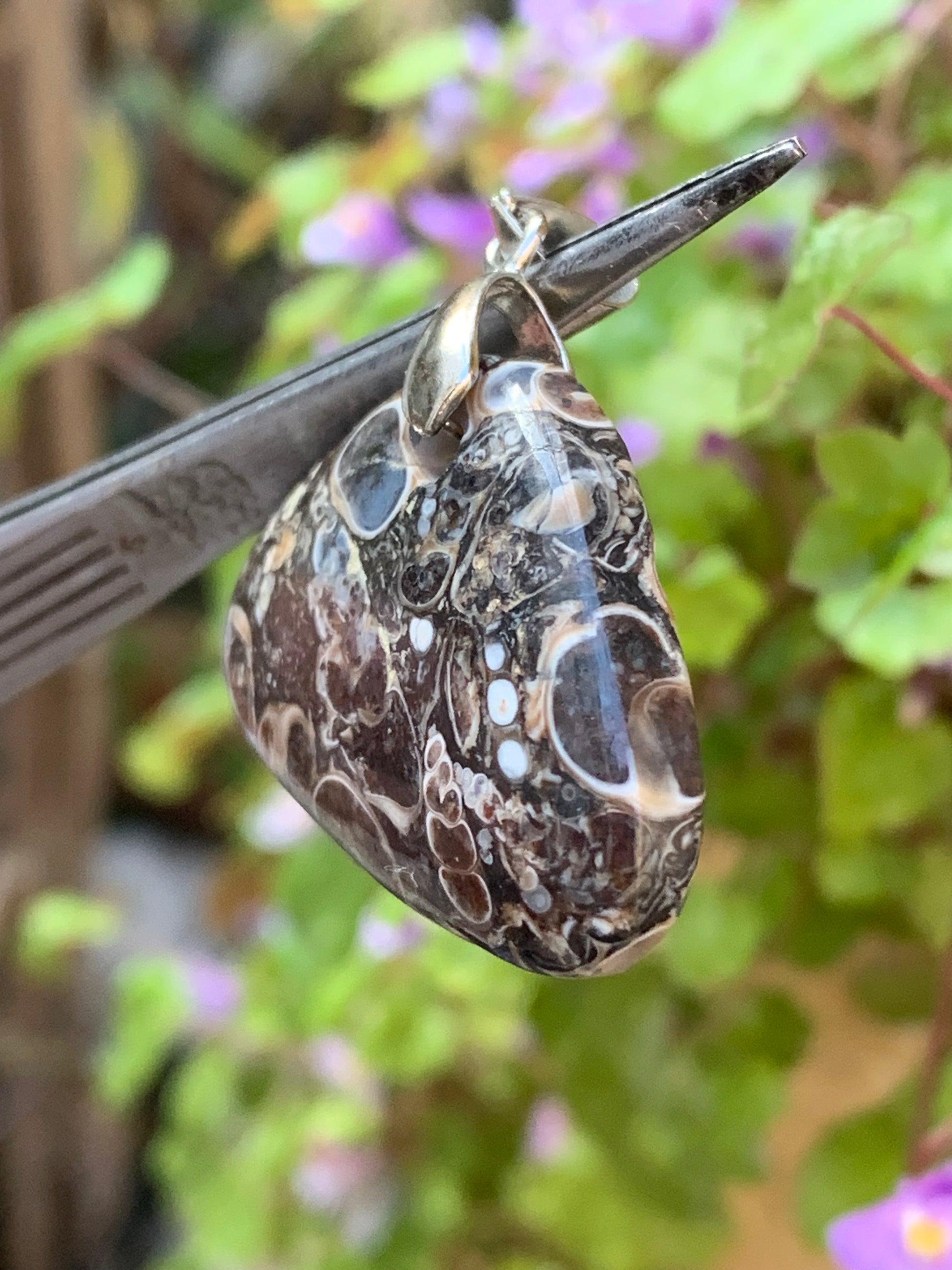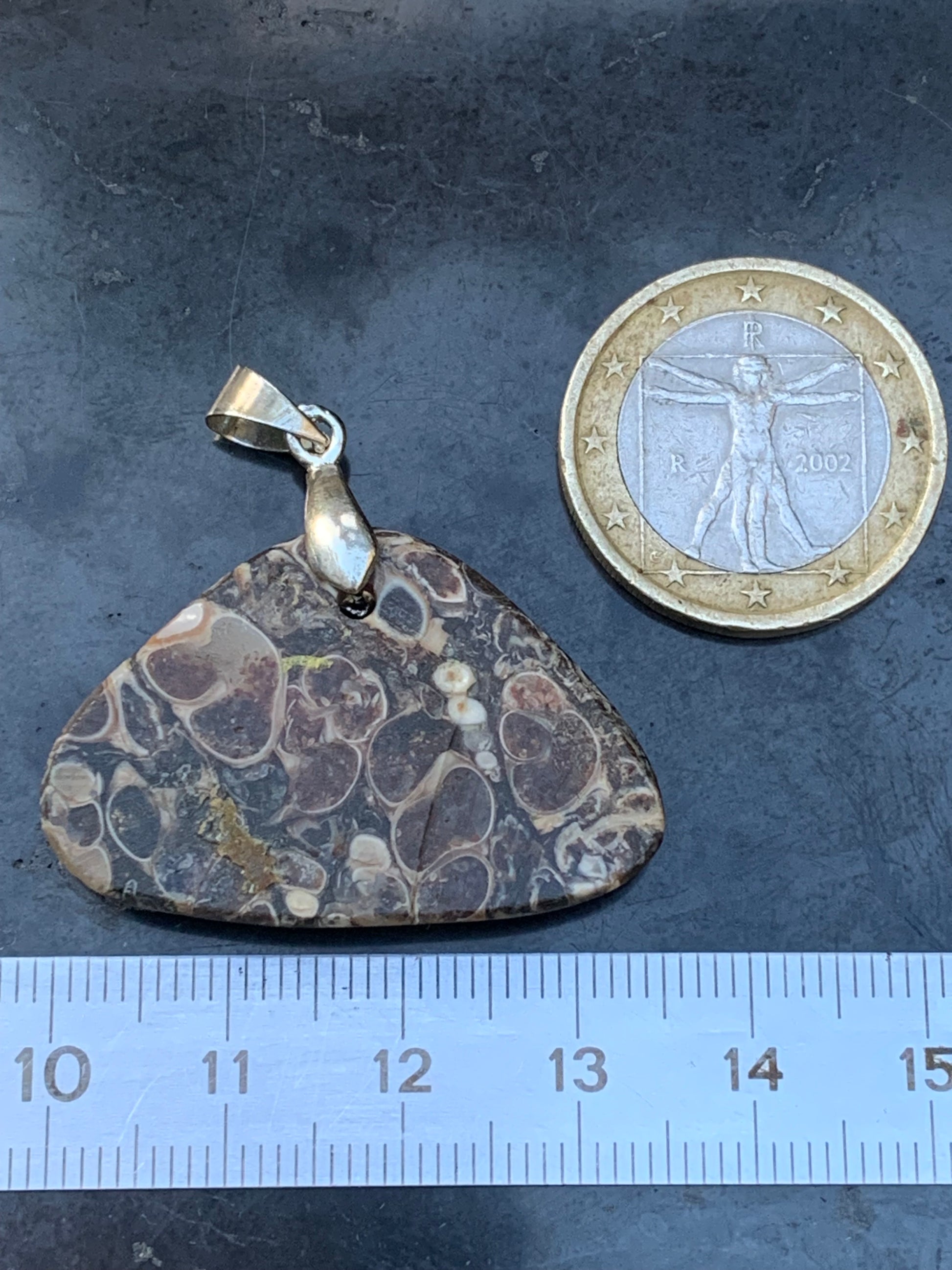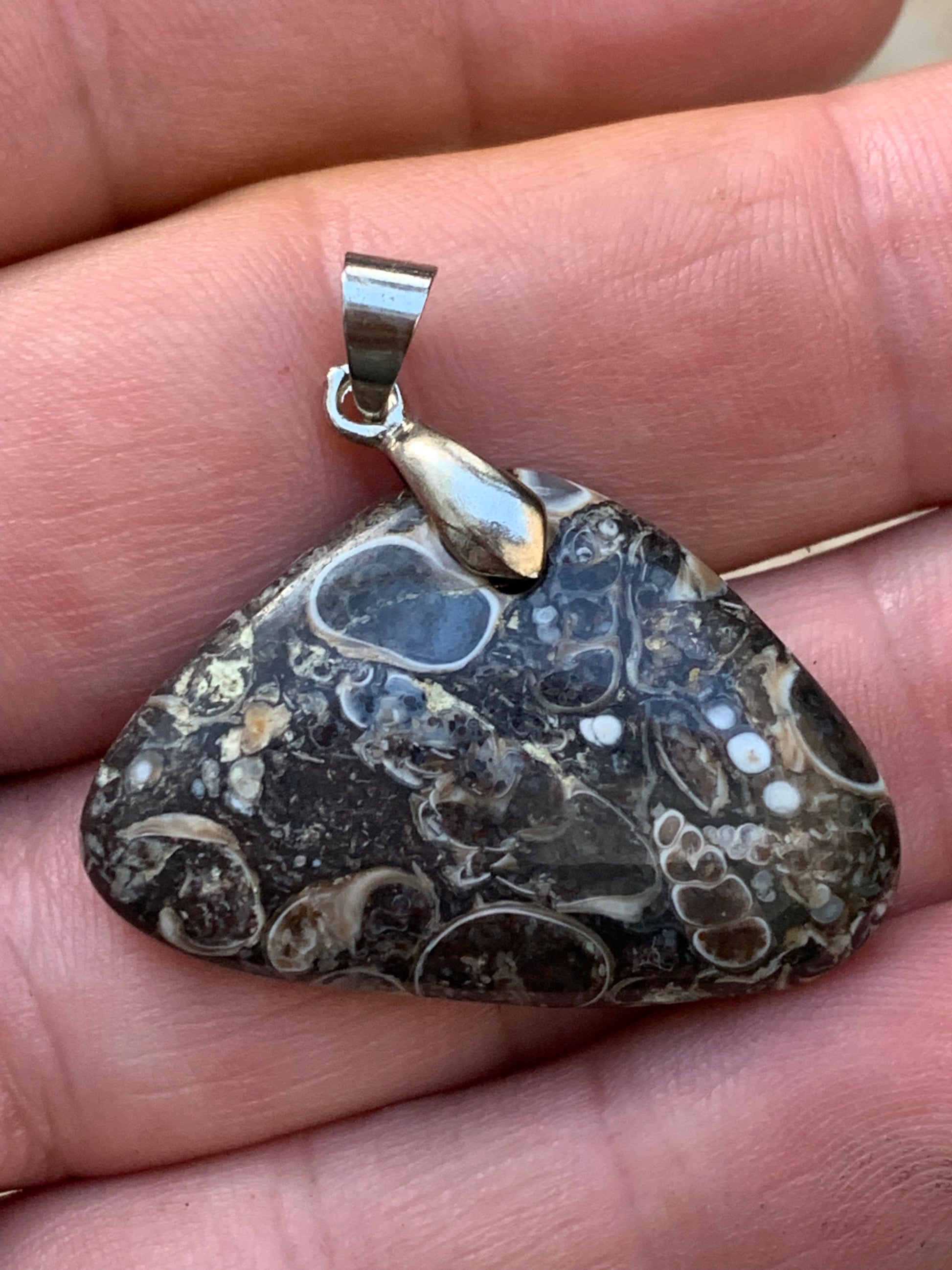 Agate turitelle/ fossile, pendentif de 36mm de hauteur x 36 de largeur x 11 d'épaisseur. Vendu avec cordon réglable de couleur noire !