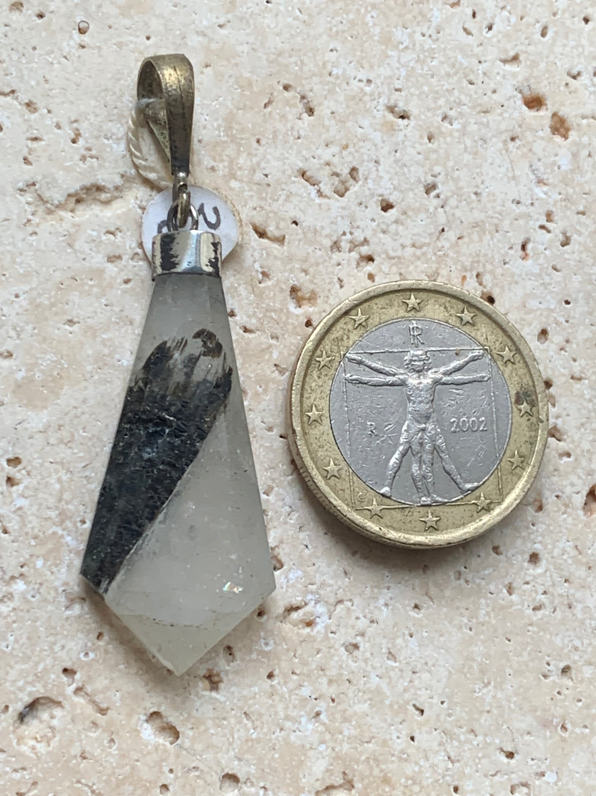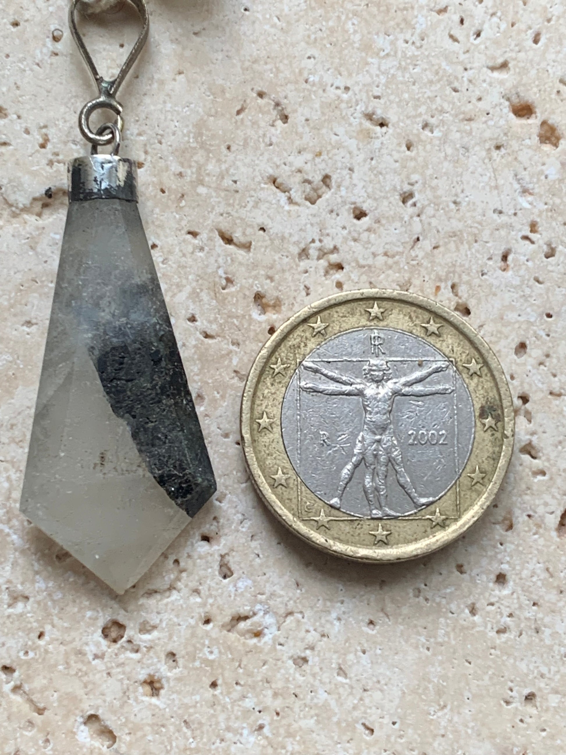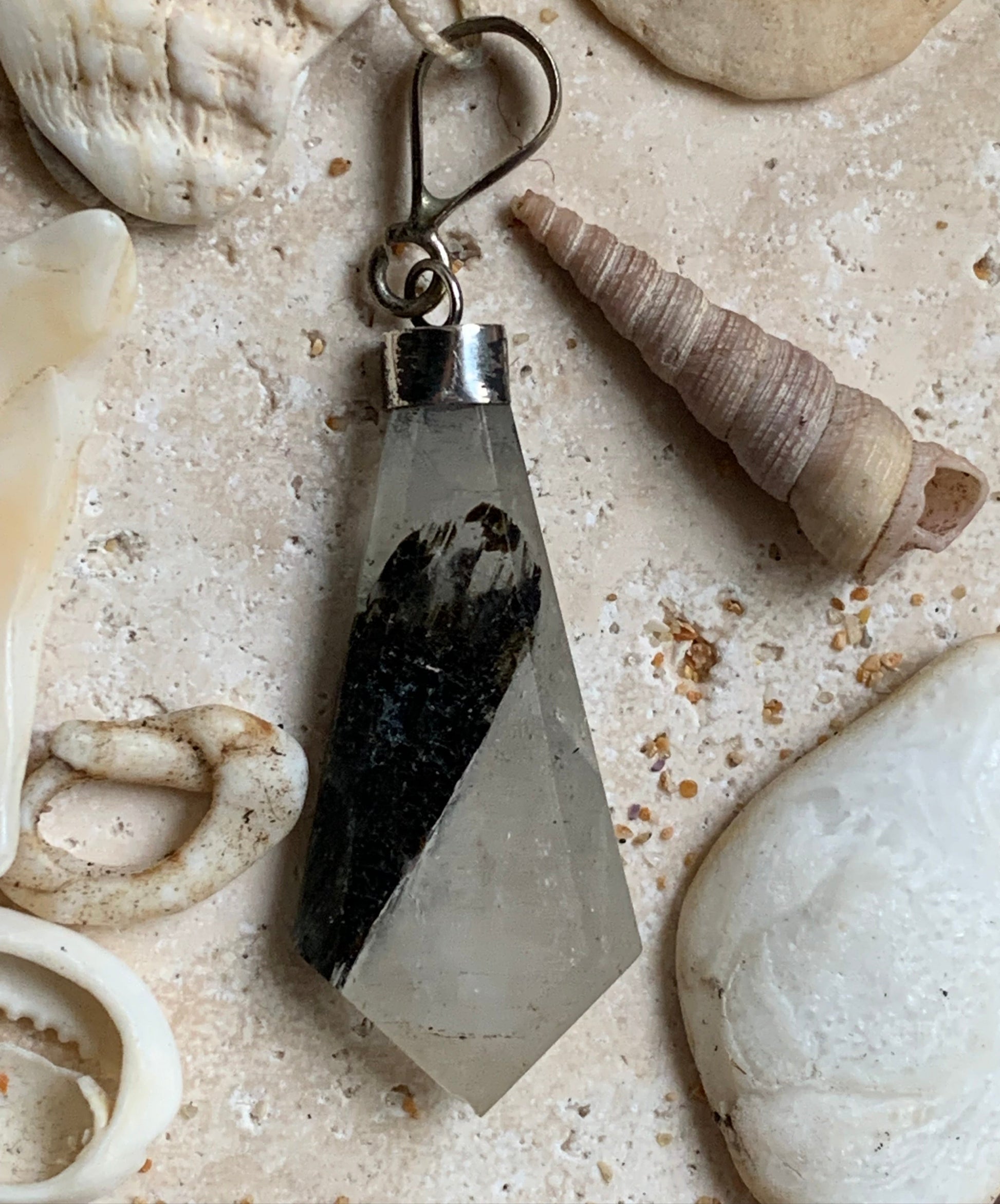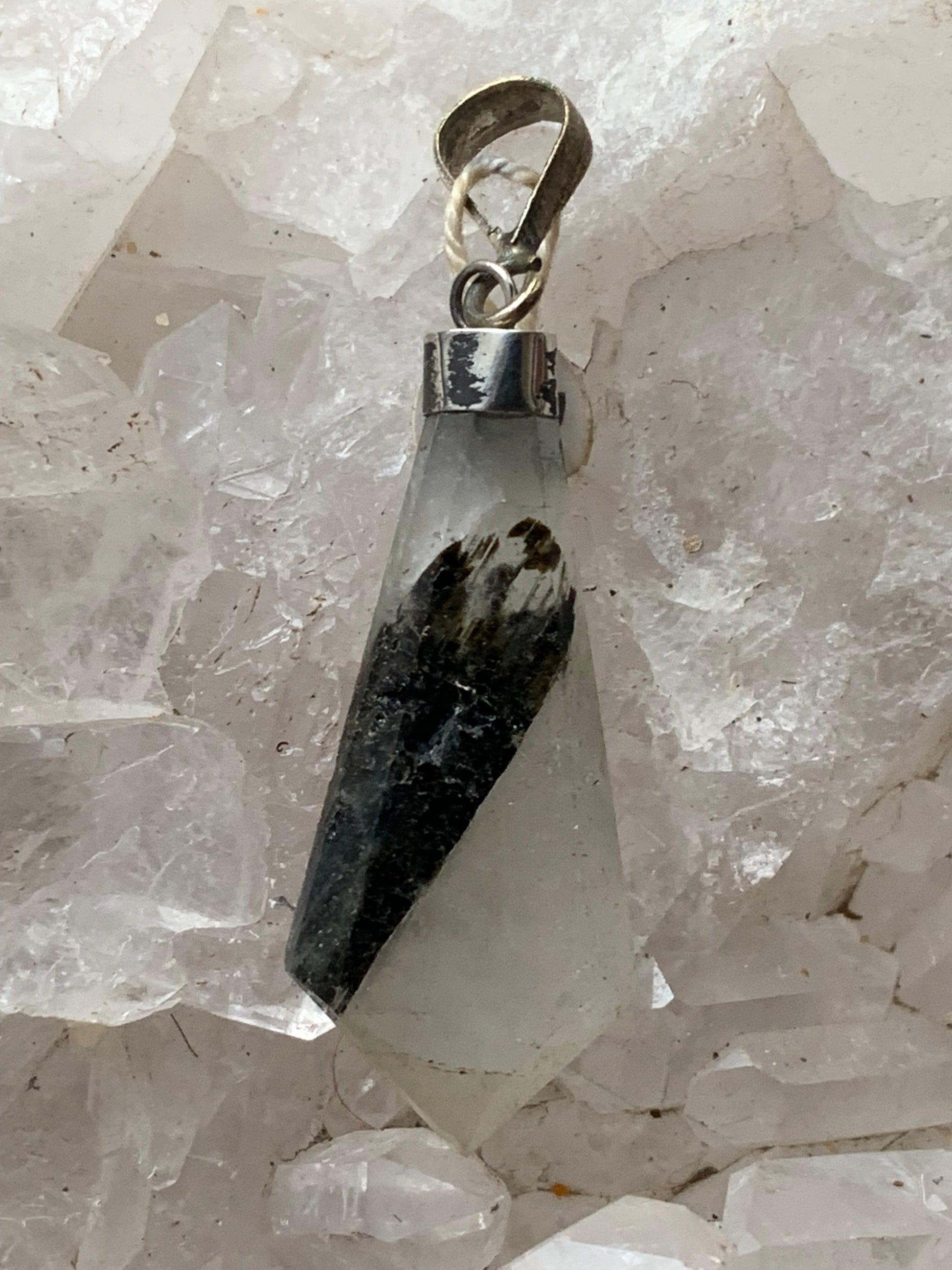 Aigue-marine avec inclusion de tourmaline noire ! Pièce unique en Argent de 50 millimètres de hauteur x 16 millimètres de largeur x 6 d'épaisseur. Vendu avec cordon réglable de couleur noire. Fait au Pakistan !