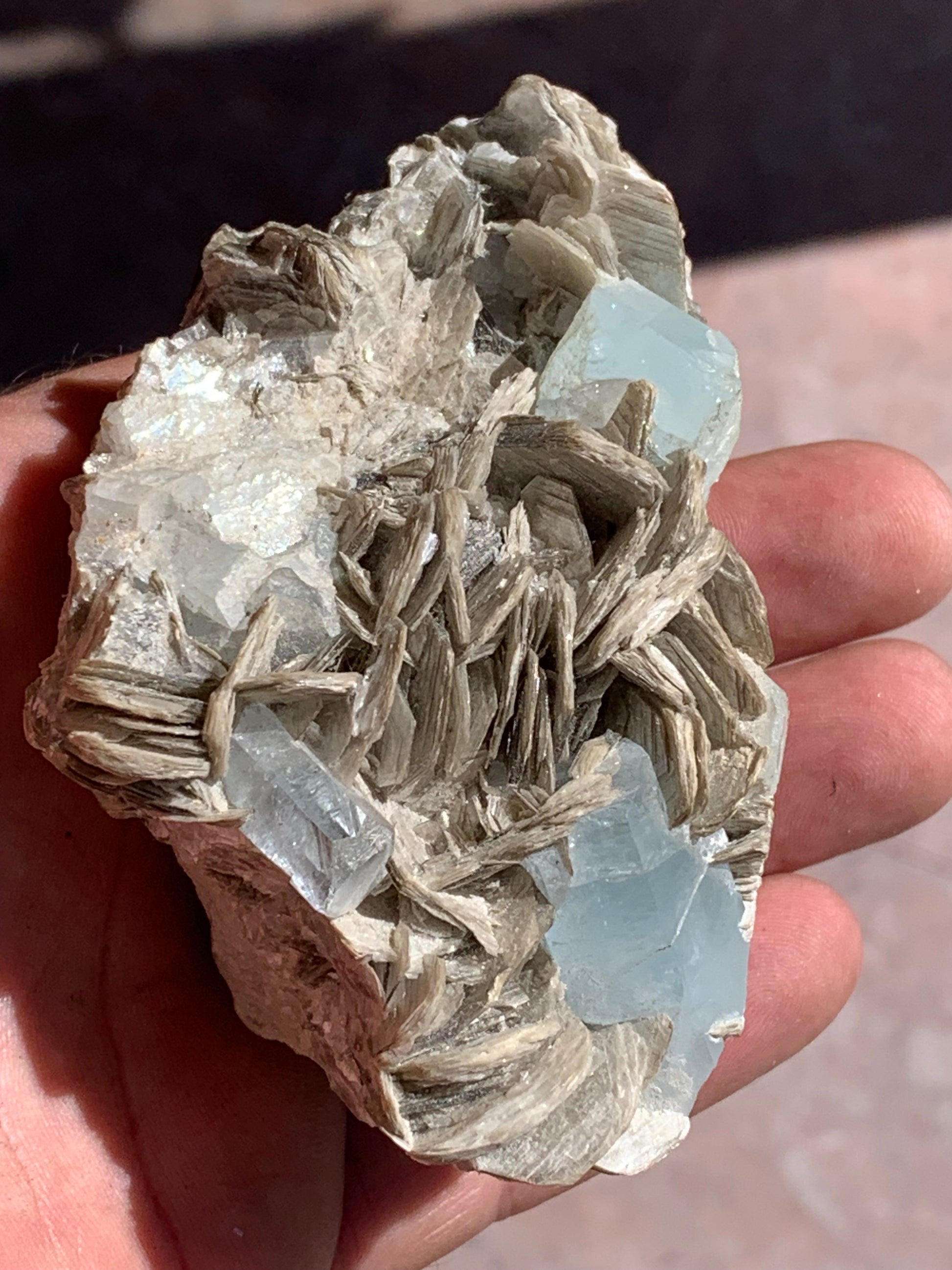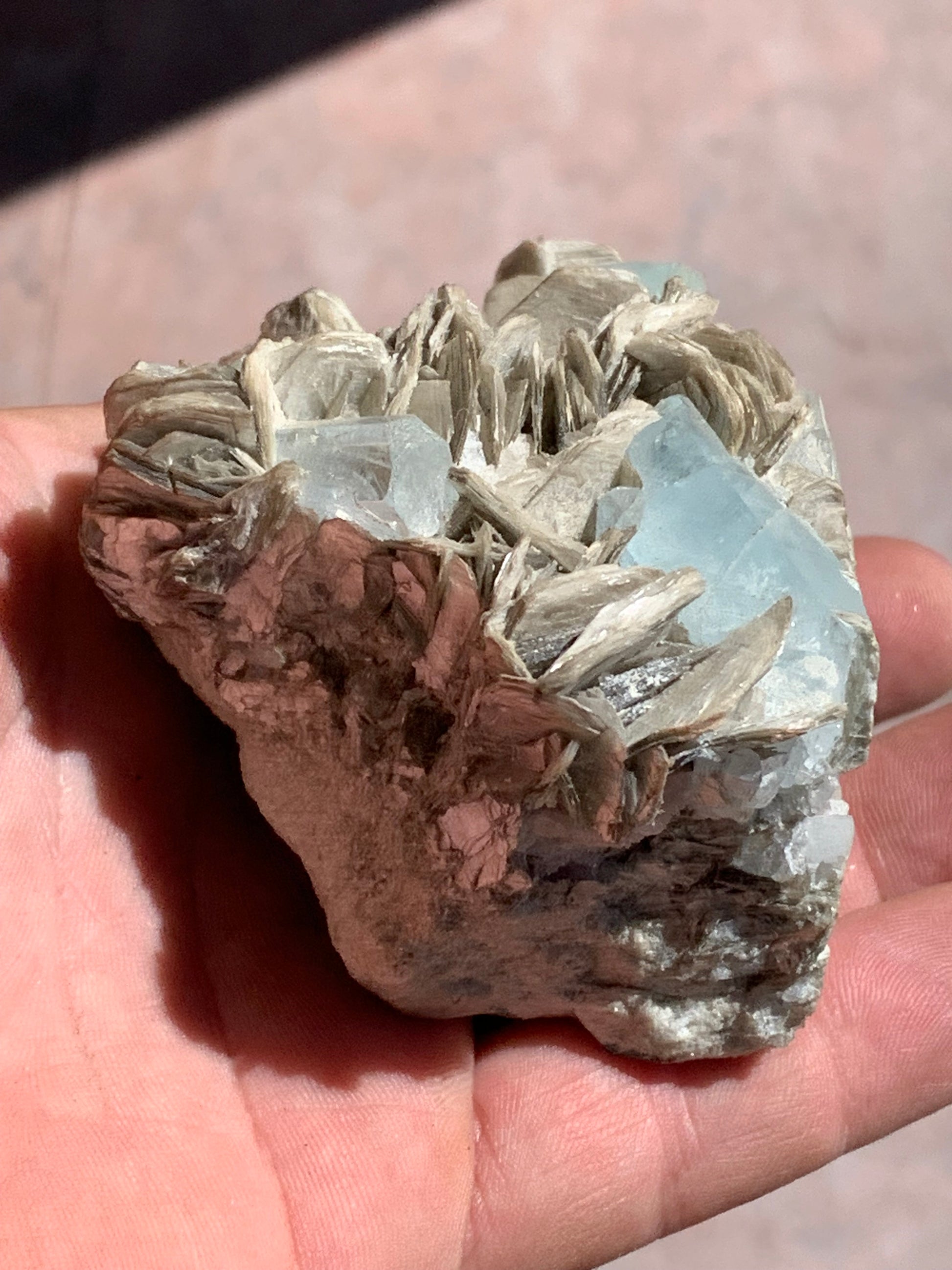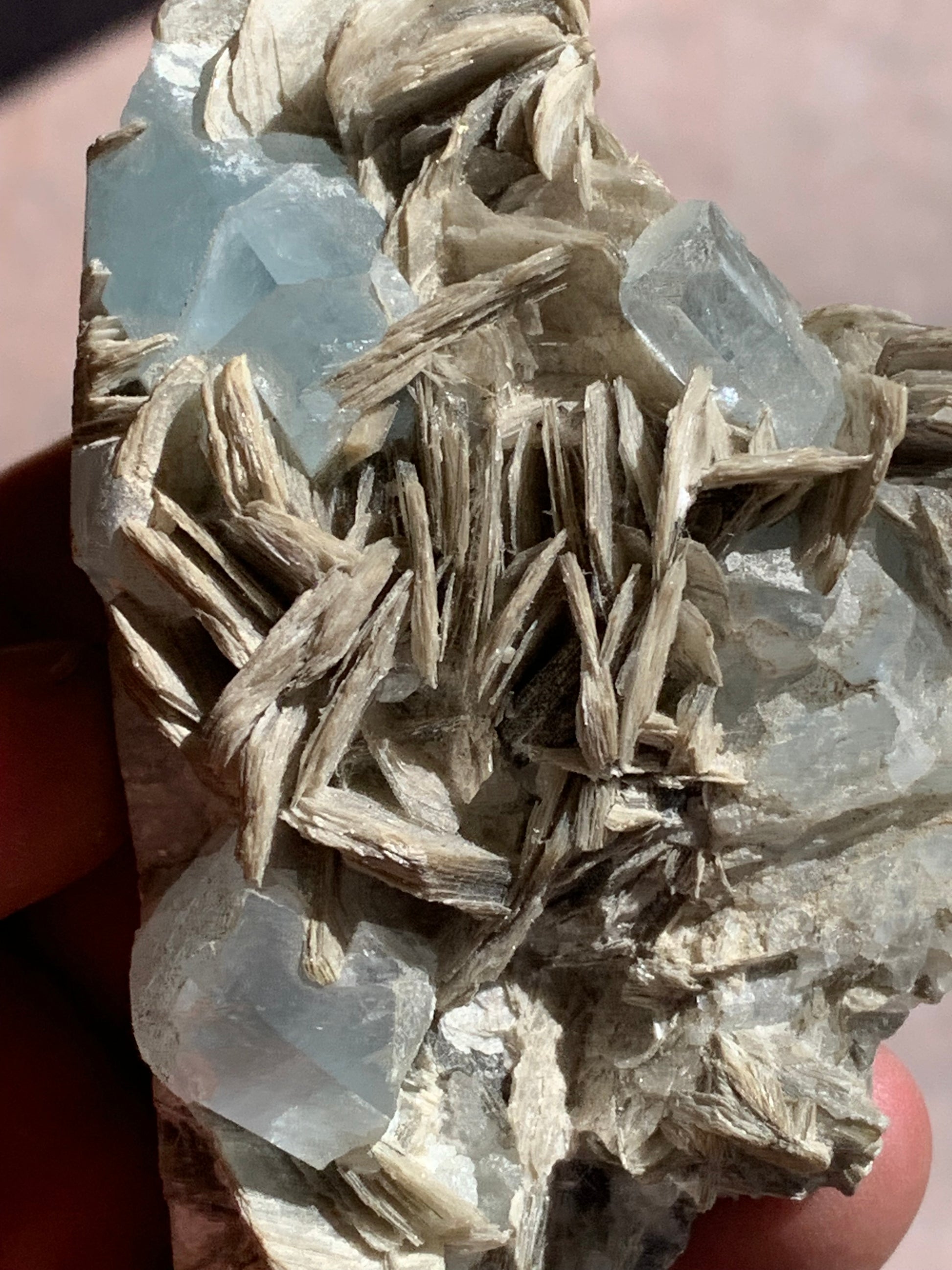 🪨 Type de minéral : Aigue-marine avec Muscovite (Beryl)