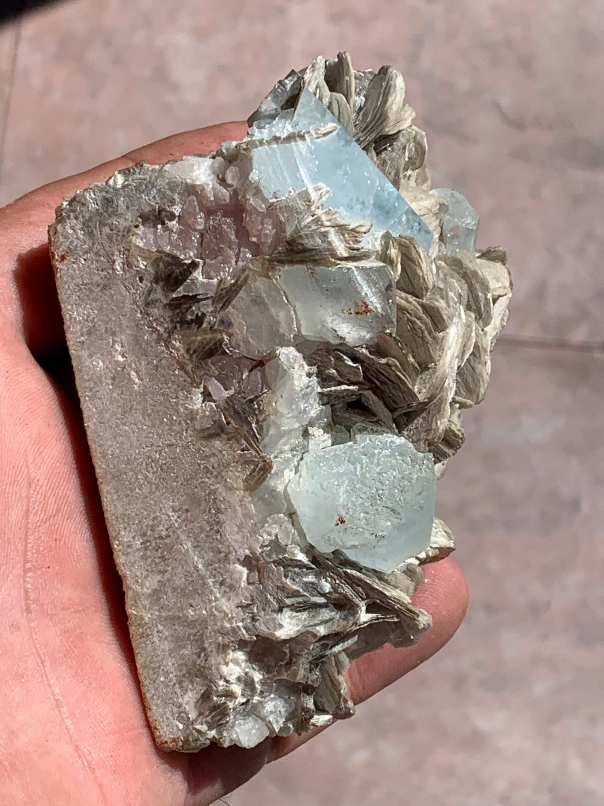 Aigue-marine avec Muscovite, superbe pièce de 100 x 60 x 55 mm en moyenne - 349 grammes !