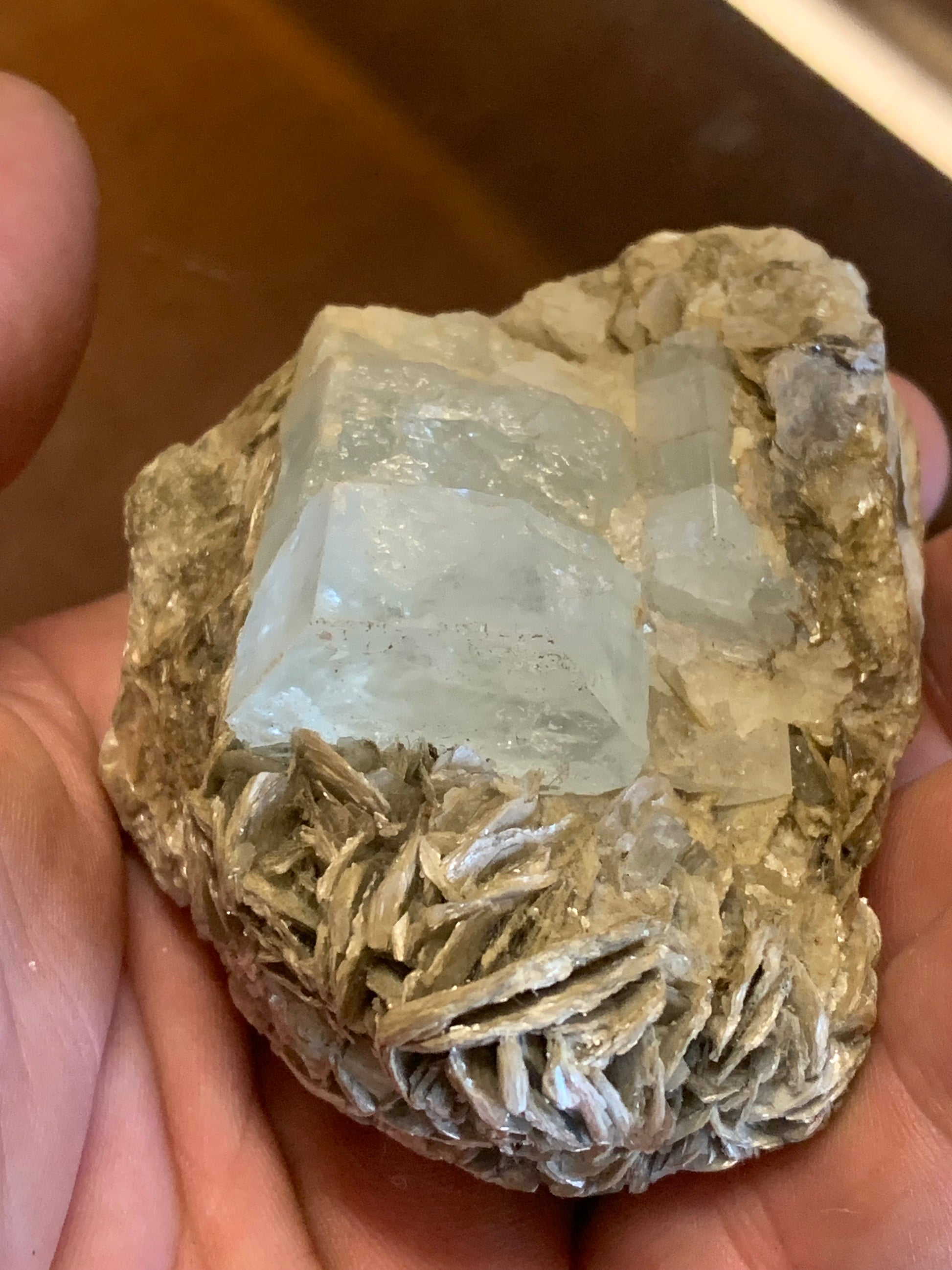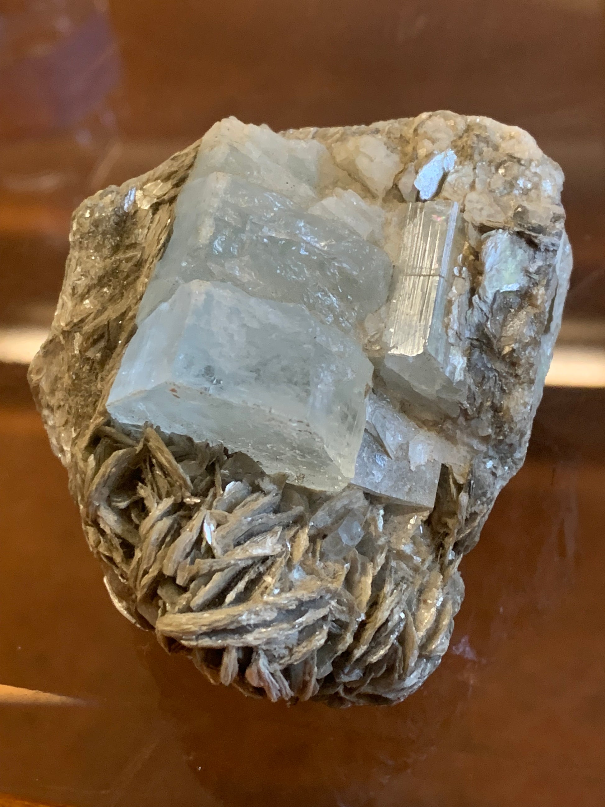 Aigue-marine avec Muscovite, superbe pièce de 70 x 60 x 50 mm en moyenne - 229 grammes environ !