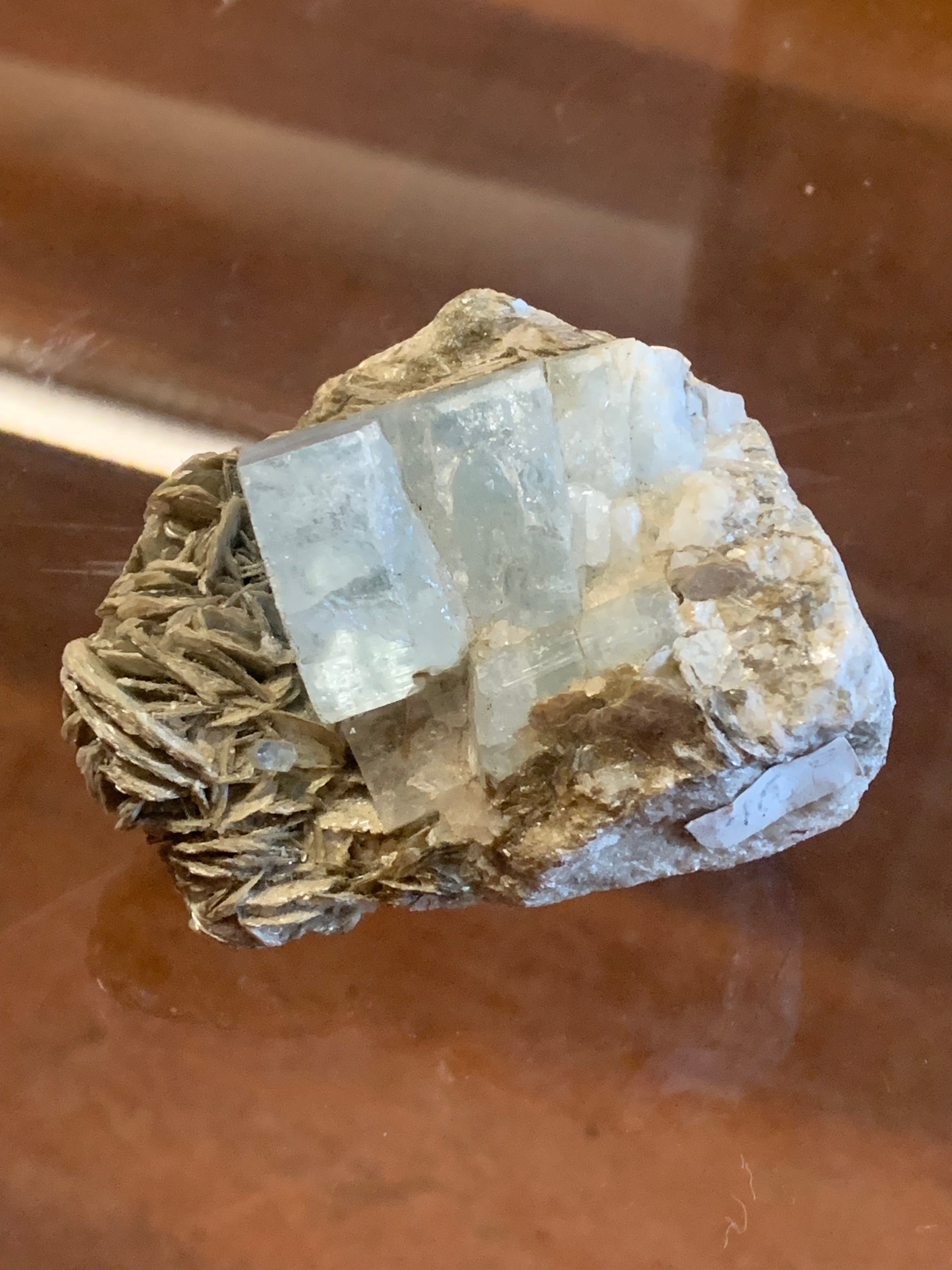 🪨 Type de minéral : Aigue-marine avec Muscovite (Beryl)