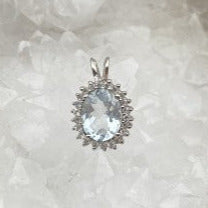 Aigue-marine | Collection Retro' | Pendentif en Argent serti d'une pierre gemme de forme ovale, entouré d'Oxyde, 16x10 mm !