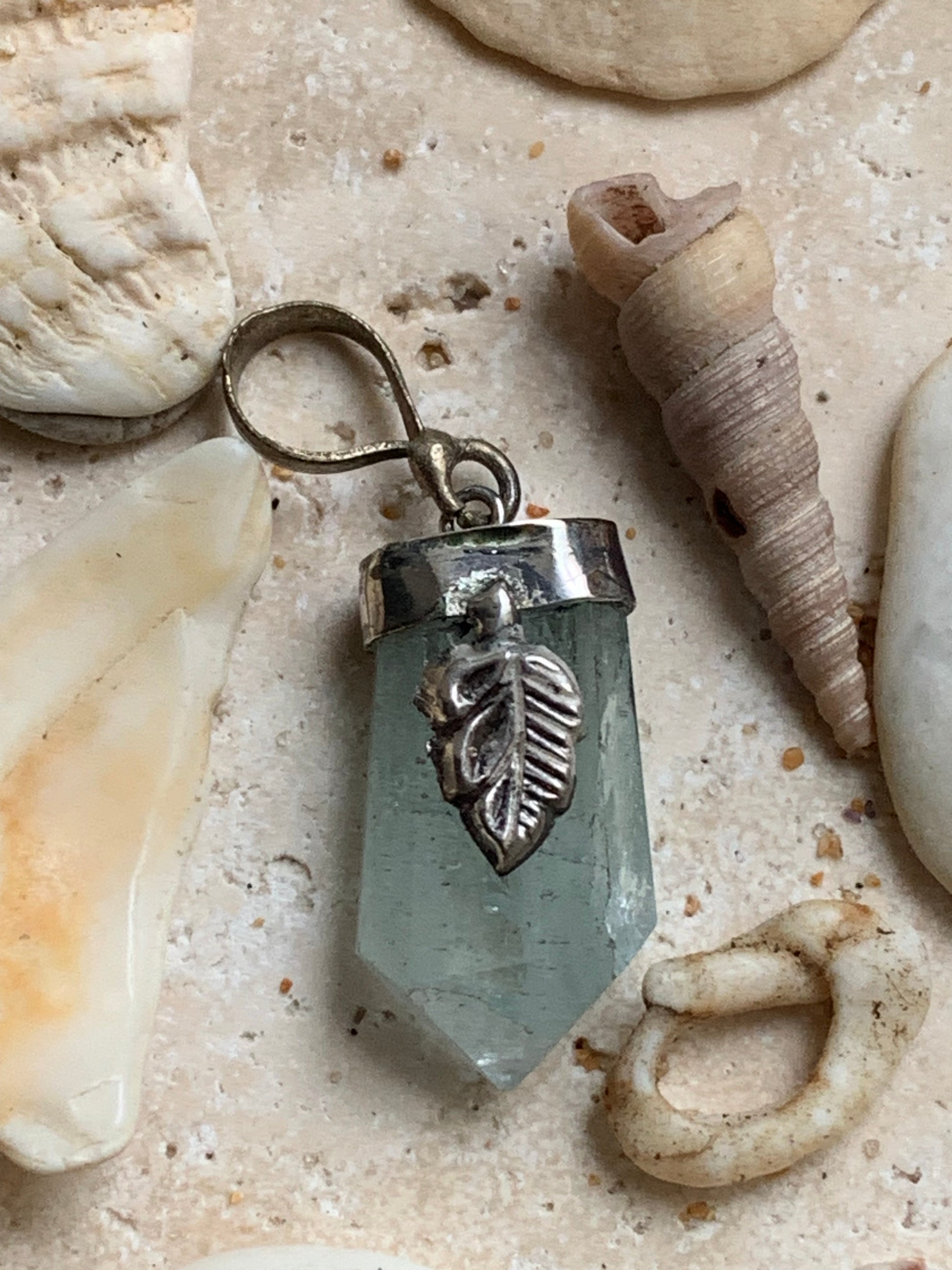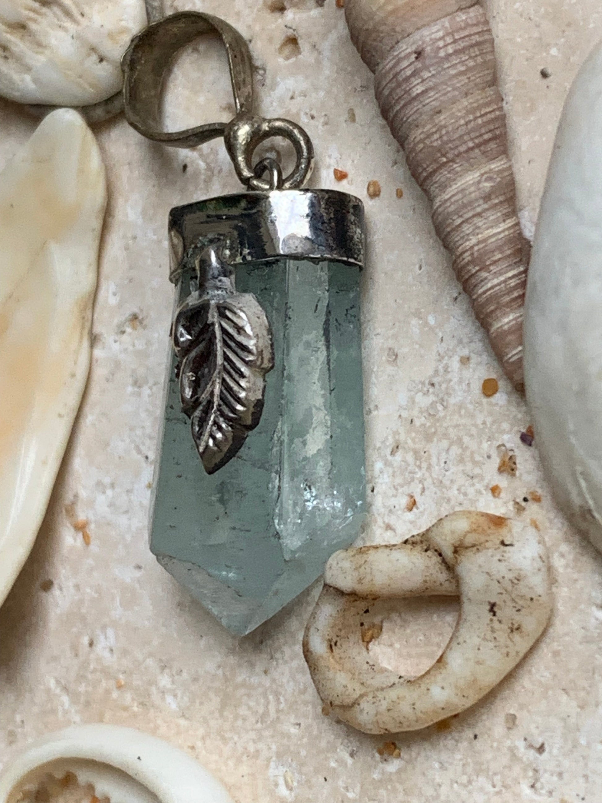 Aigue-marine, pendentif Argent avec fantaisie en métal ! Pièce unique de 38mmx12 x 12. Vendu avec cordon réglable de couleur noire. Fait au Pakistan !