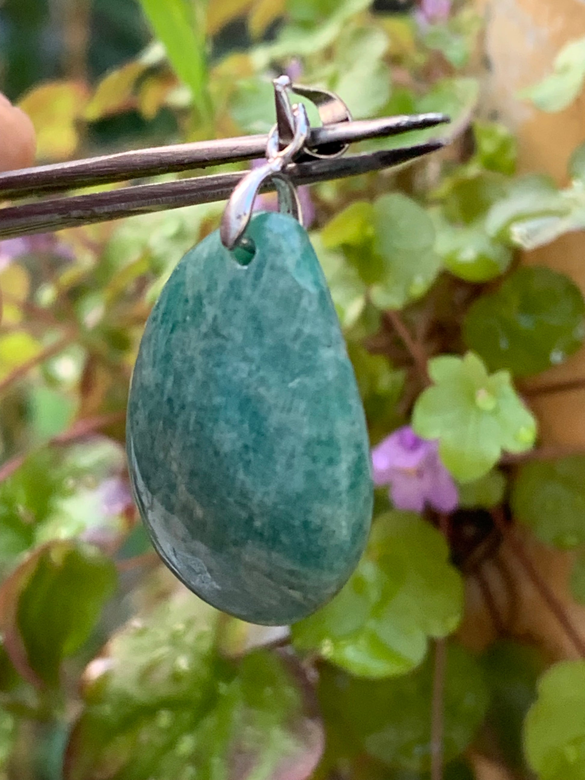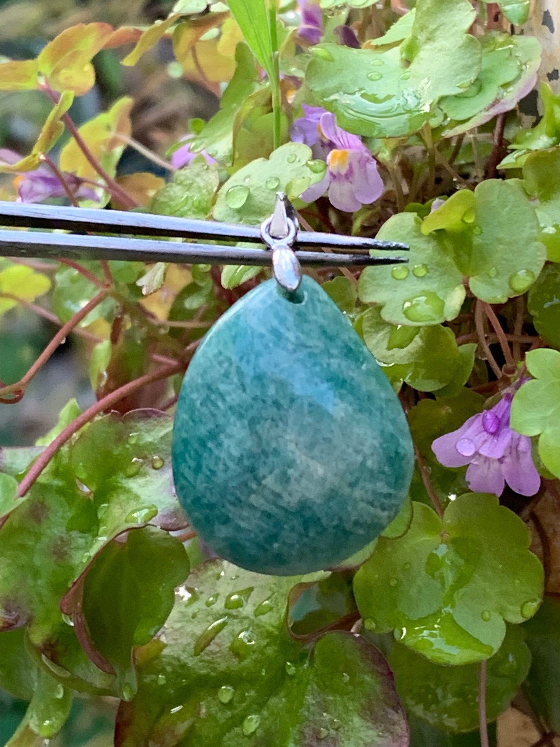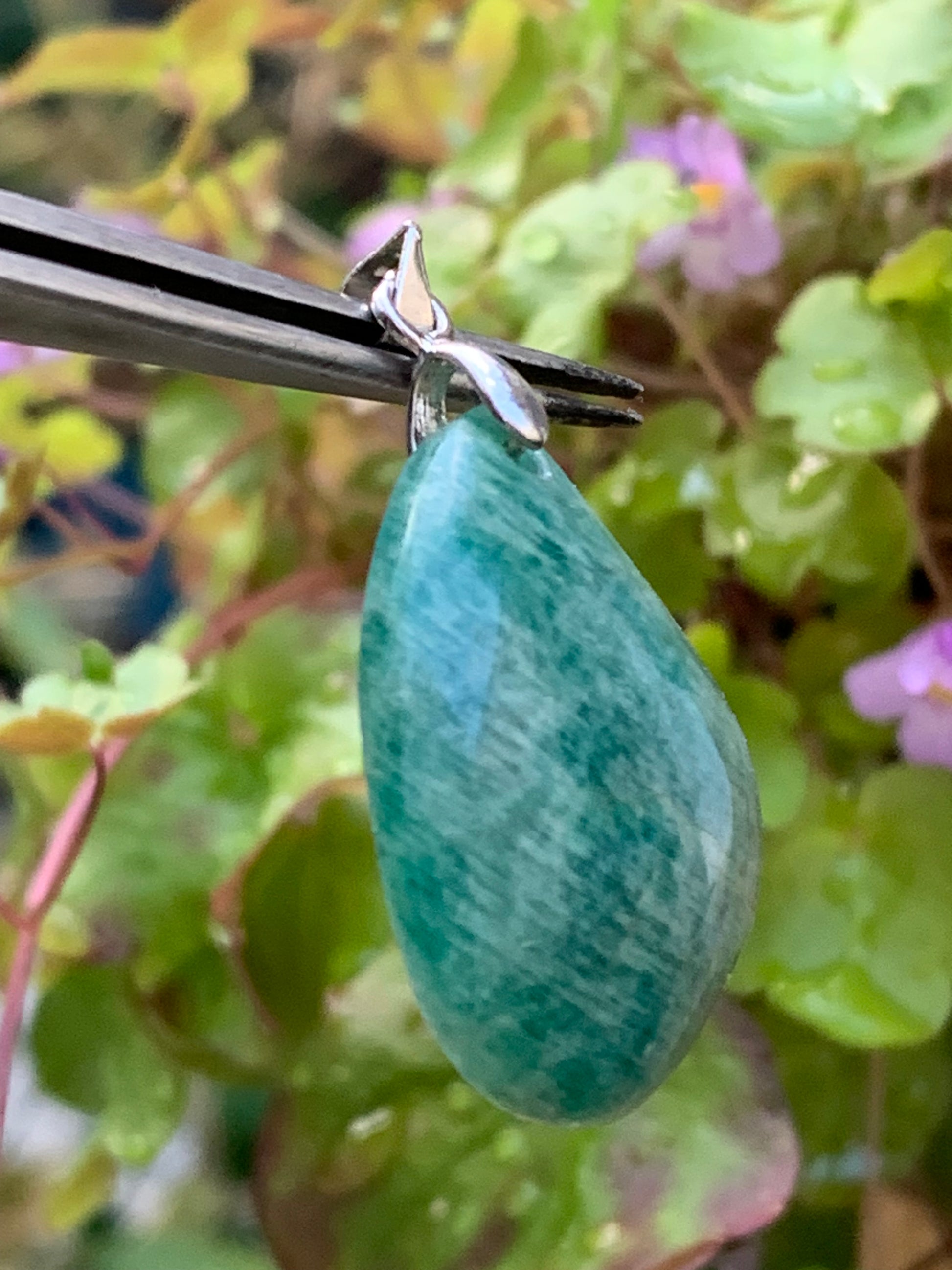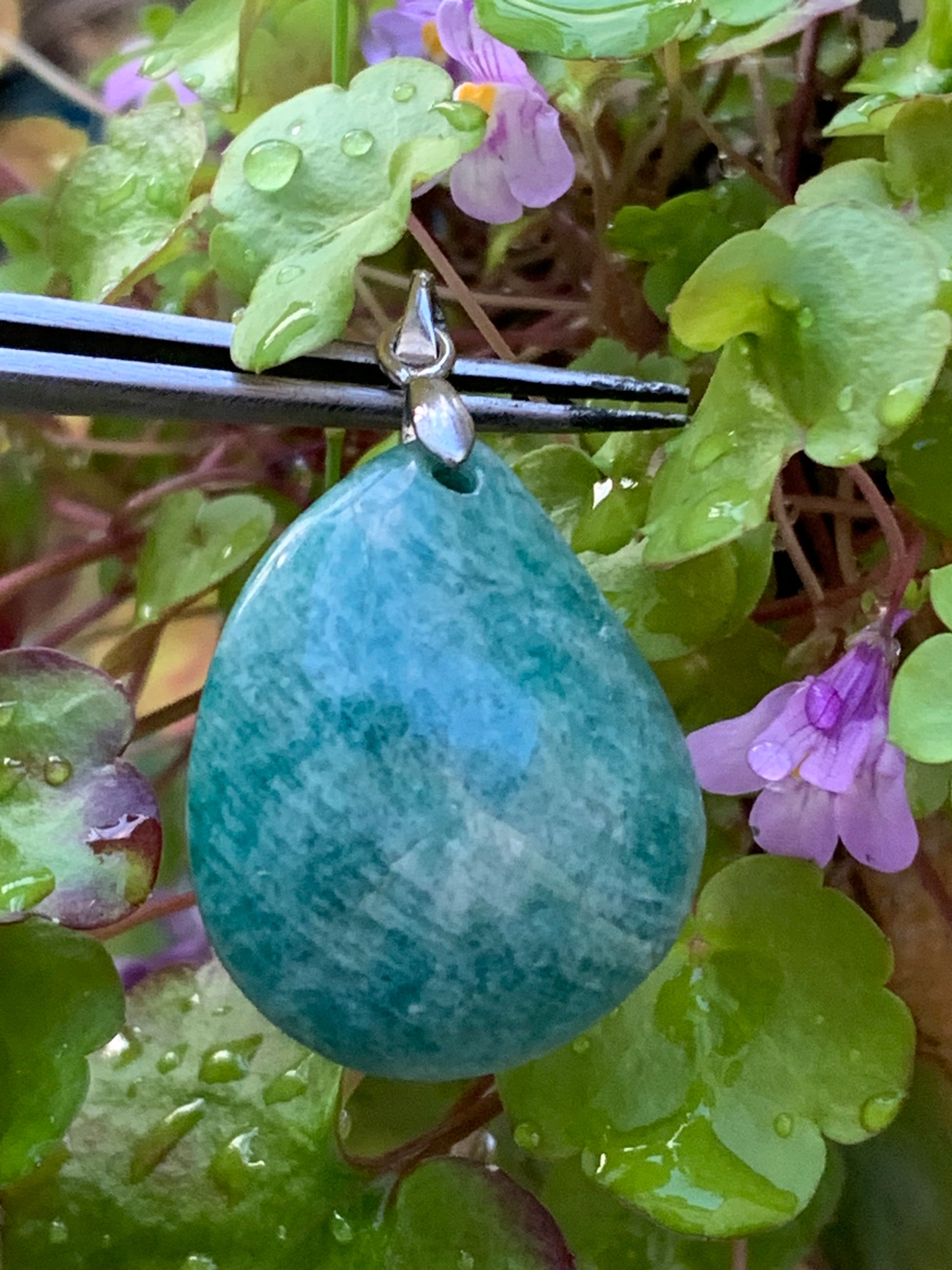 Amazonite, pendentif de 38mm de hauteur x 22 de largeur x 8 d'épaisseur. Vendu avec cordon réglable de couleur noire offert !