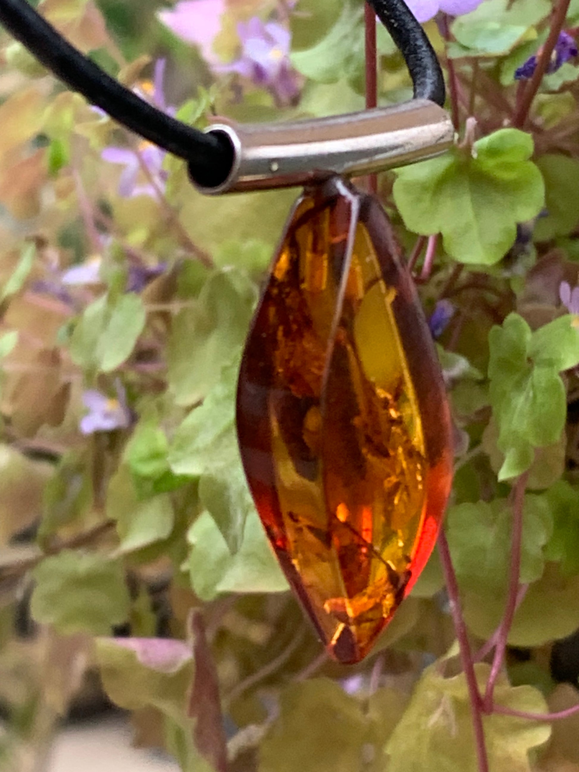 Ambre, pendentif en Argent, de 35x15x10 millimètres, vendu avec cordon en cuir noir de 42 centimètres !
