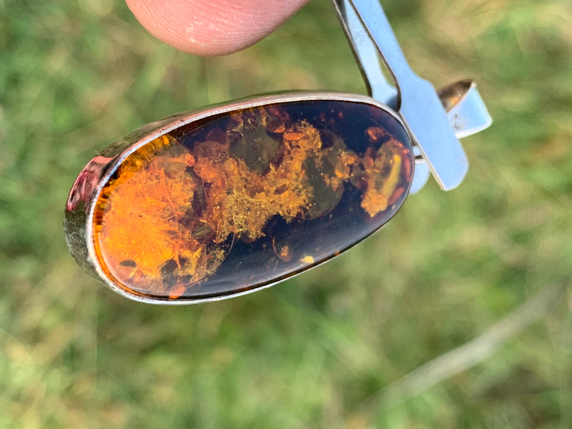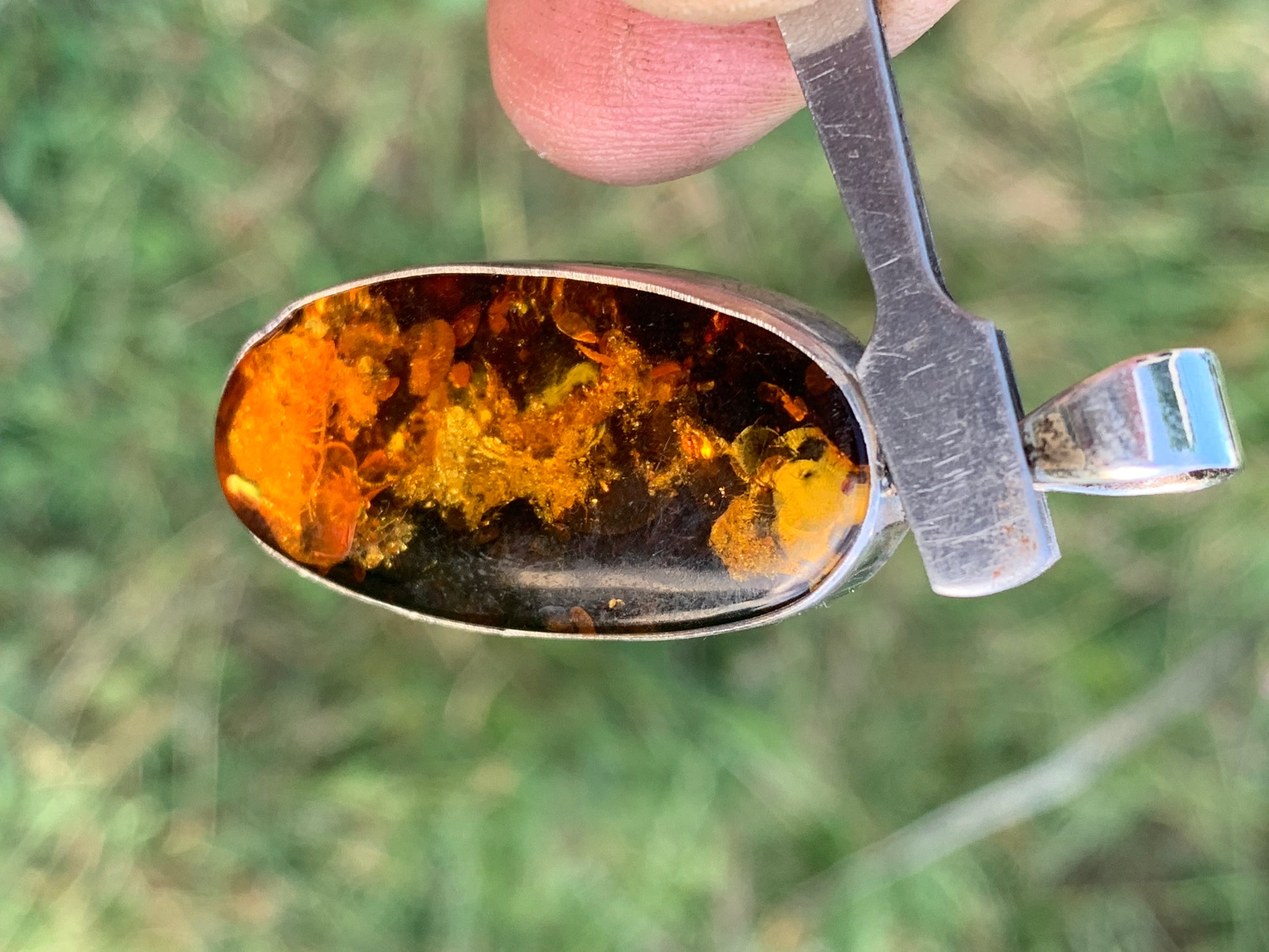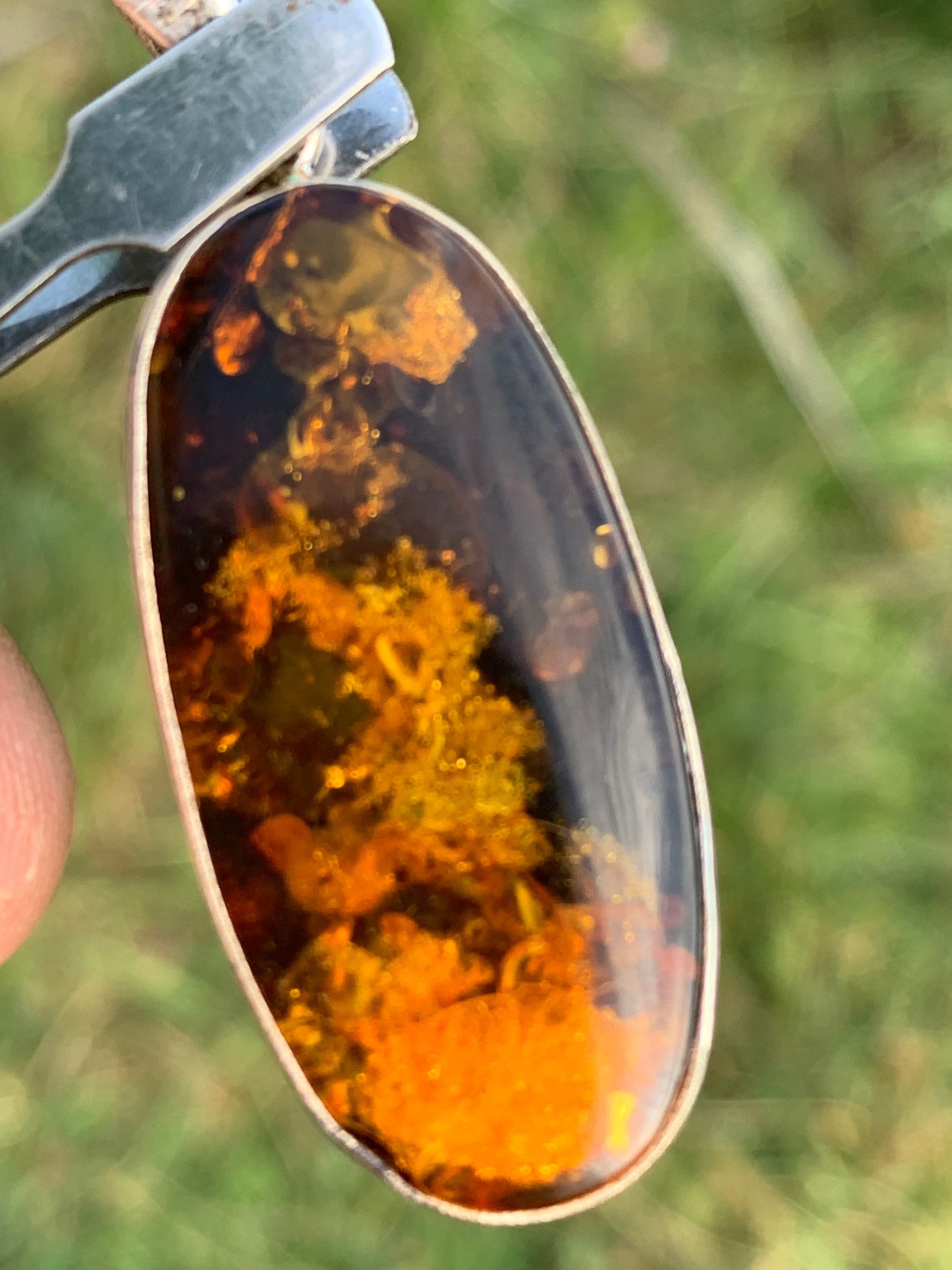 Ambre, pendentif en Argent de 52 x 18 x6 mm / 6,3 grammes, vendu avec cordon noir coulissant de 40 à 70 cm !