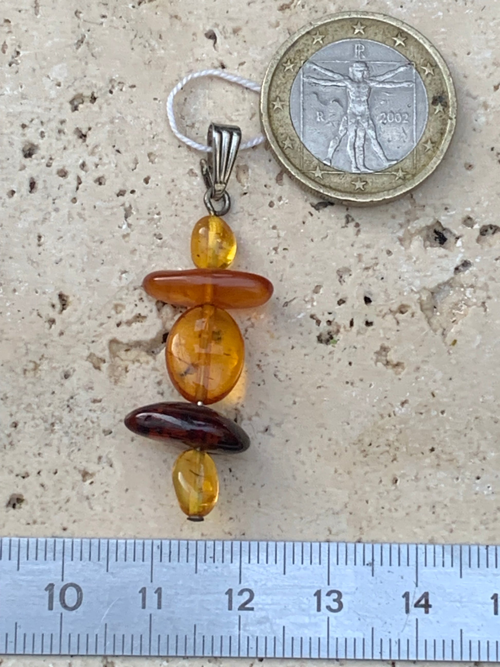 Ambre, pendentif fait par G & Z de 45x15x9 millimètres, vendu avec cordon coulissant (réglable), en cuir noir de 40 à 70 centimètres !