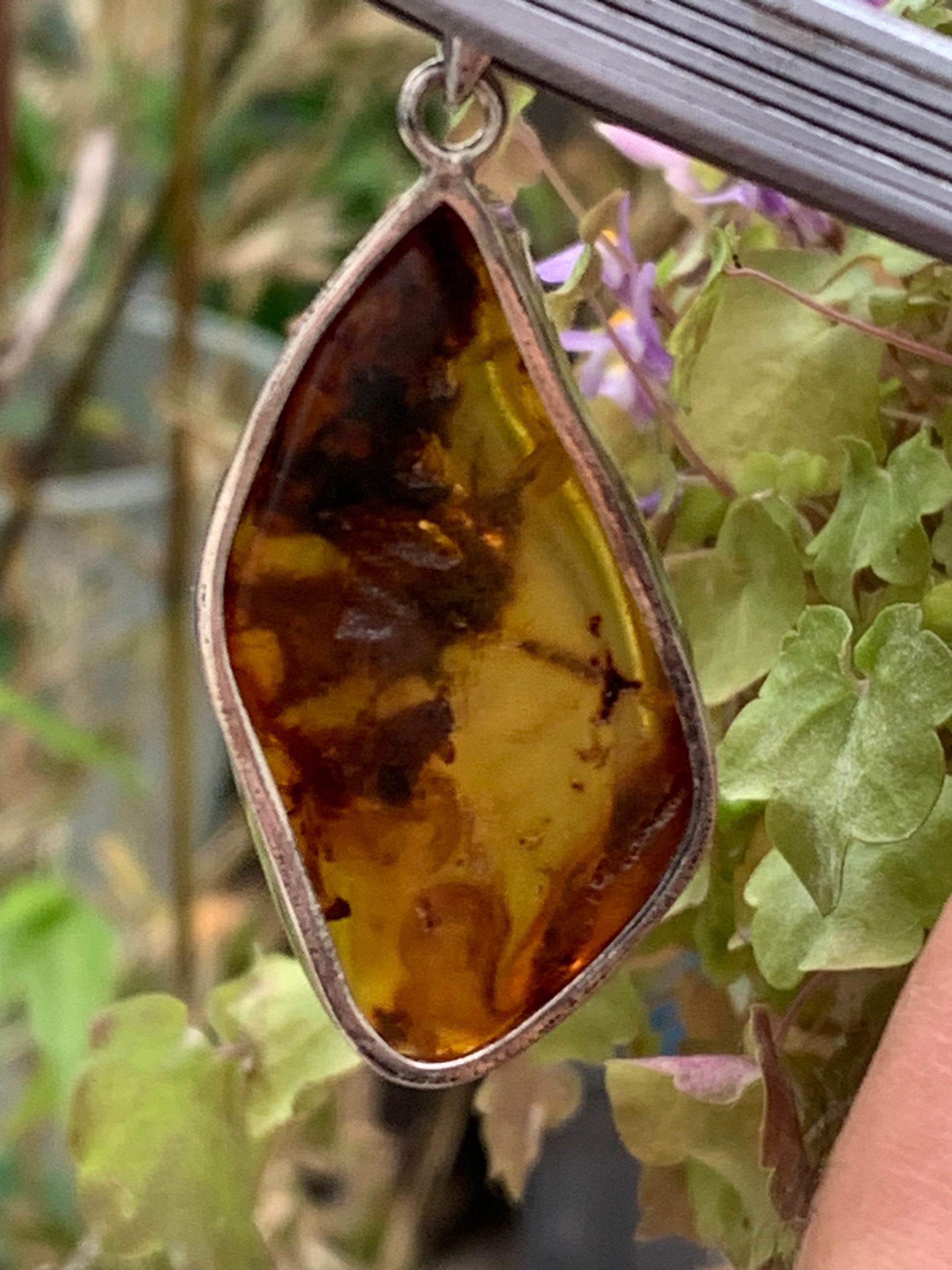 Ambre, superbe pendentif en Argent de 55x22x12 mm. Vendu avec cordon coulissant (réglable), en cuir noir de 40 à 70 cm !