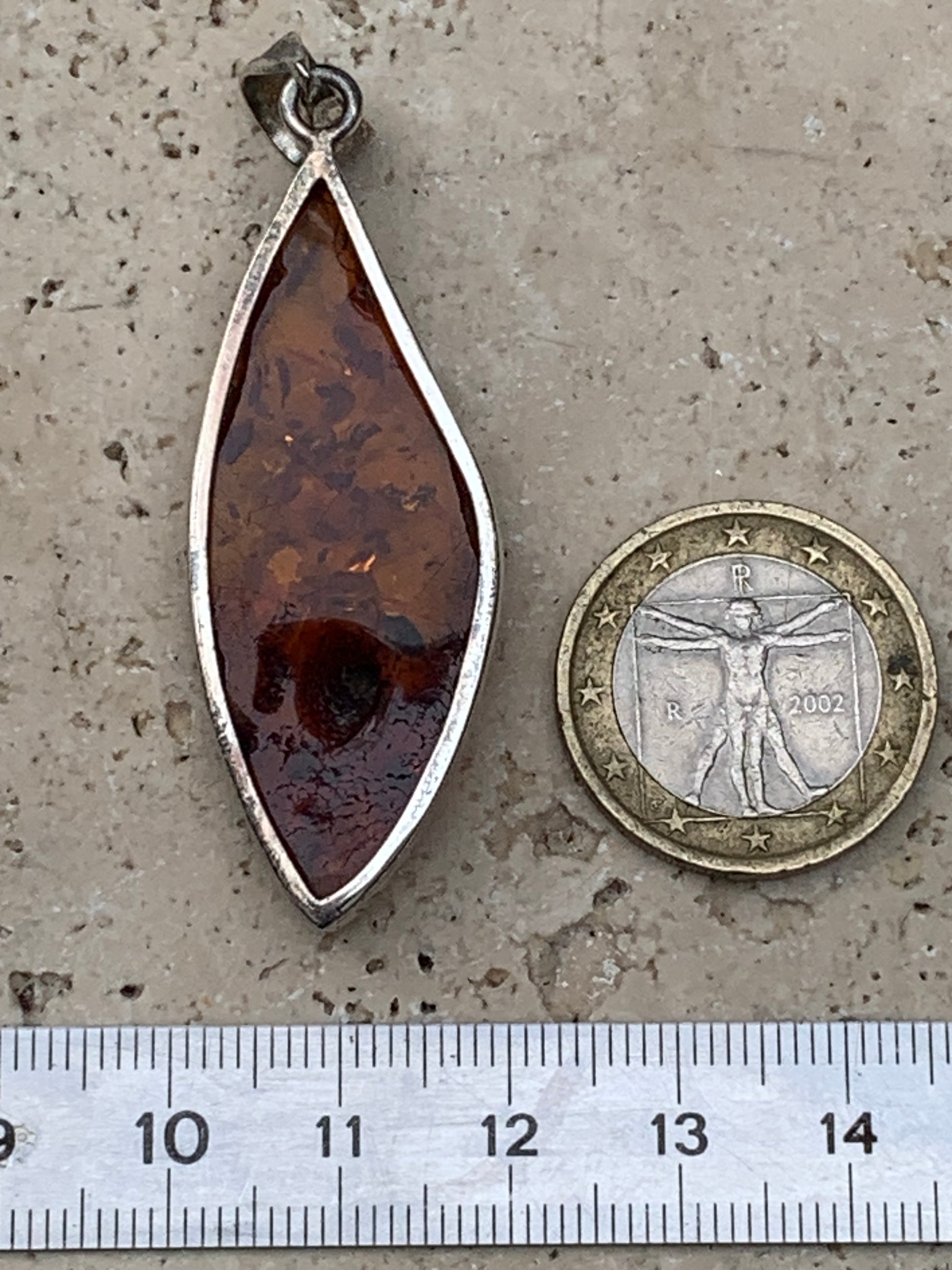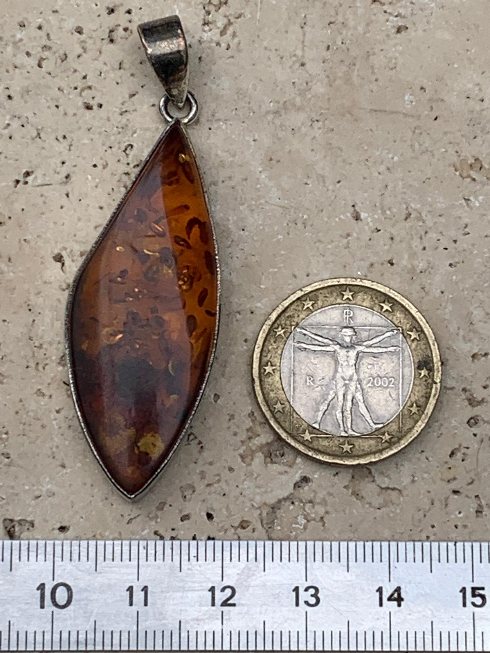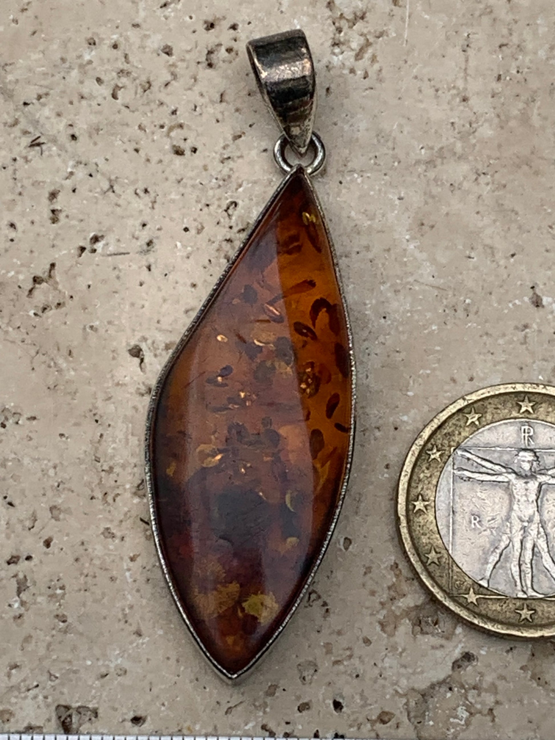 Ambre, superbe pendentif en Argent de 60x20x10 mm. Vendu avec cordon coulissant (réglable), en cuir noir de 40 à 70 cm !