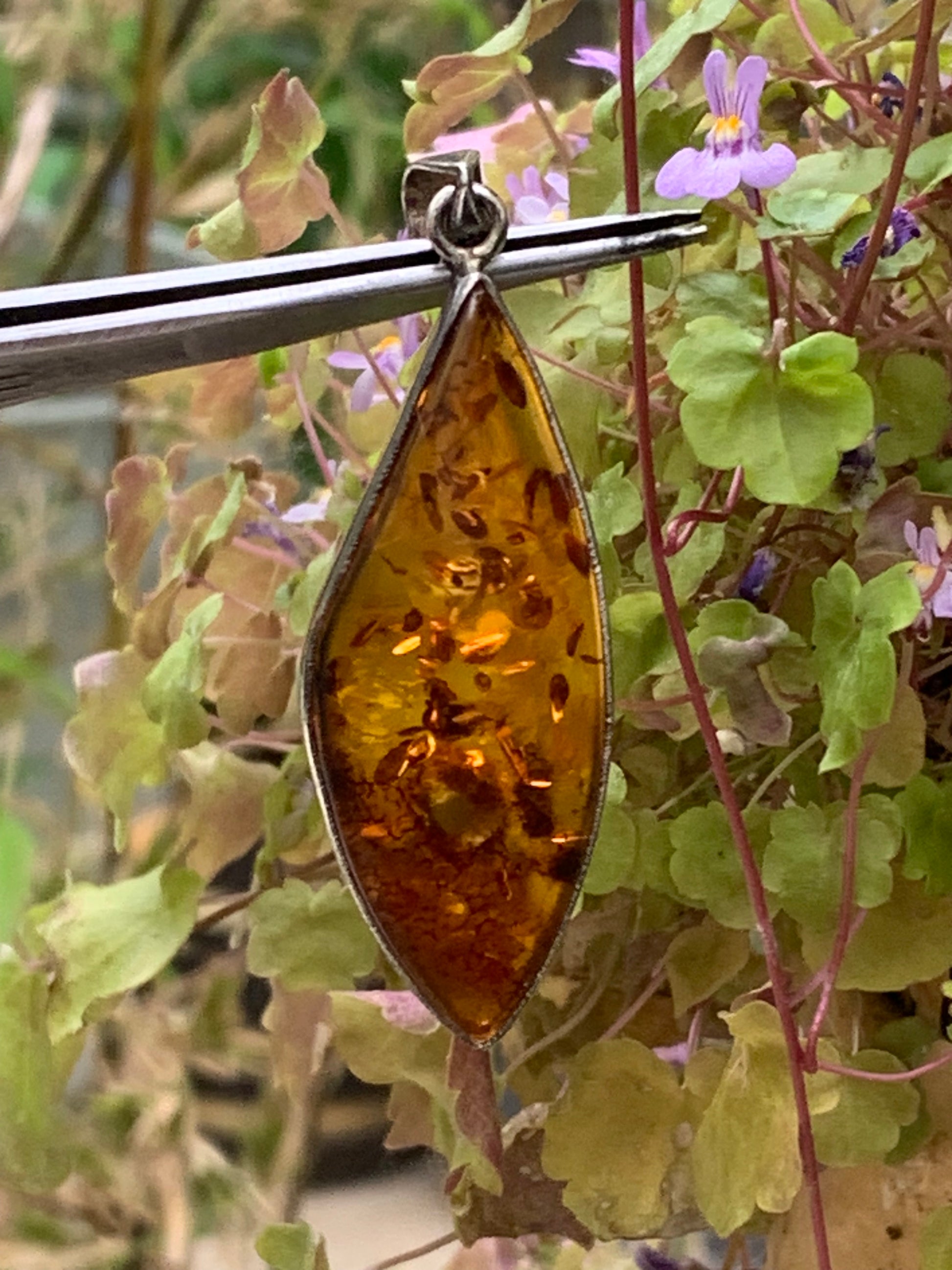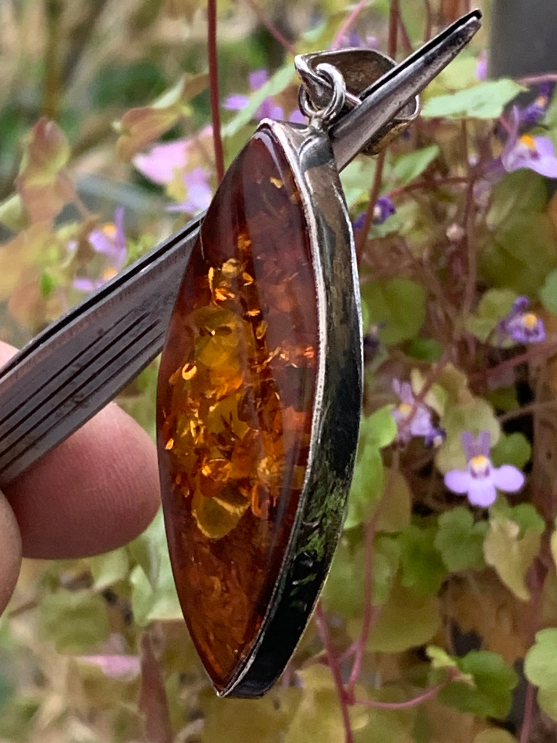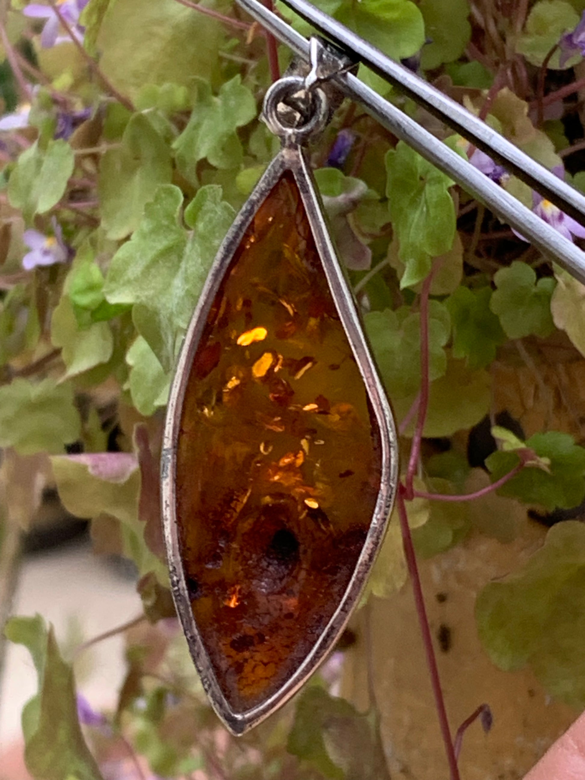 Ambre, superbe pendentif en Argent de 60x20x10 mm. Vendu avec cordon coulissant (réglable), en cuir noir de 40 à 70 cm !