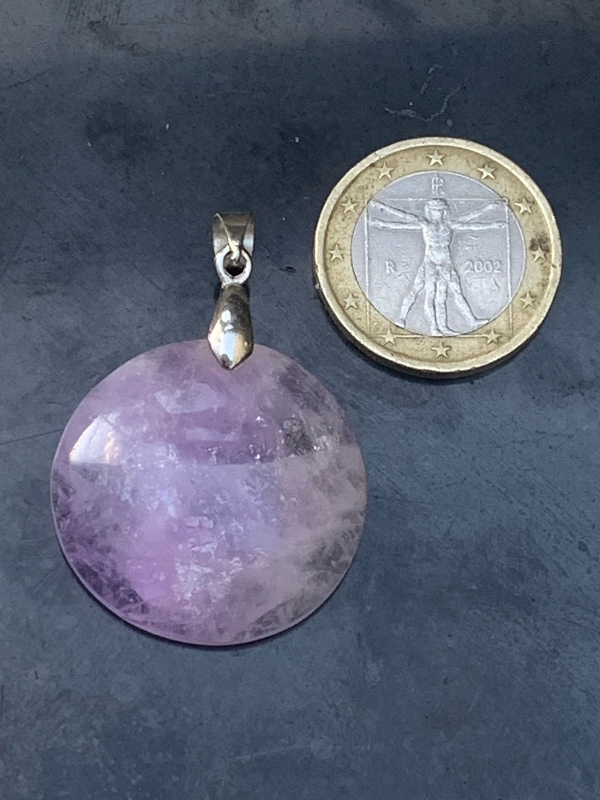 Améthyste, pendentif de 40mm de hauteur x 30 de largeur x 8 d'épaisseur. Vendu avec cordon réglable de couleur noire offert !