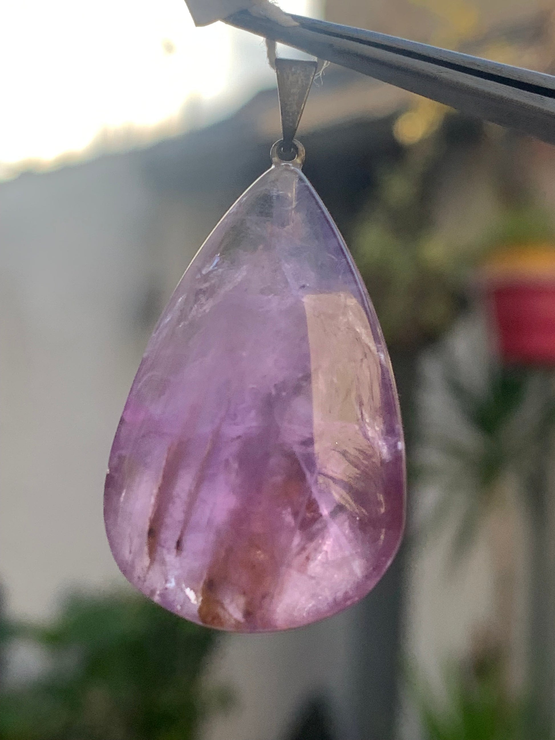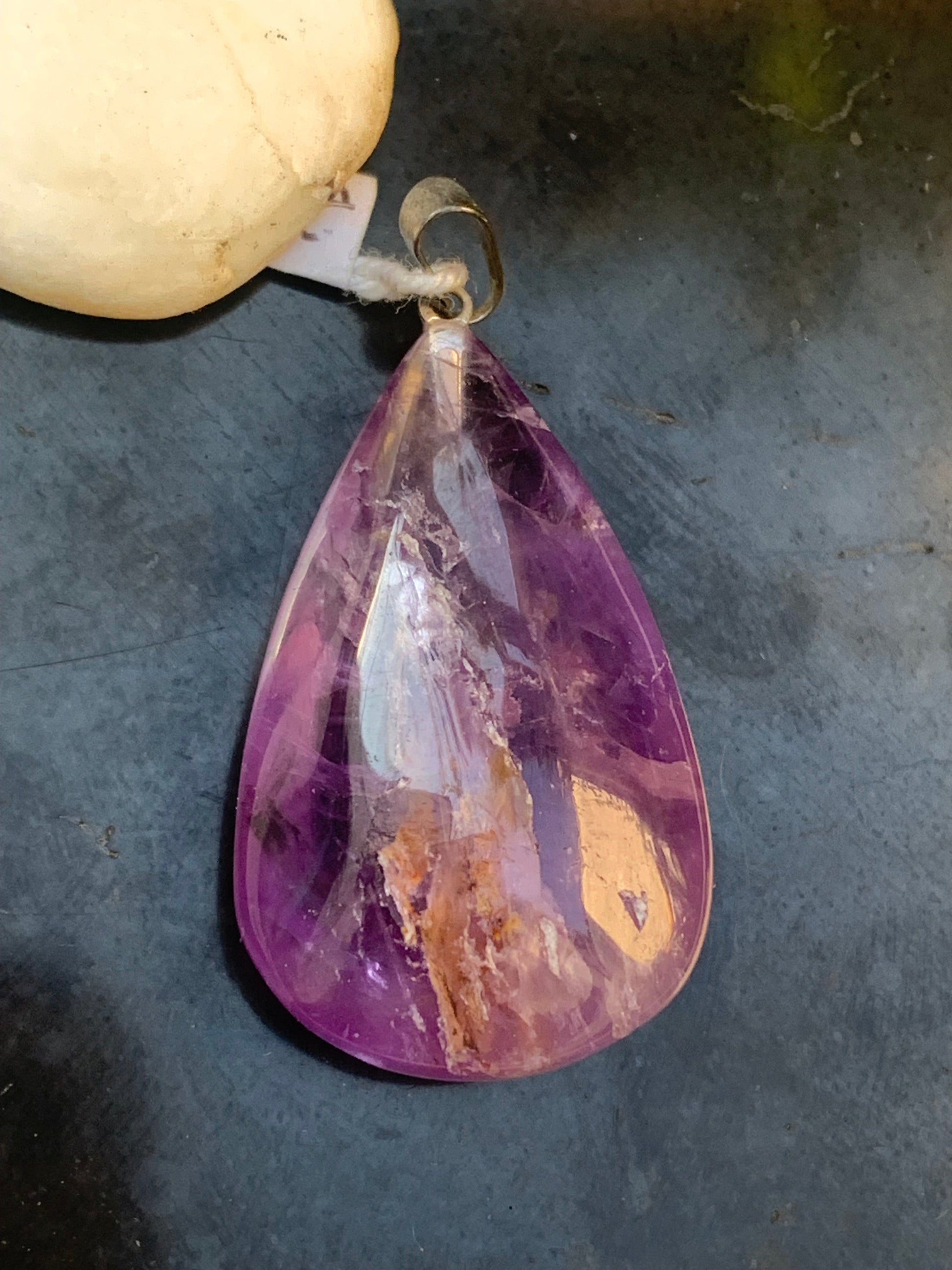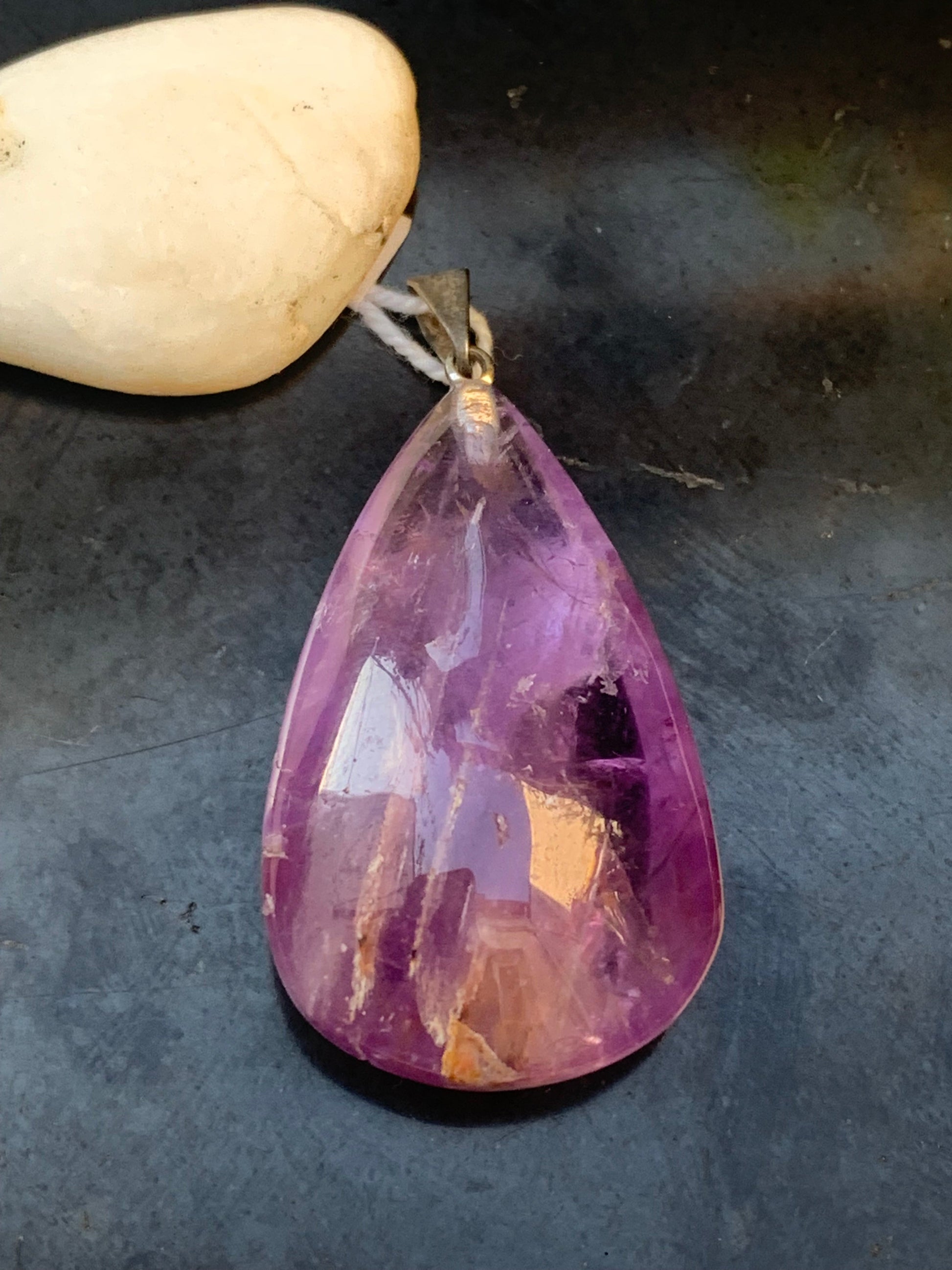 Améthyste, pendentif 'goutte' de 42mm de hauteur x 20 de largeur x 11 d'épaisseur. Vendu avec cordon réglable de couleur noire offert !
