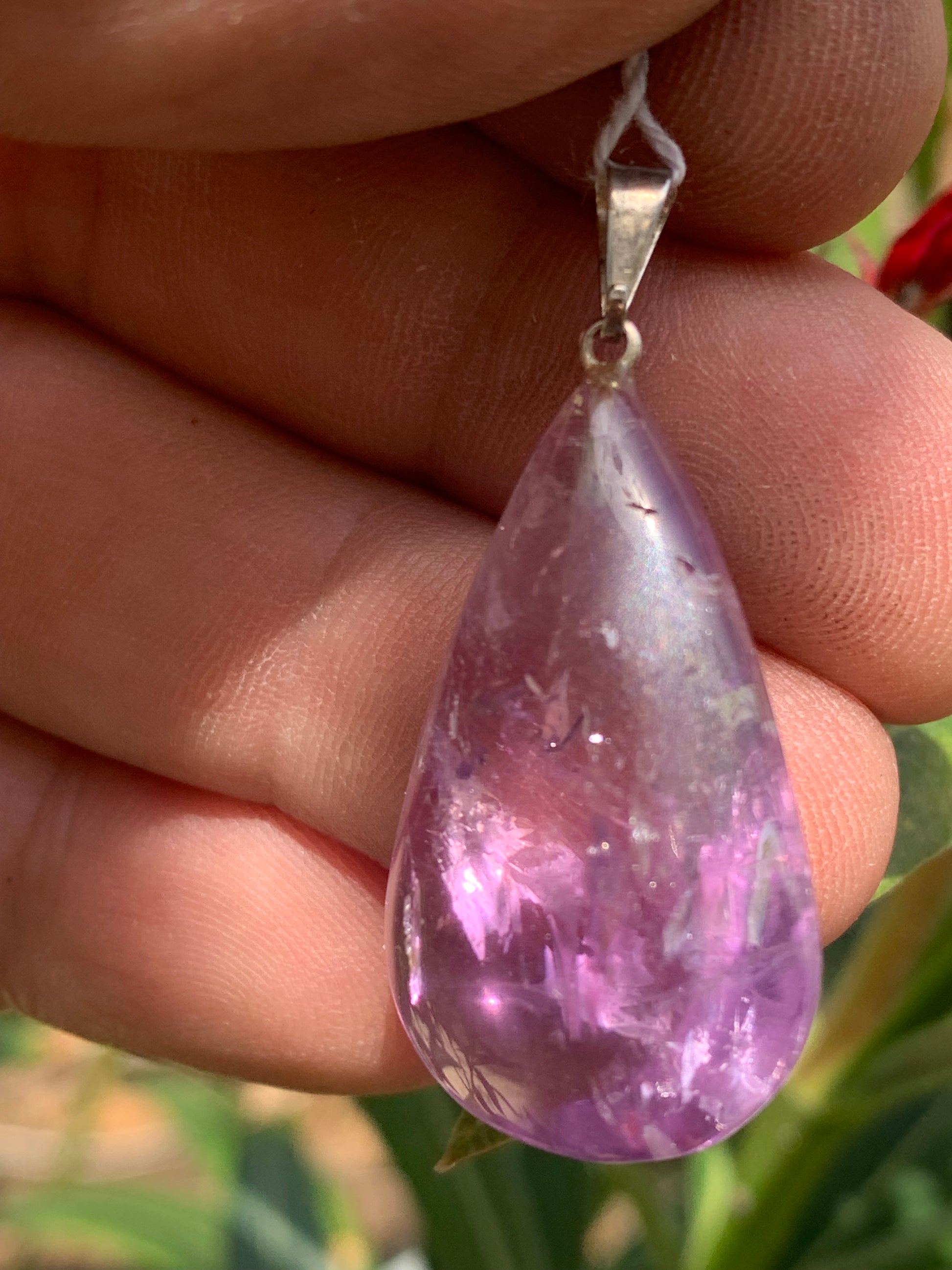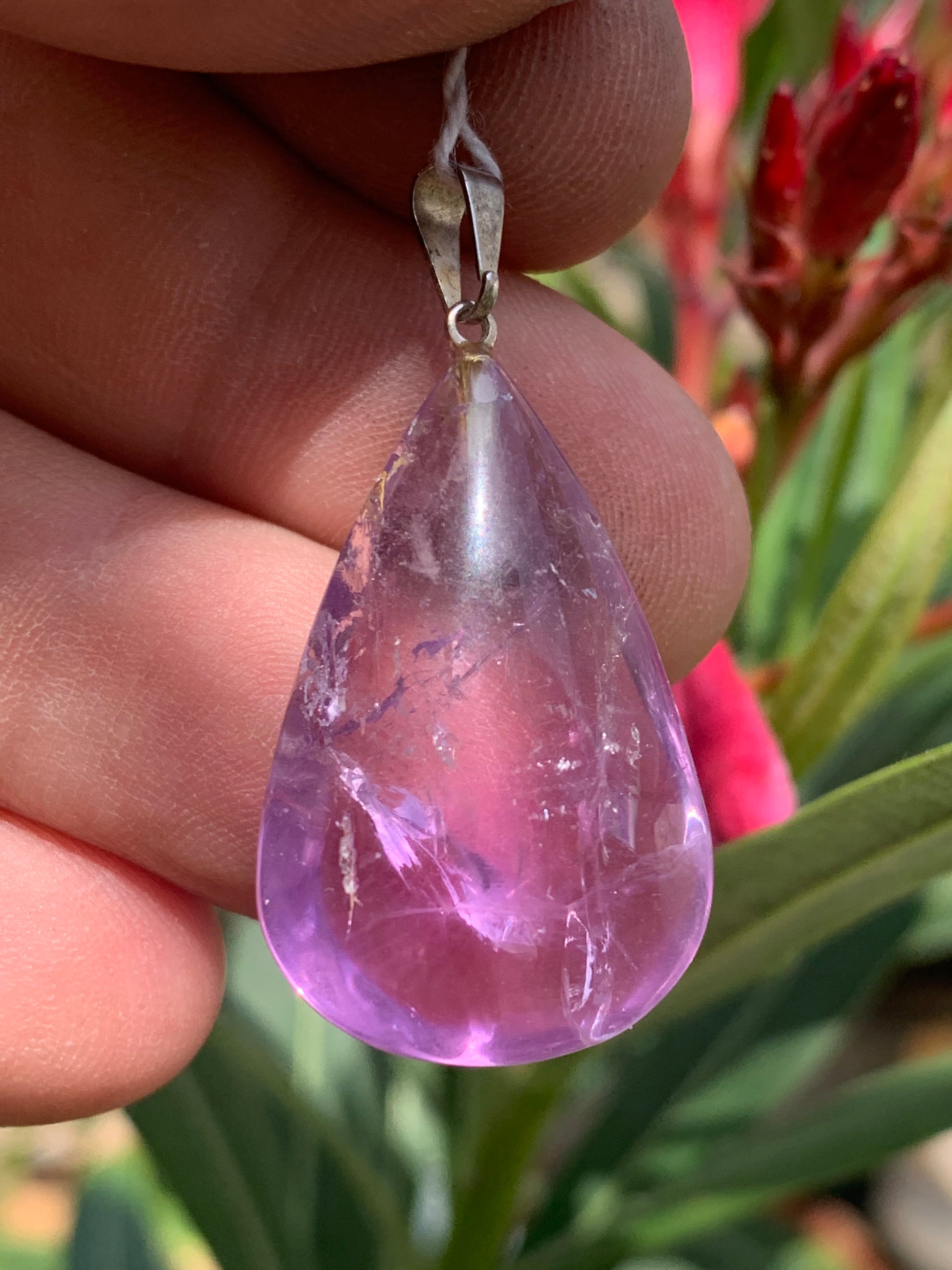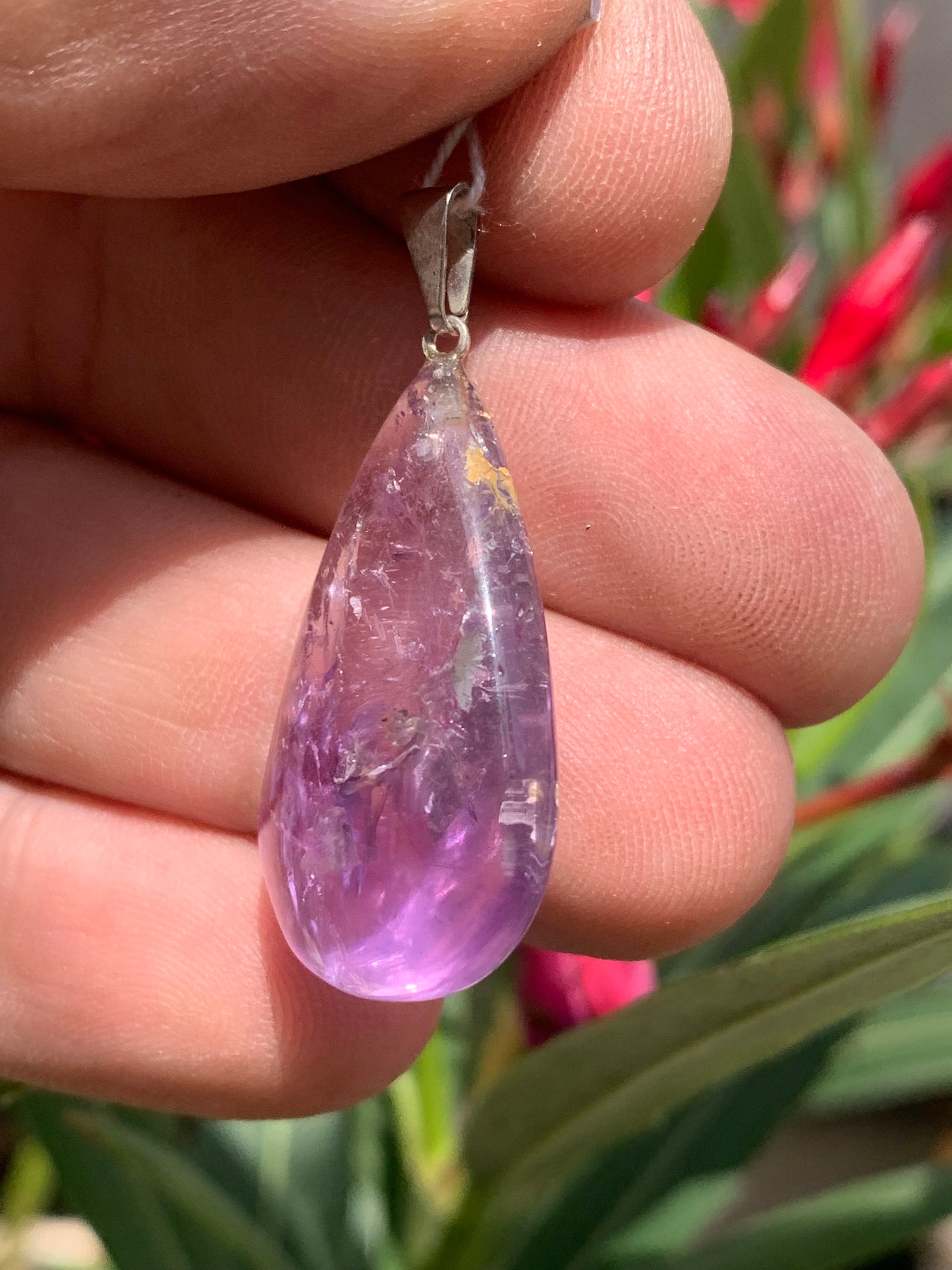 Améthyste, pendentif 'goutte' de 40mm de hauteur x 20 de largeur x 10 d'épaisseur. Vendu avec cordon réglable de couleur noire offert !