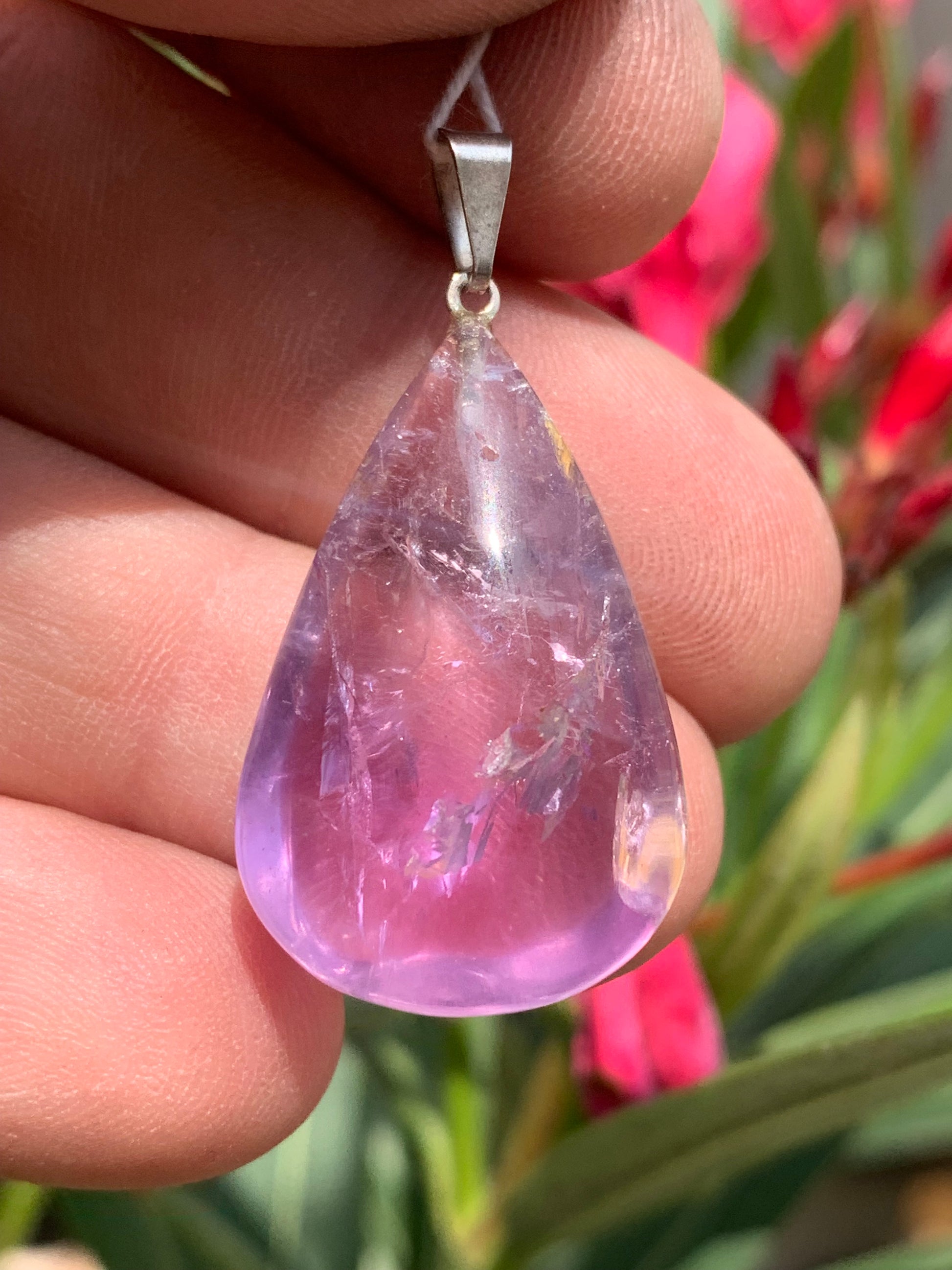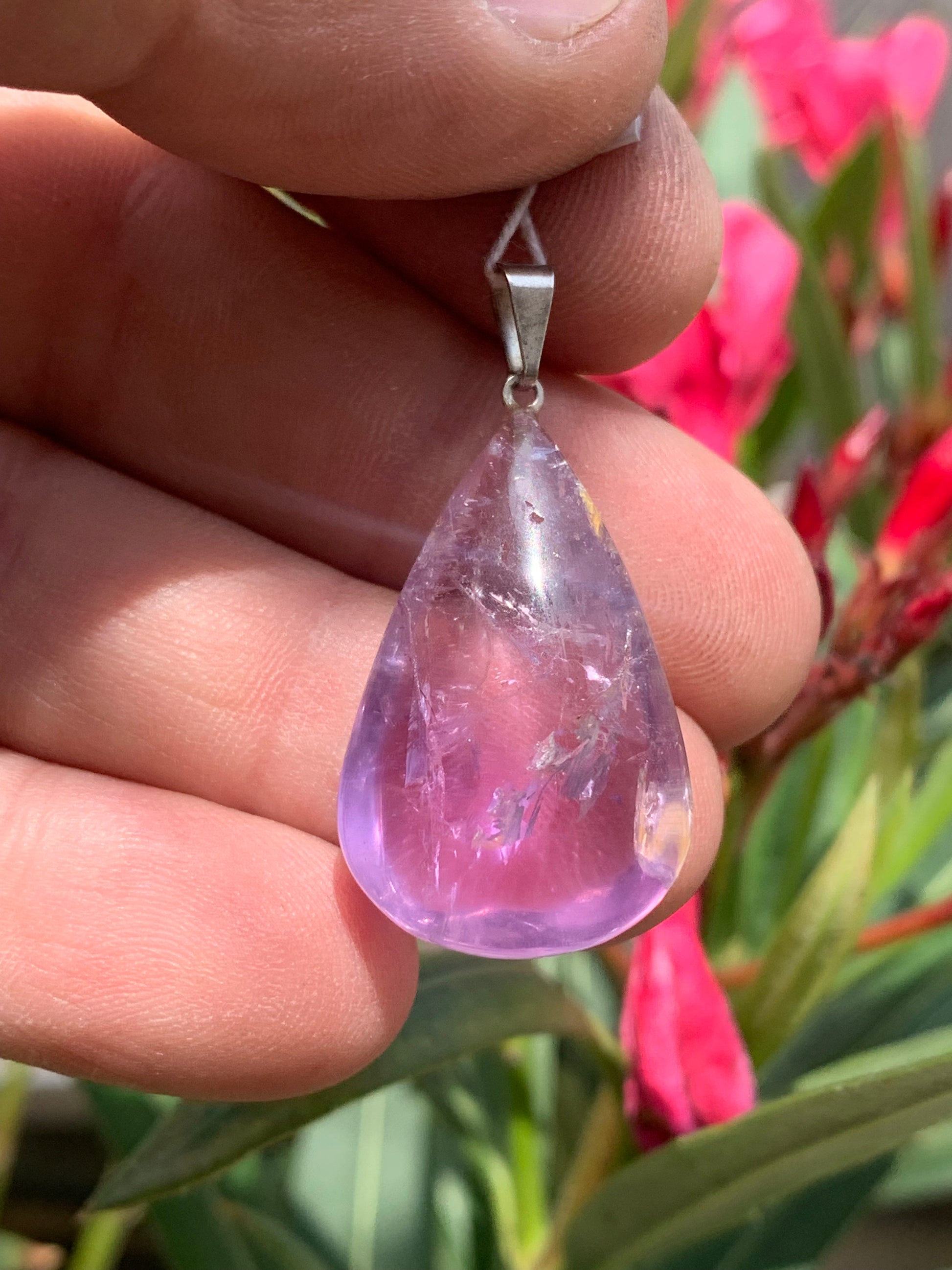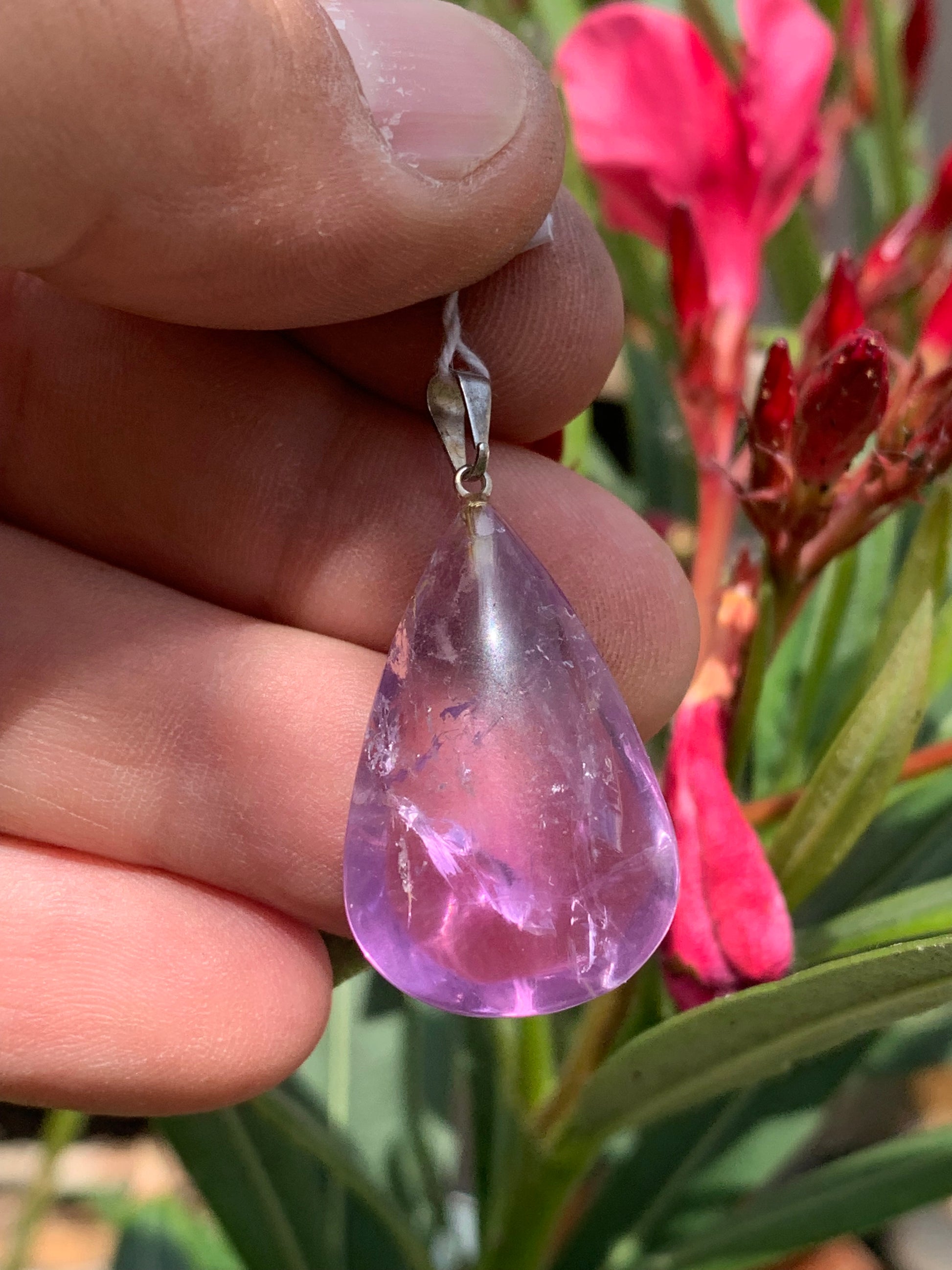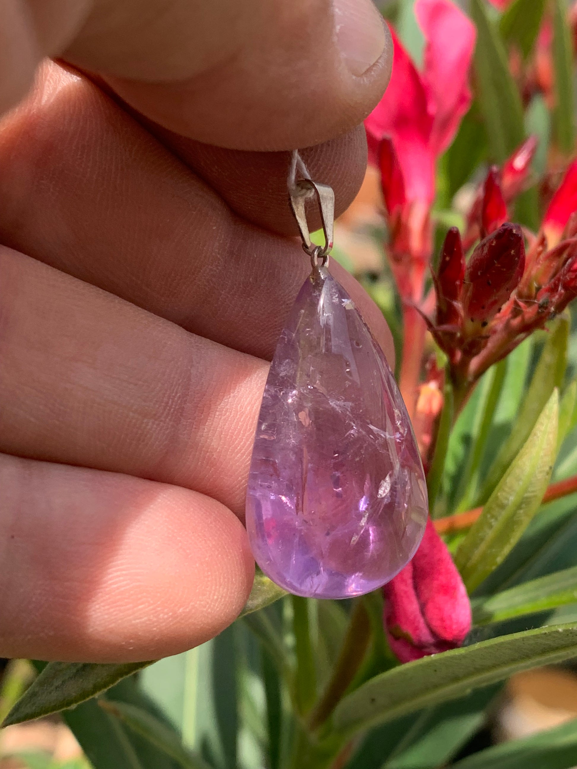 Améthyste, pendentif 'goutte' de 40mm de hauteur x 20 de largeur x 10 d'épaisseur. Vendu avec cordon réglable de couleur noire offert !