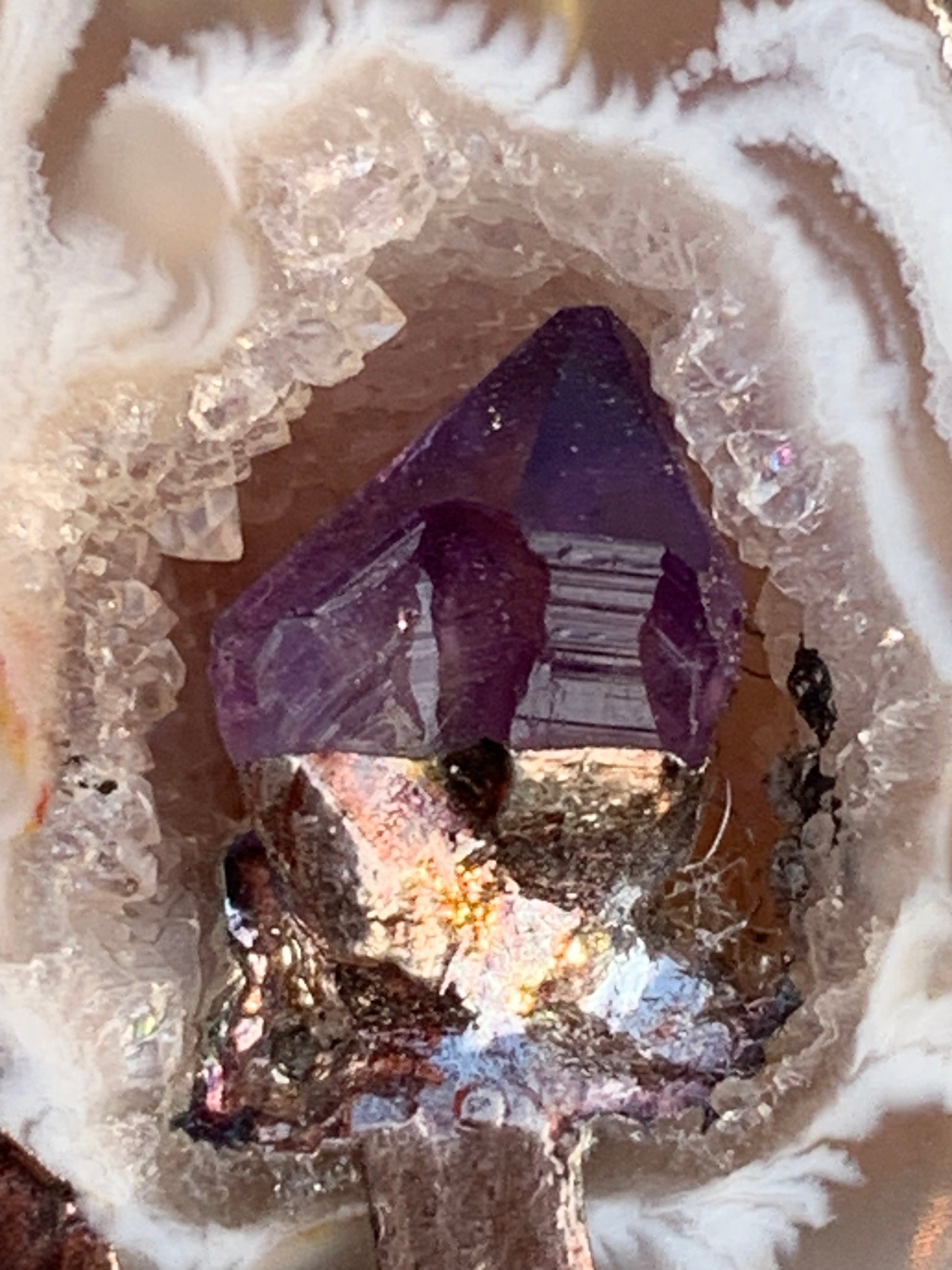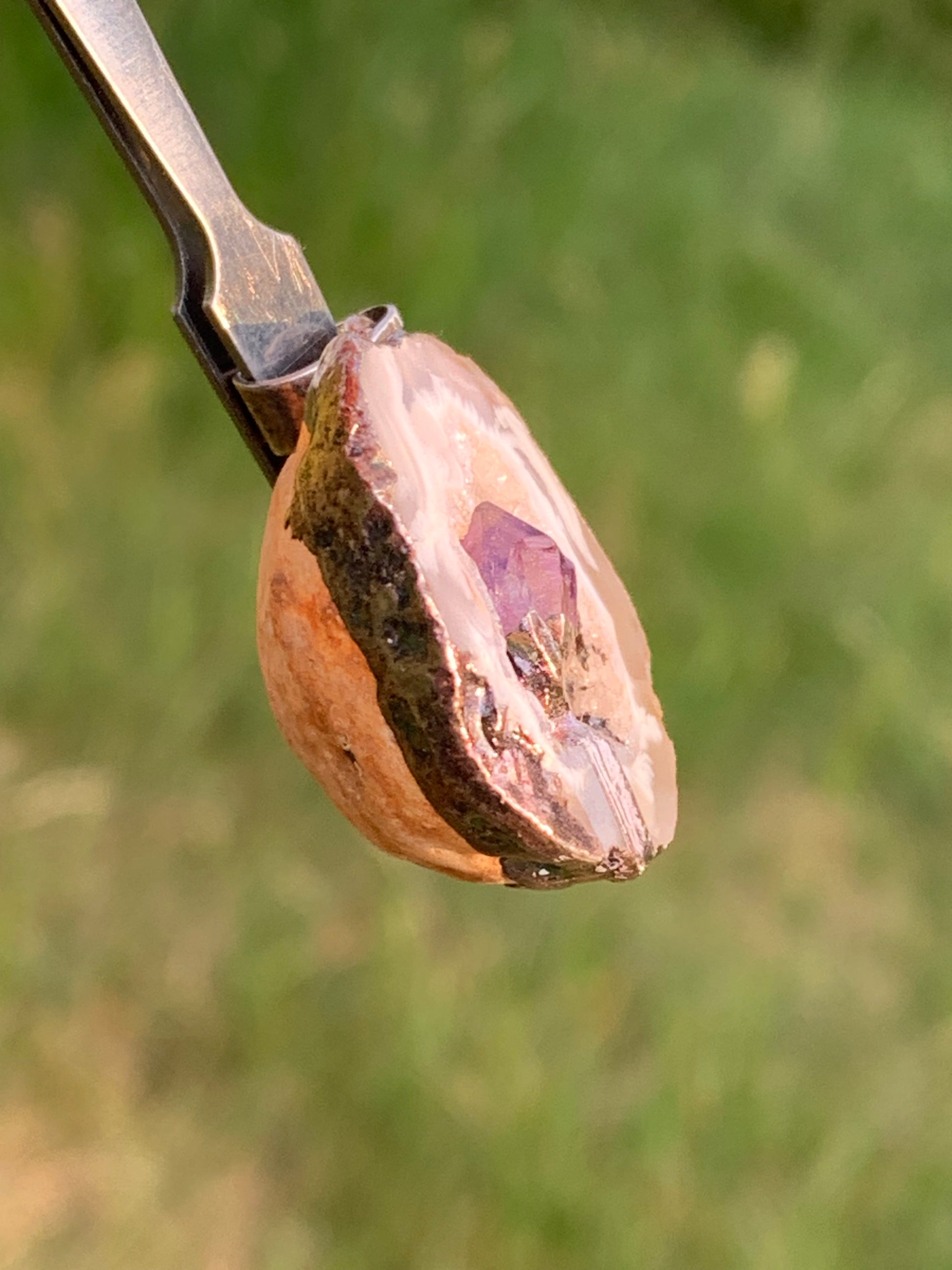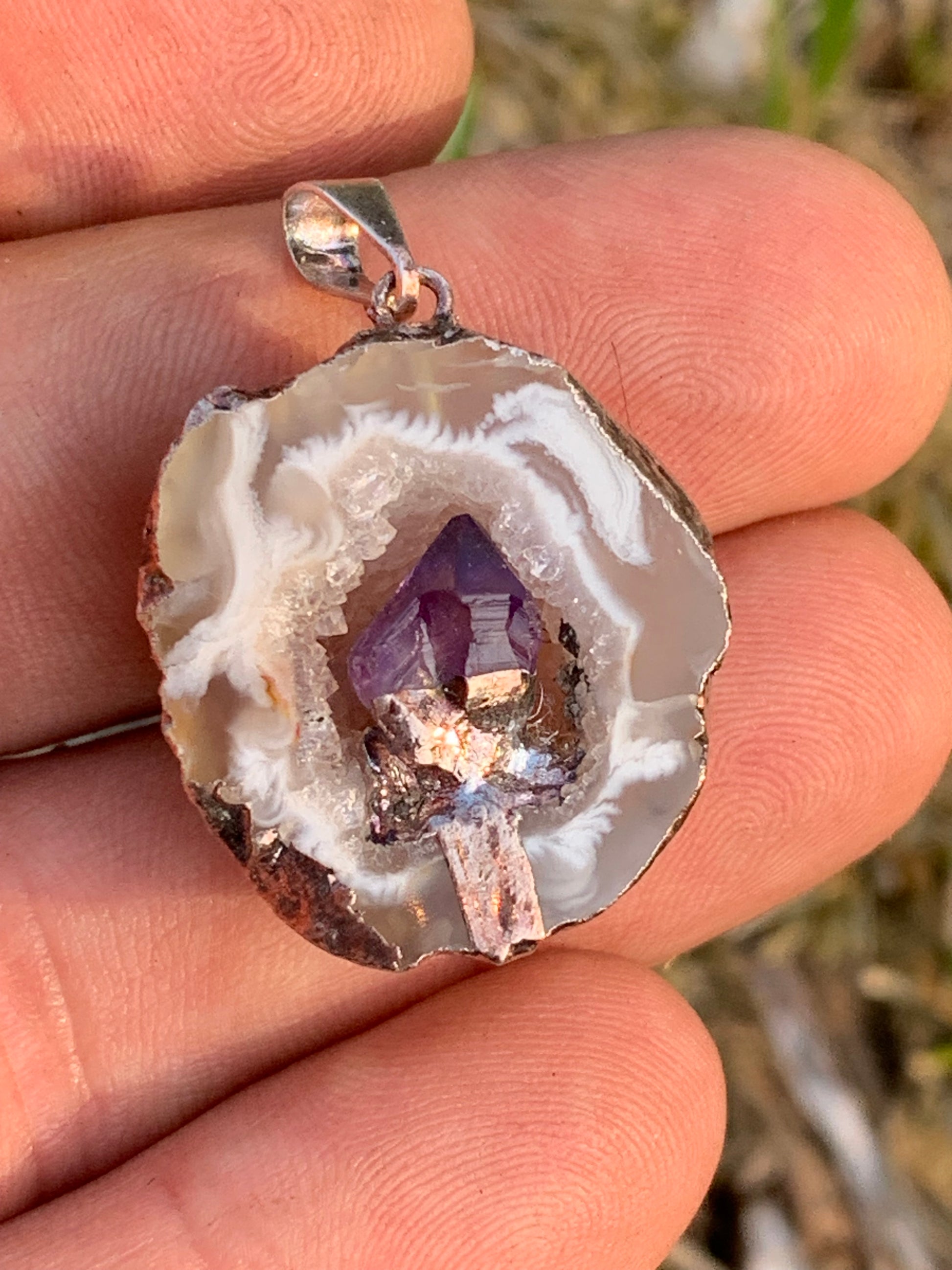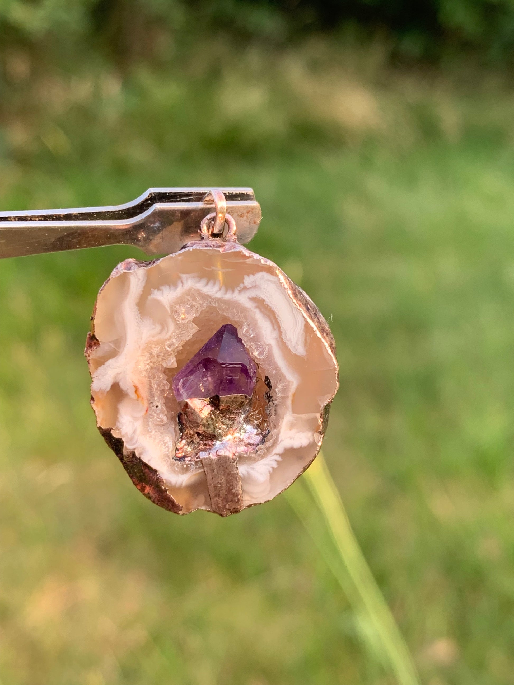 Améthyste et Agate, pendentif 'mini-géode' dit 'geodinhos', de 35mm de hauteur x 23 x 15. Vendu avec cordon noir réglable offert !