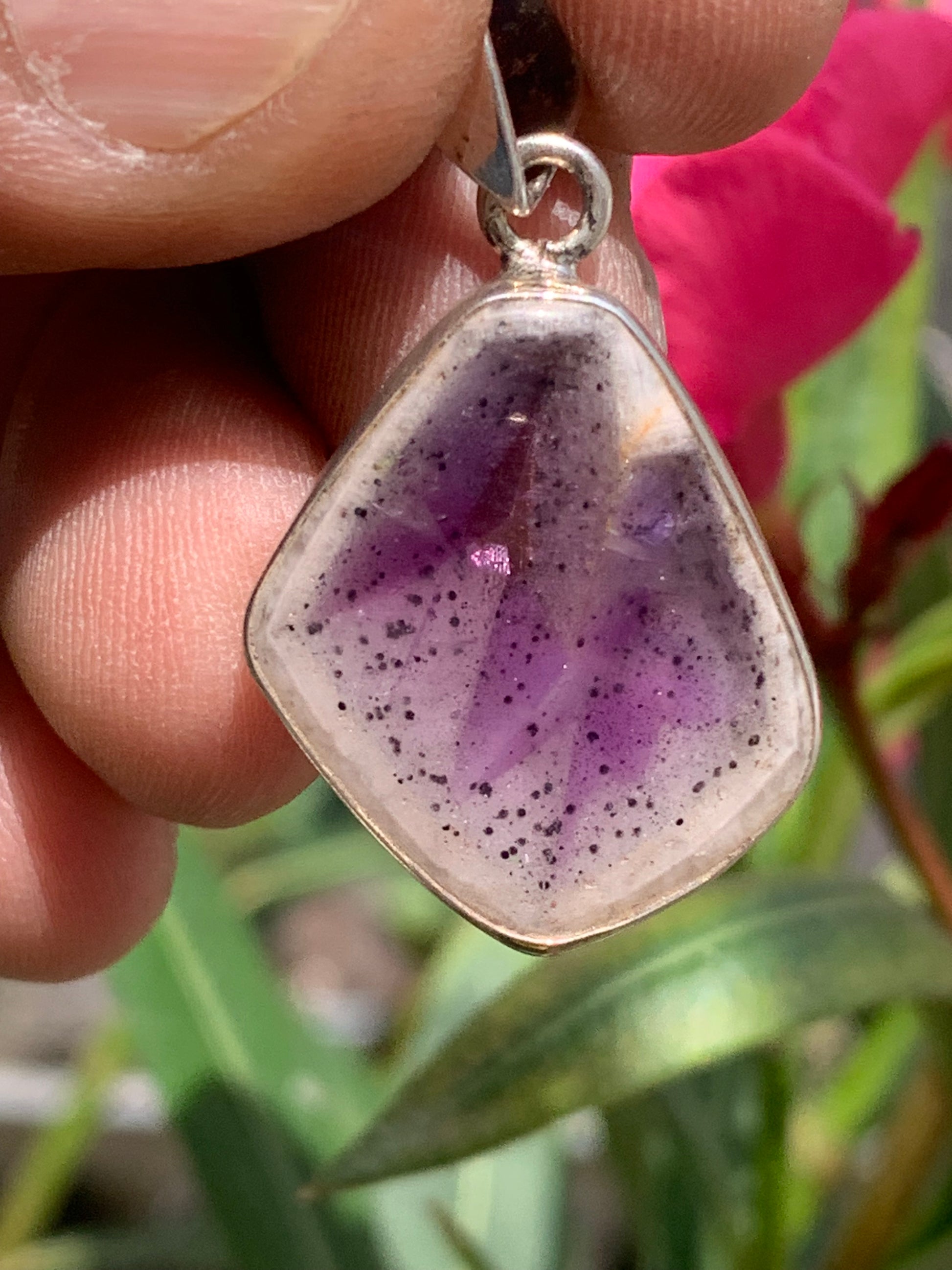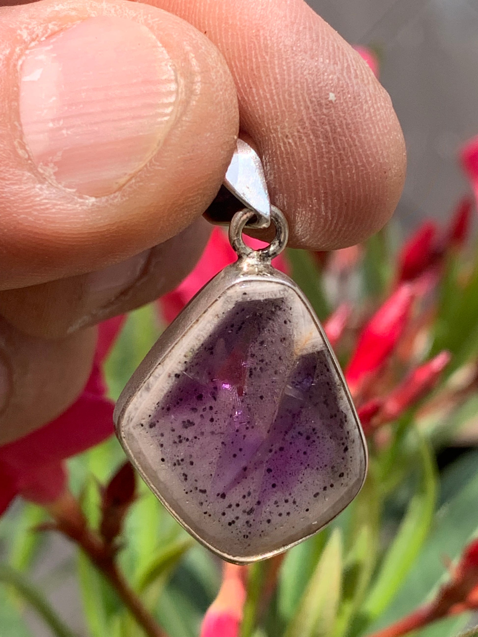 Améthyste 'super 7/ super seven', pendentif en Argent de 37mm de hauteur x 22 de largeur x 6 d'épaisseur. Vendu avec cordon réglable de couleur noire offert !