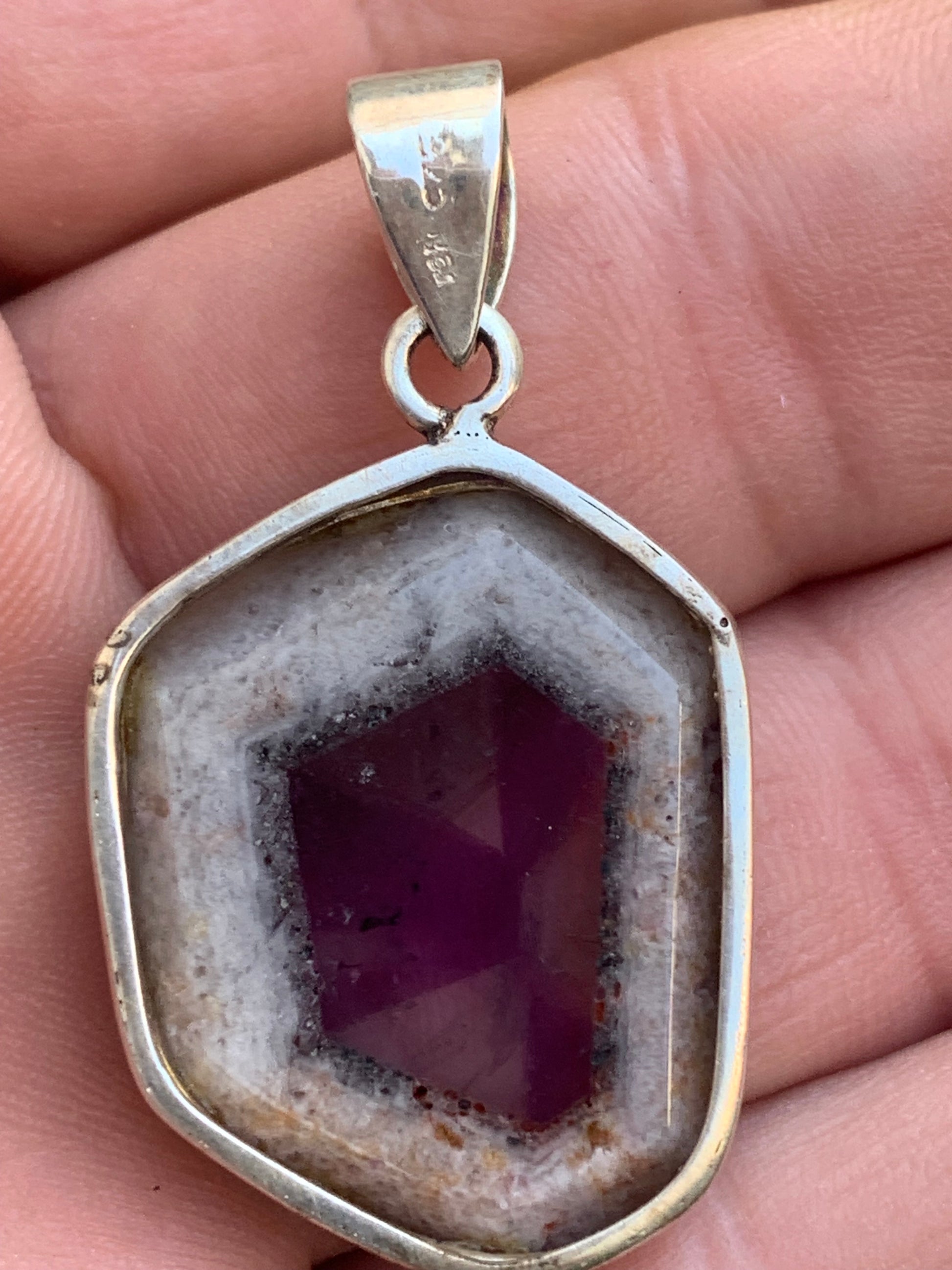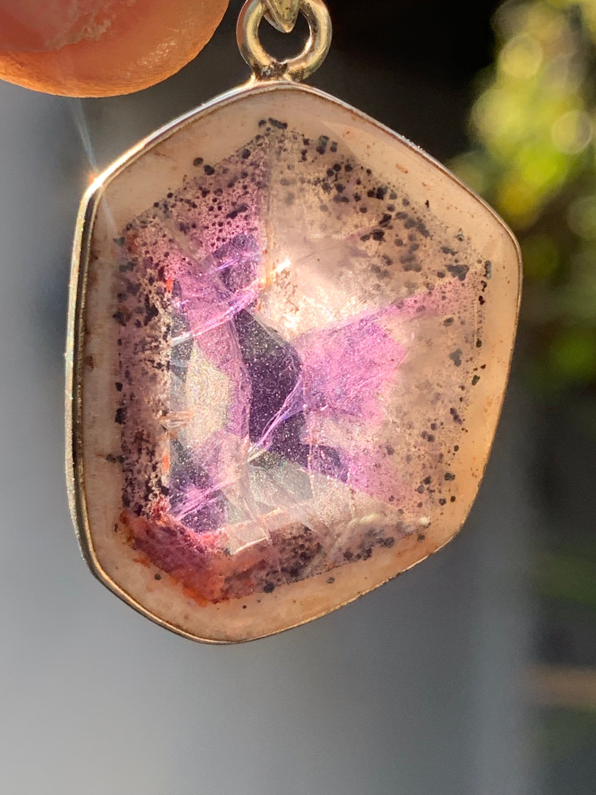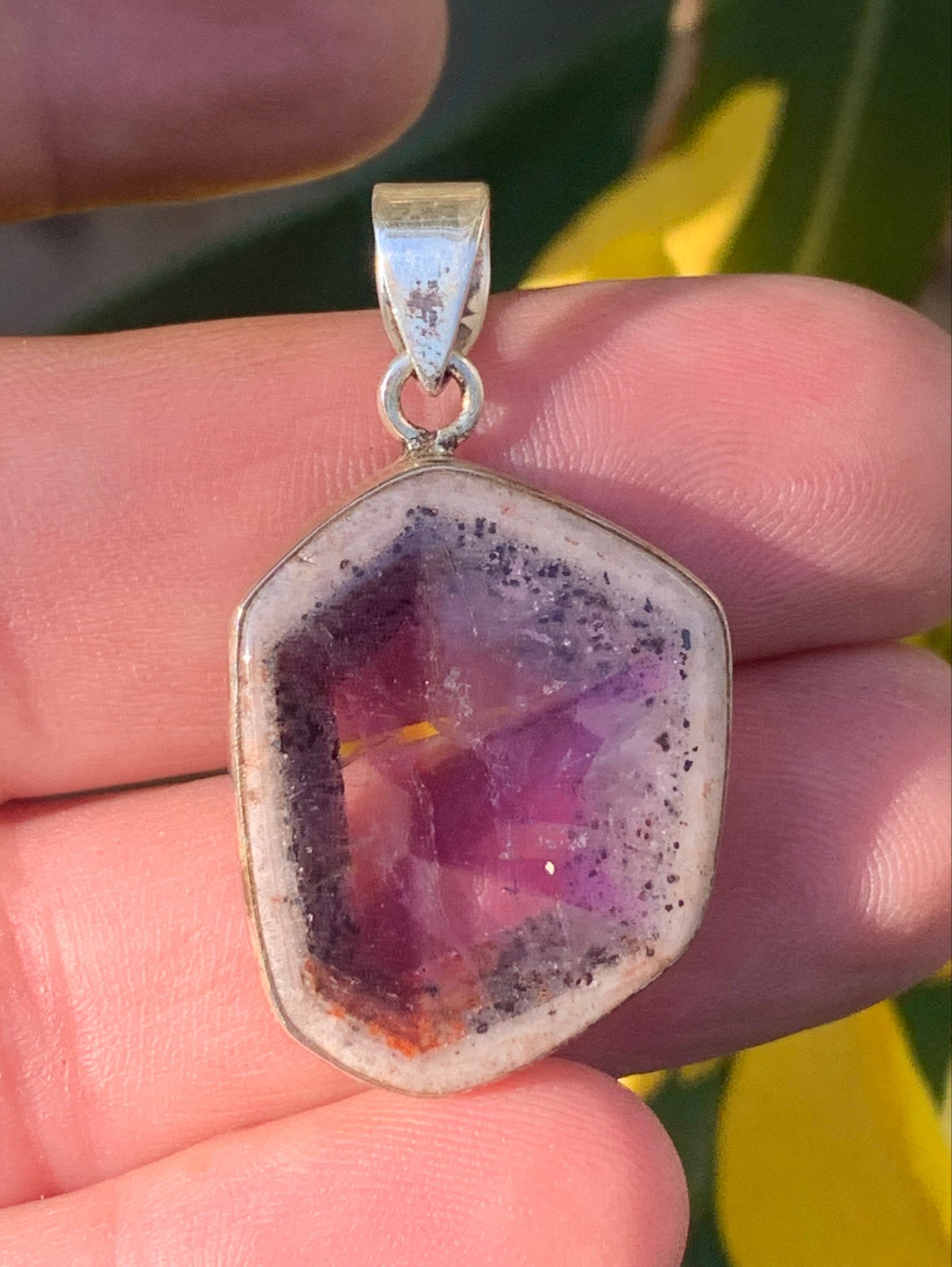 Améthyste 'super 7/ super seven', pendentif en Argent de 40mm de hauteur x 25 de largeur x 6 d'épaisseur. Vendu avec cordon réglable de couleur noire offert !