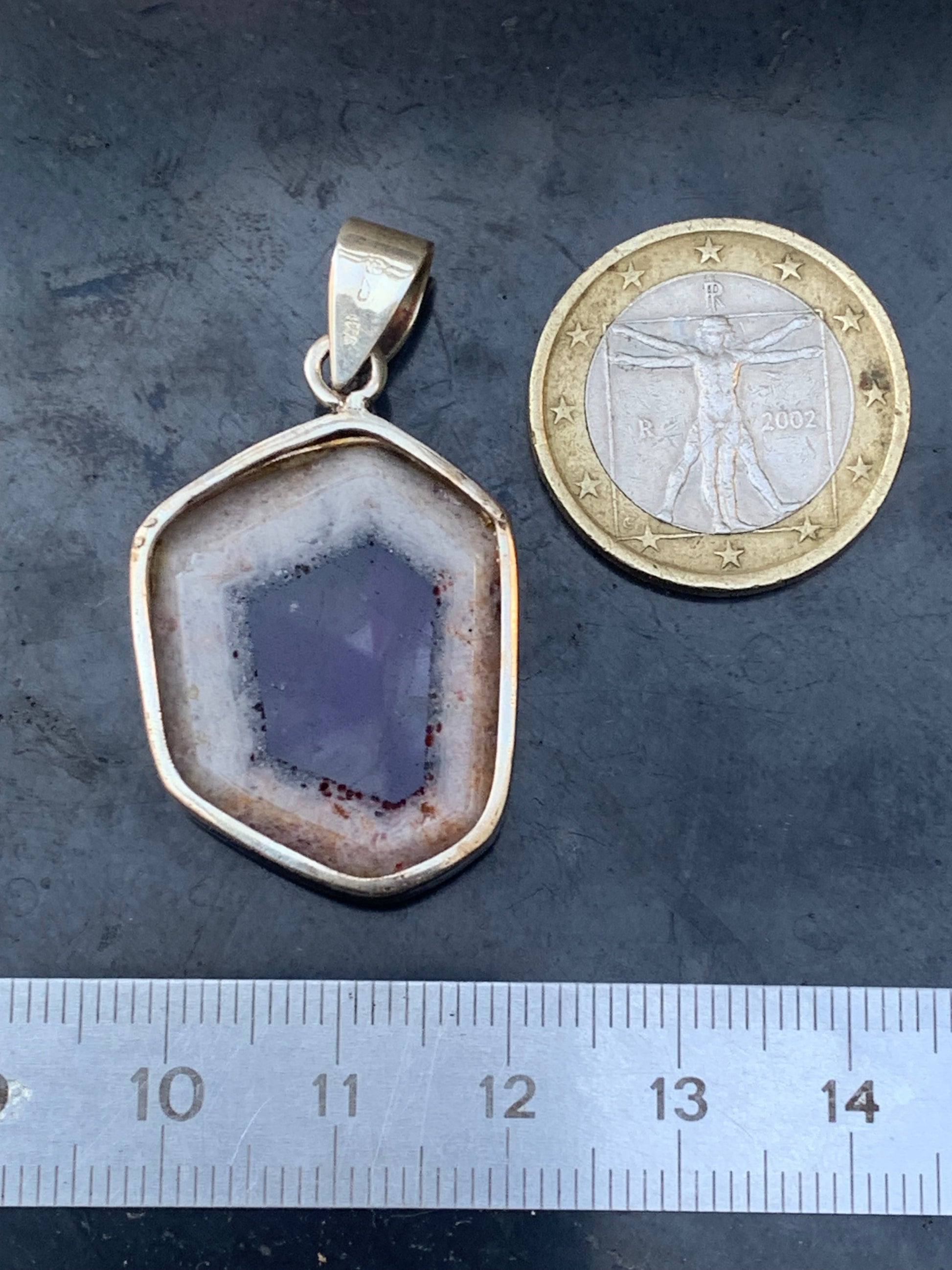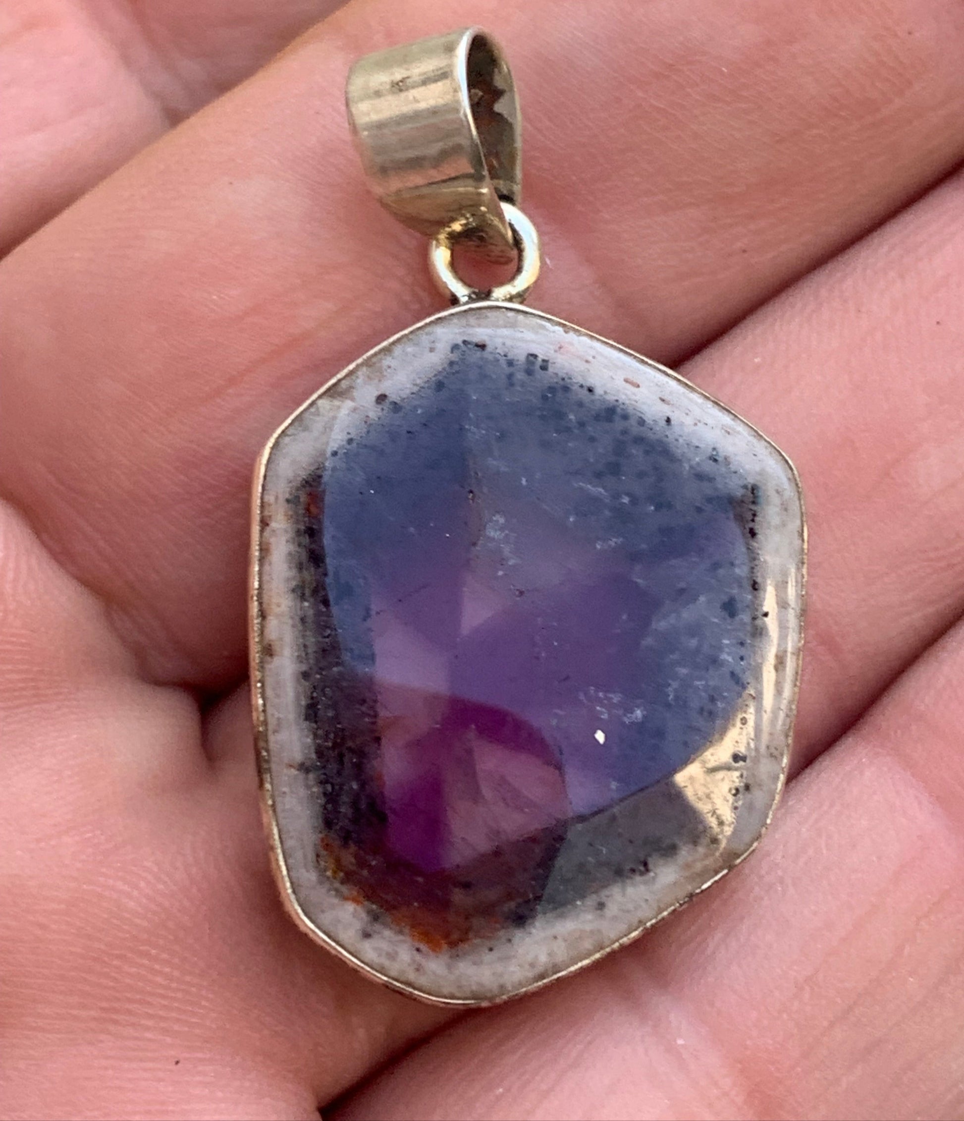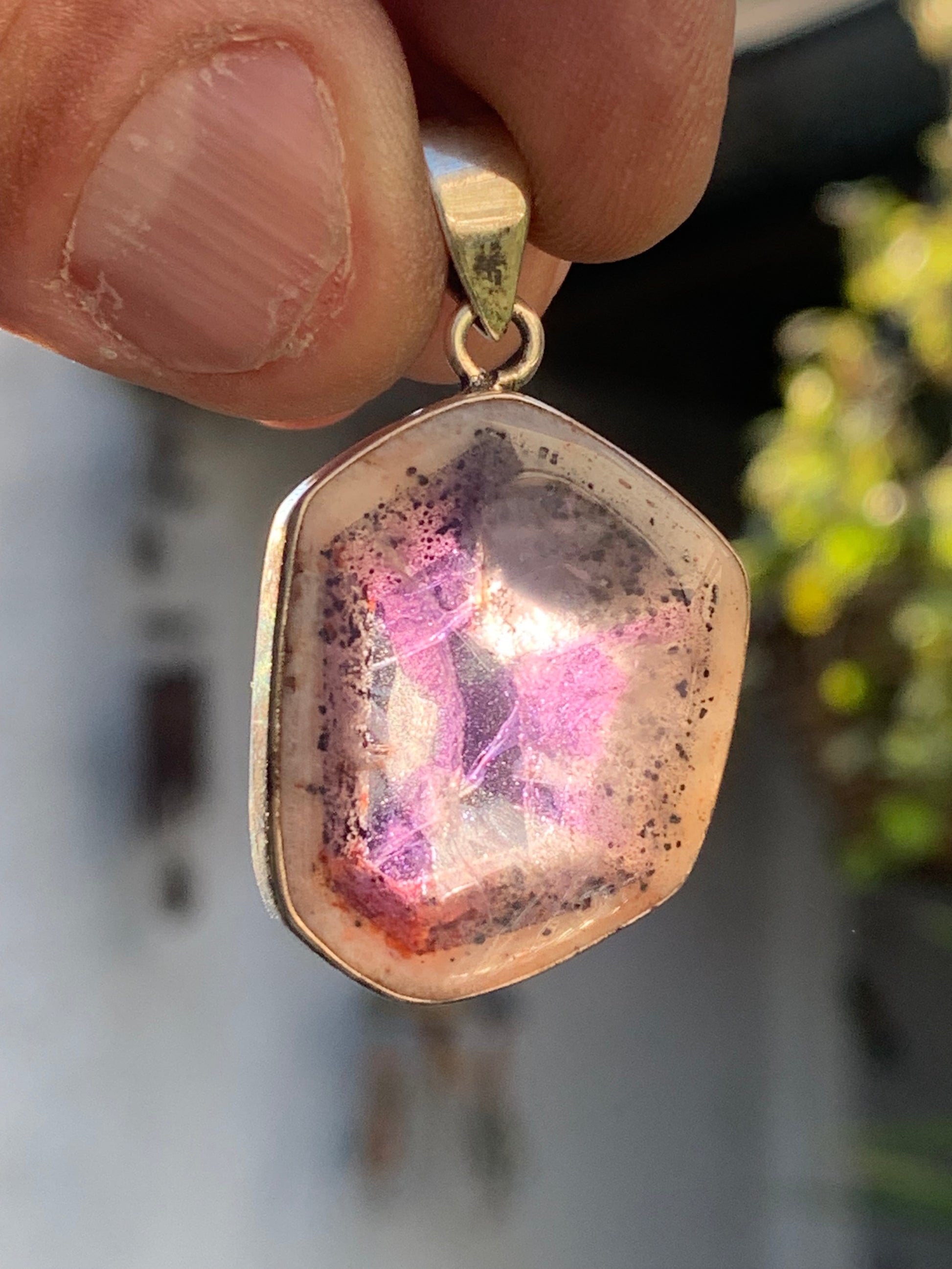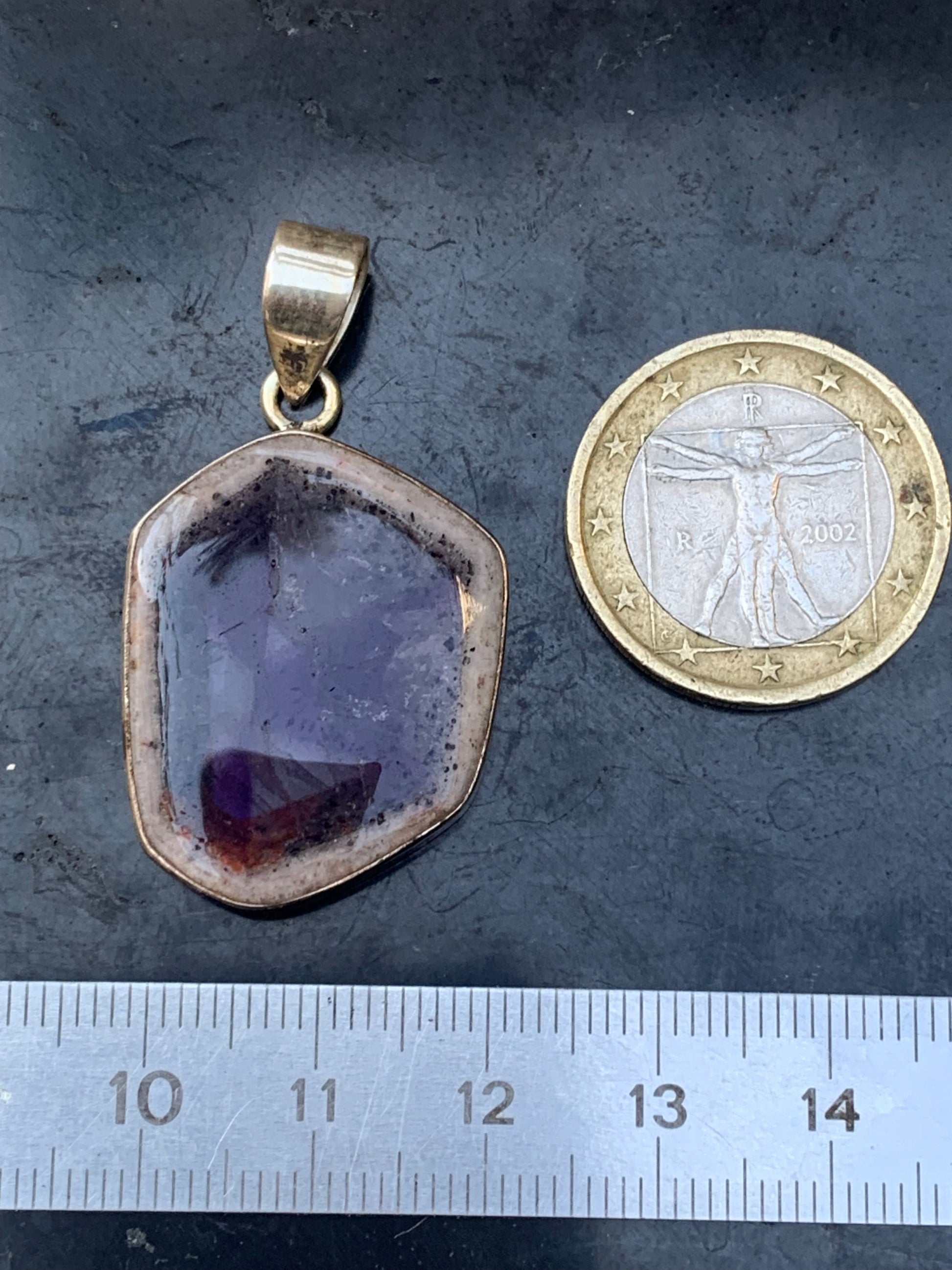 Améthyste 'super 7/ super seven', pendentif en Argent de 40mm de hauteur x 25 de largeur x 6 d'épaisseur. Vendu avec cordon réglable de couleur noire offert !