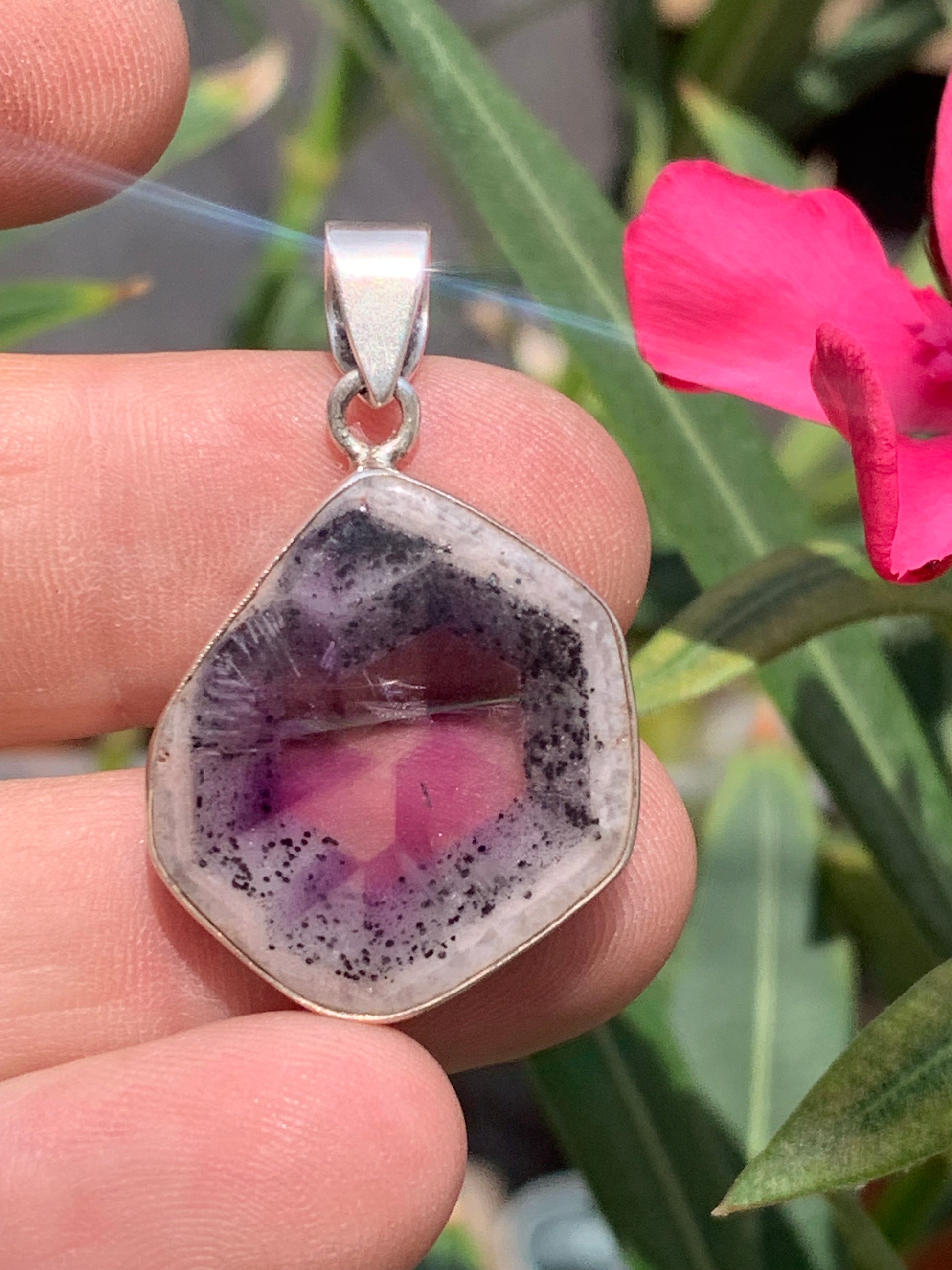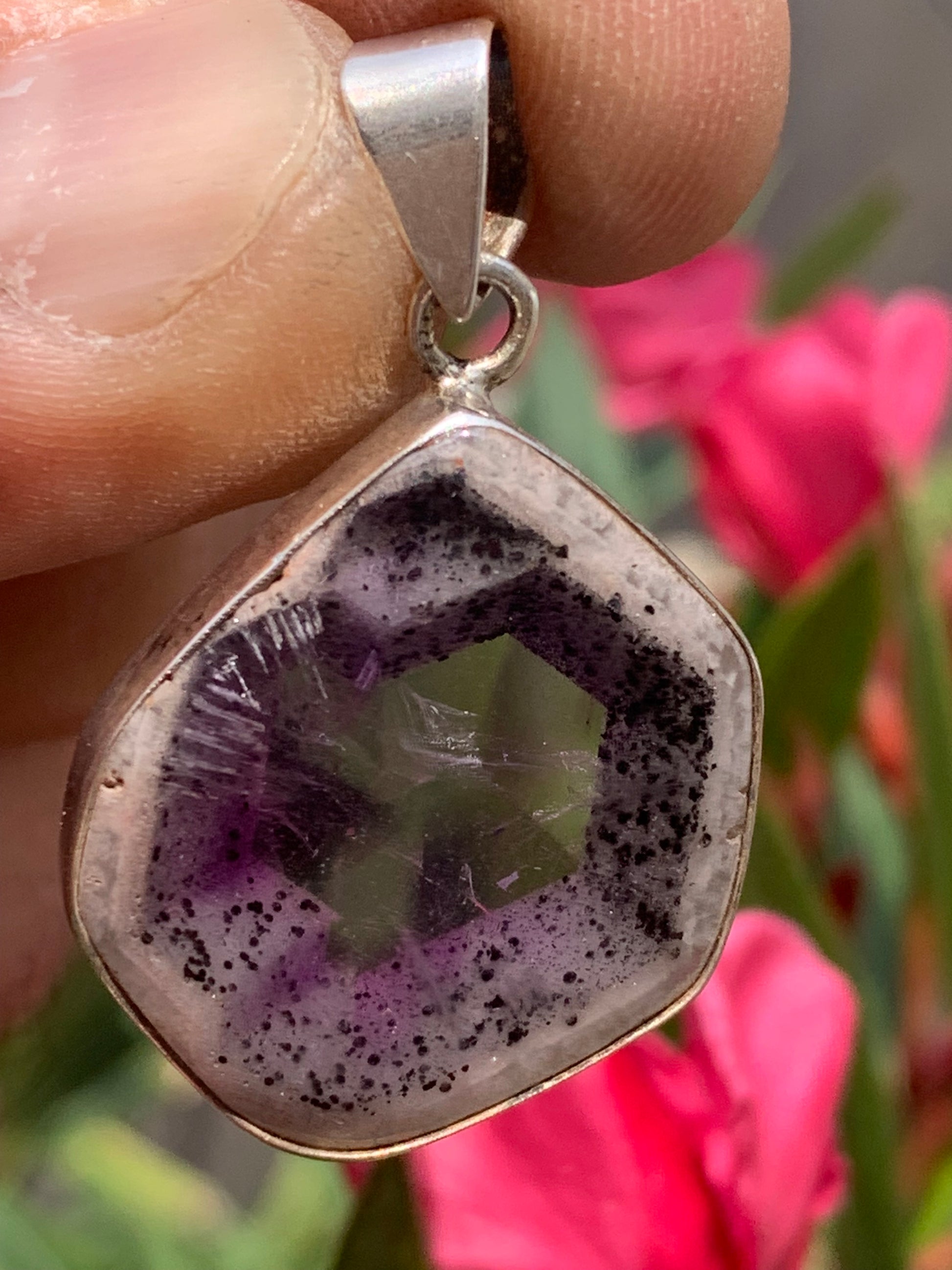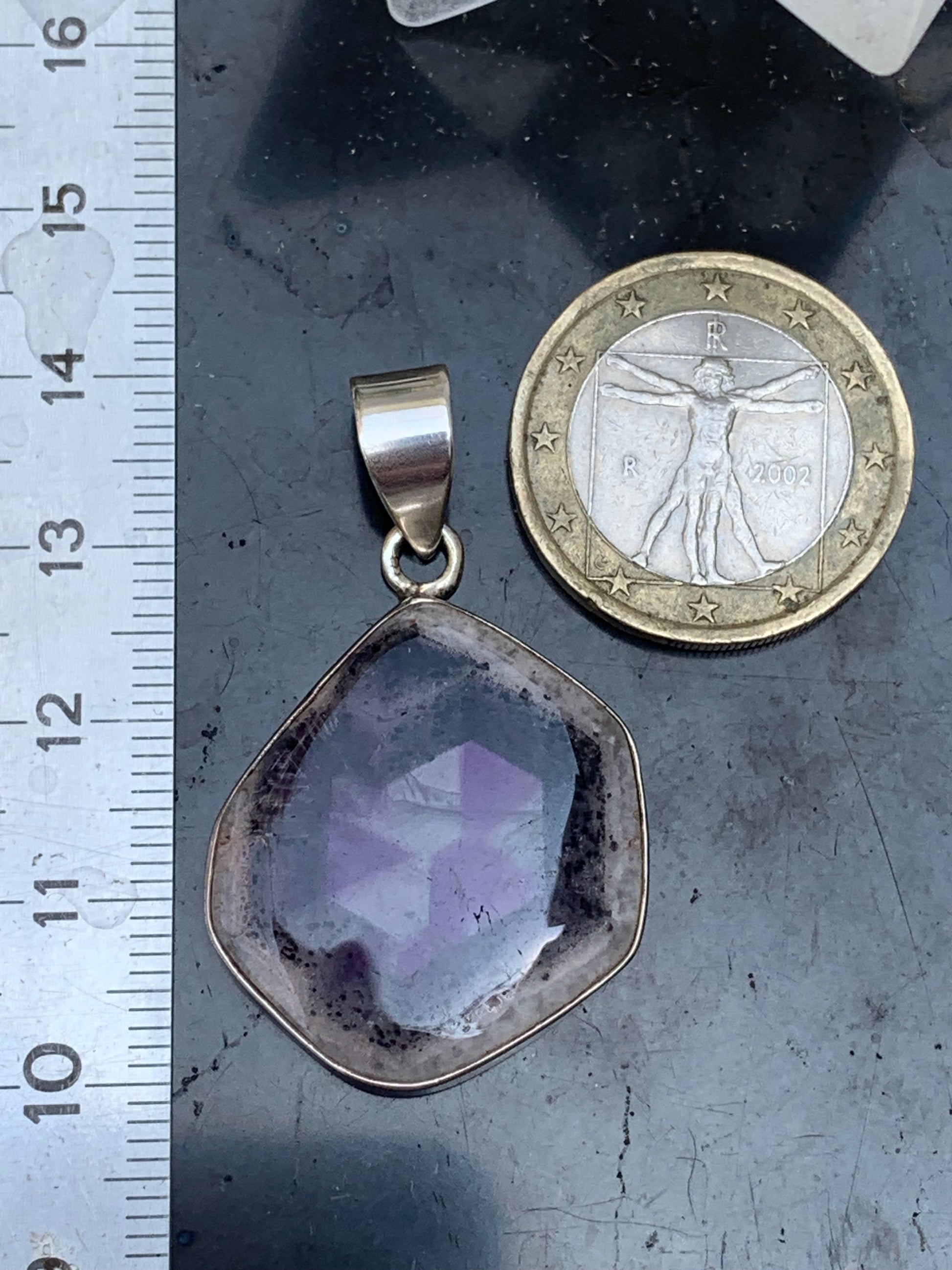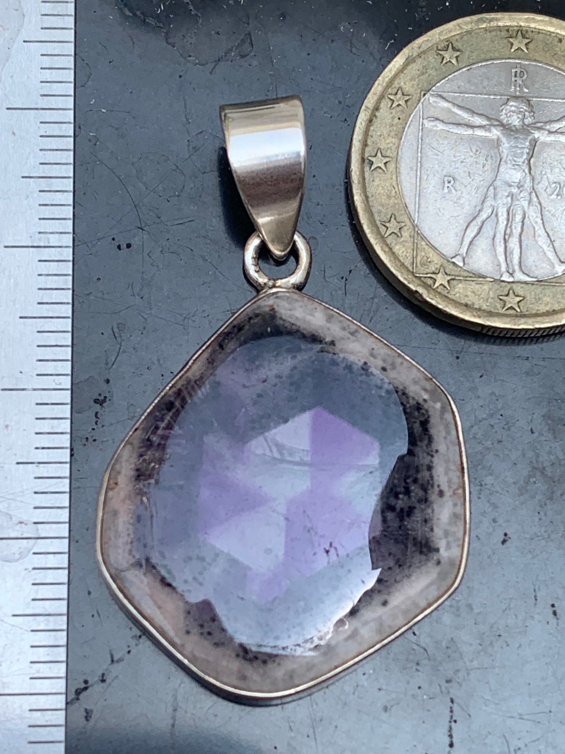 Améthyste 'super 7/ super seven', pendentif en Argent de 40mm de hauteur x 25 de largeur x 6 d'épaisseur. Vendu avec cordon réglable de couleur noire offert !