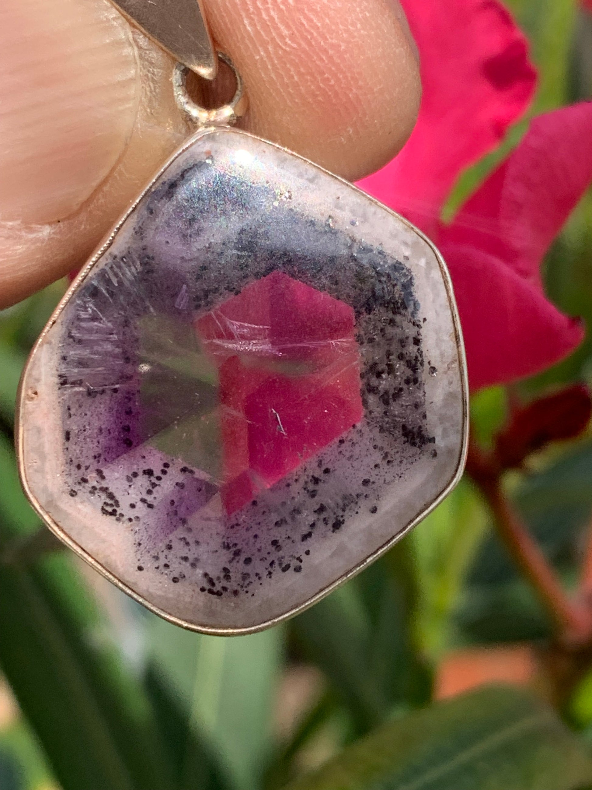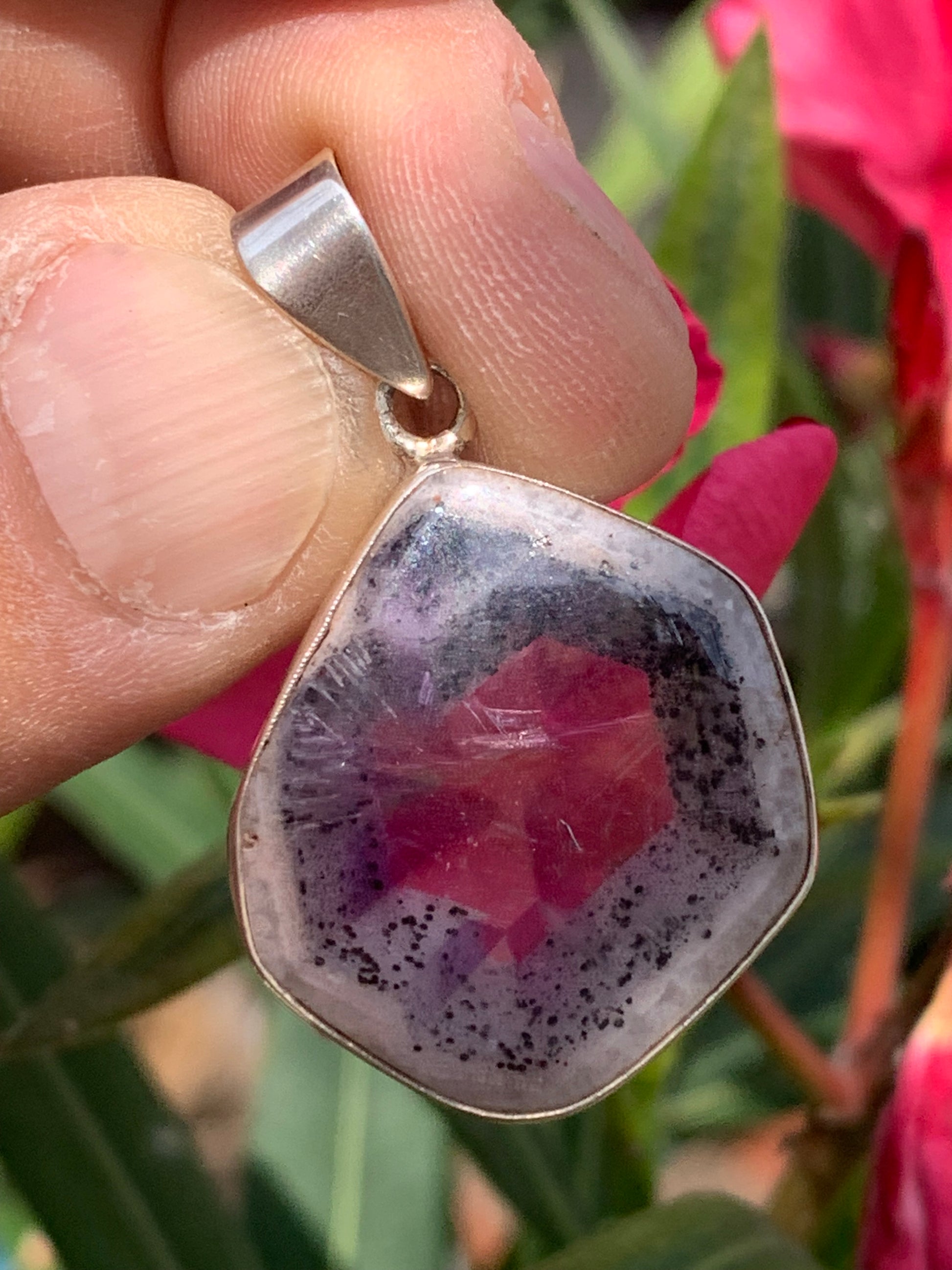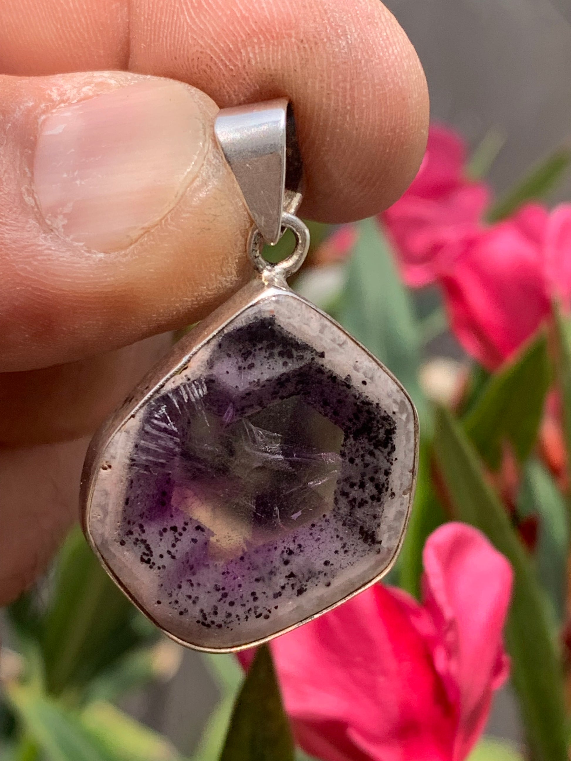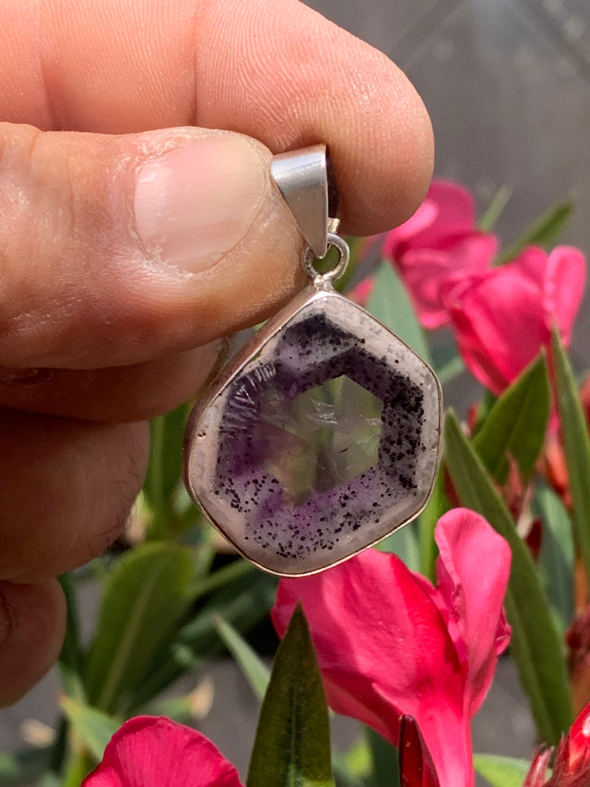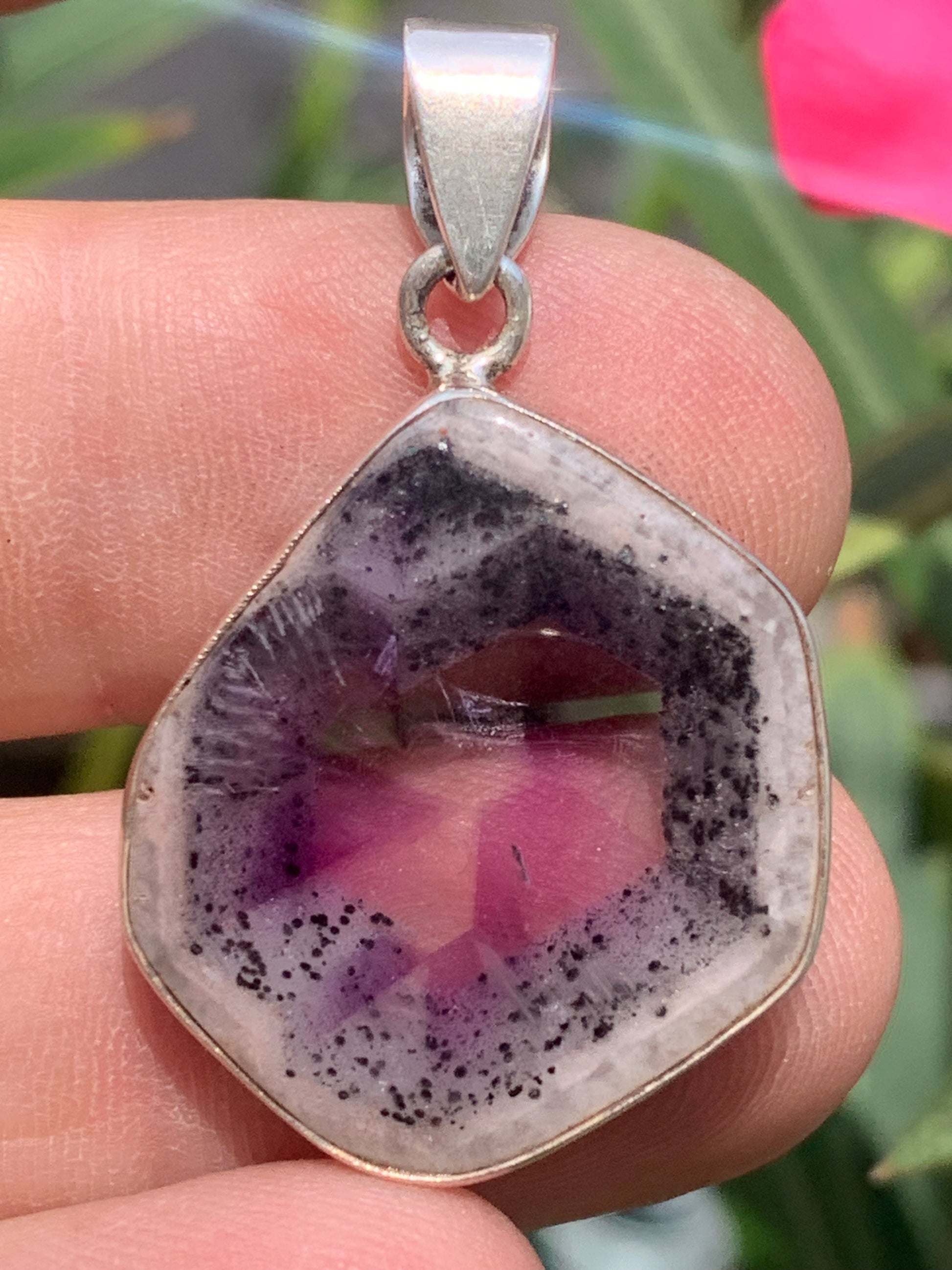 Améthyste 'super 7/ super seven', pendentif en Argent de 40mm de hauteur x 25 de largeur x 6 d'épaisseur. Vendu avec cordon réglable de couleur noire offert !