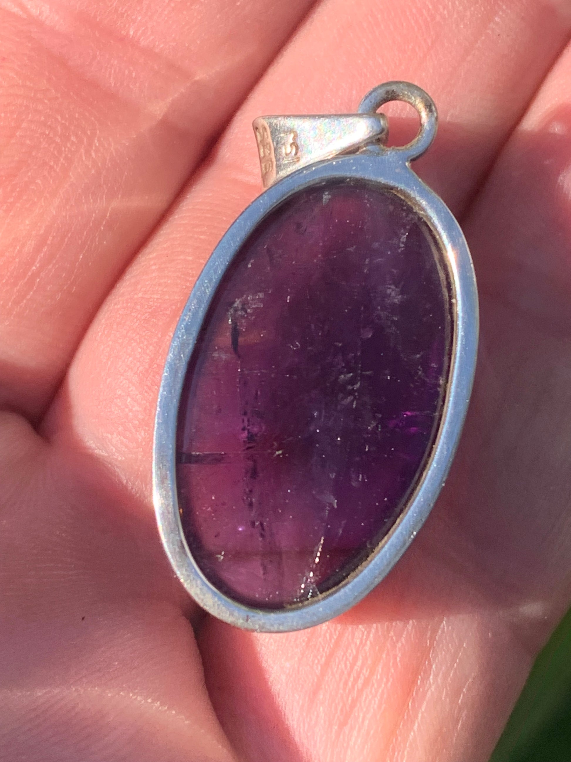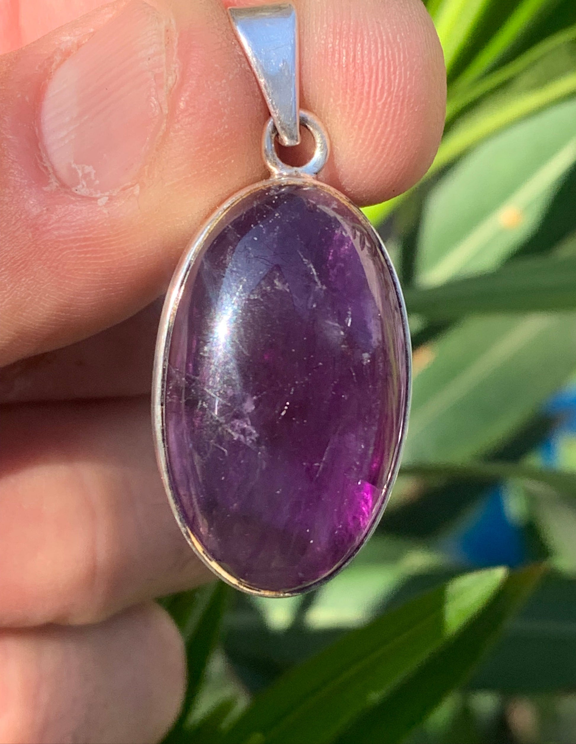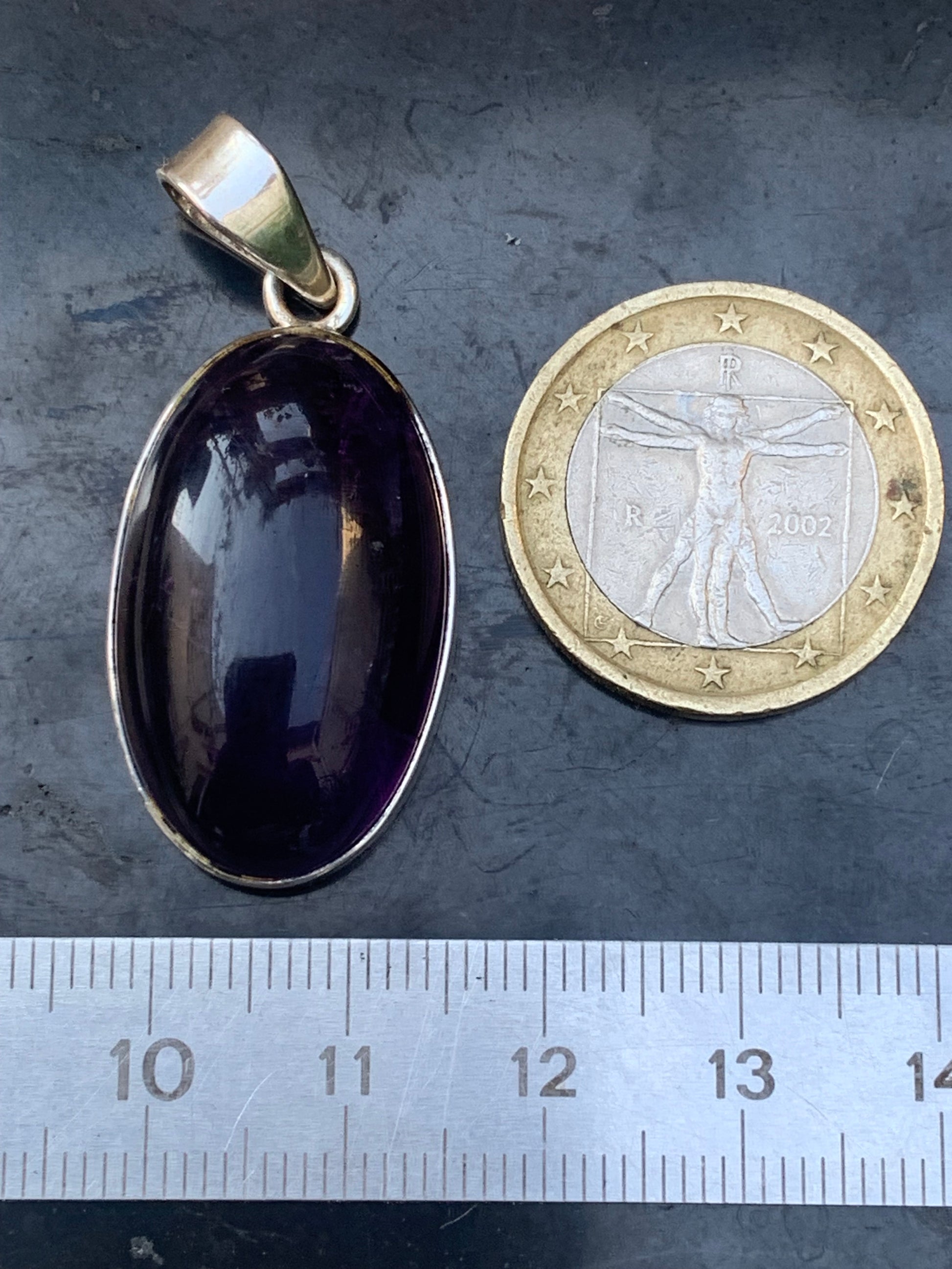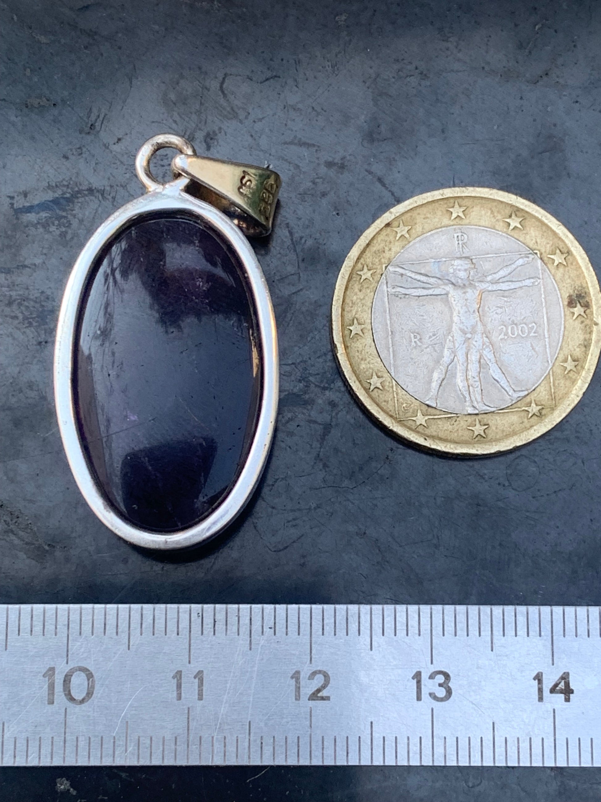 Améthyste, superbe pendentif en Argent de 42 mm de hauteur x 19 de largeur x 10 d'épaisseur. Vendu avec cordon réglable de couleur noire offert !