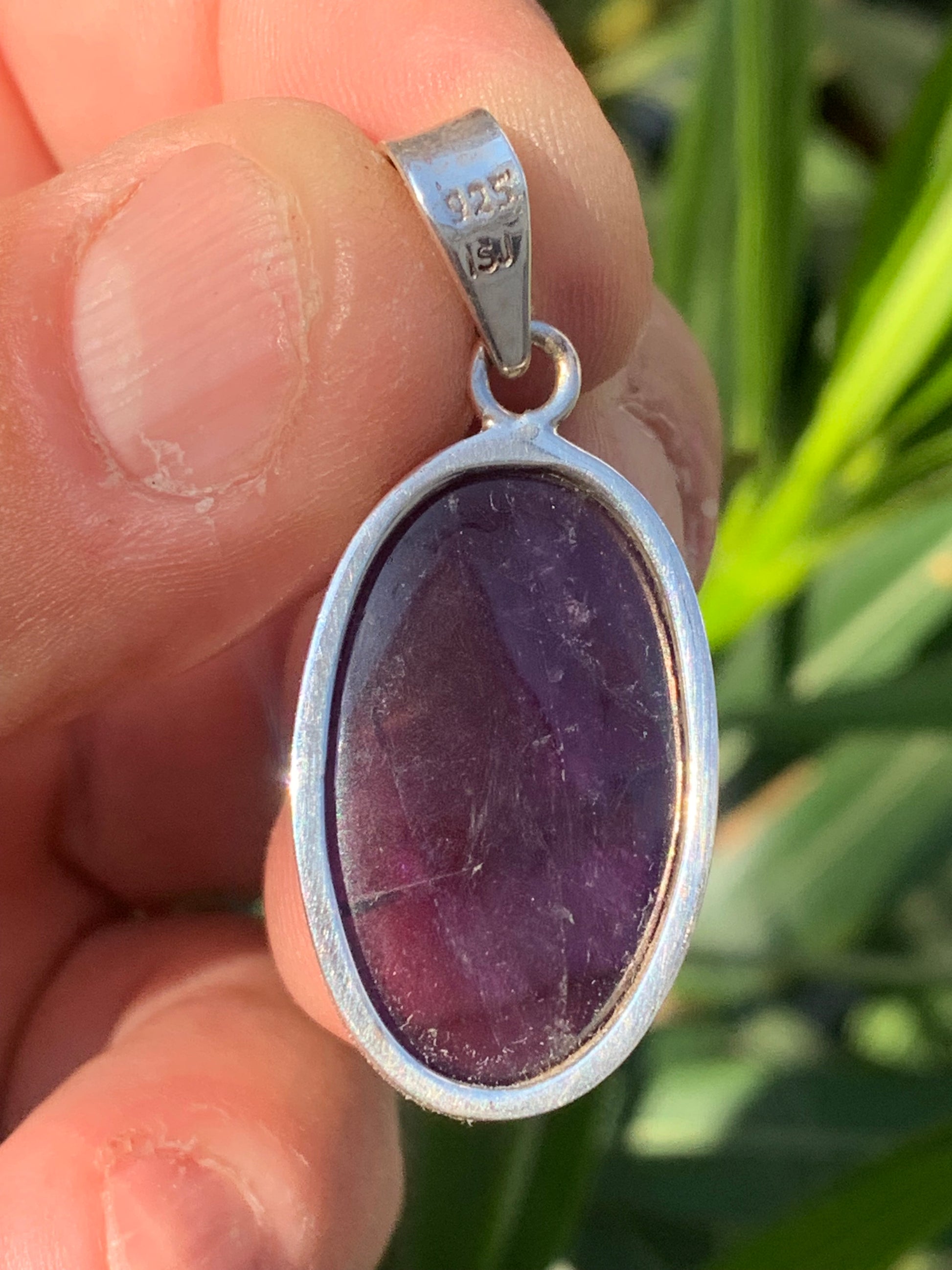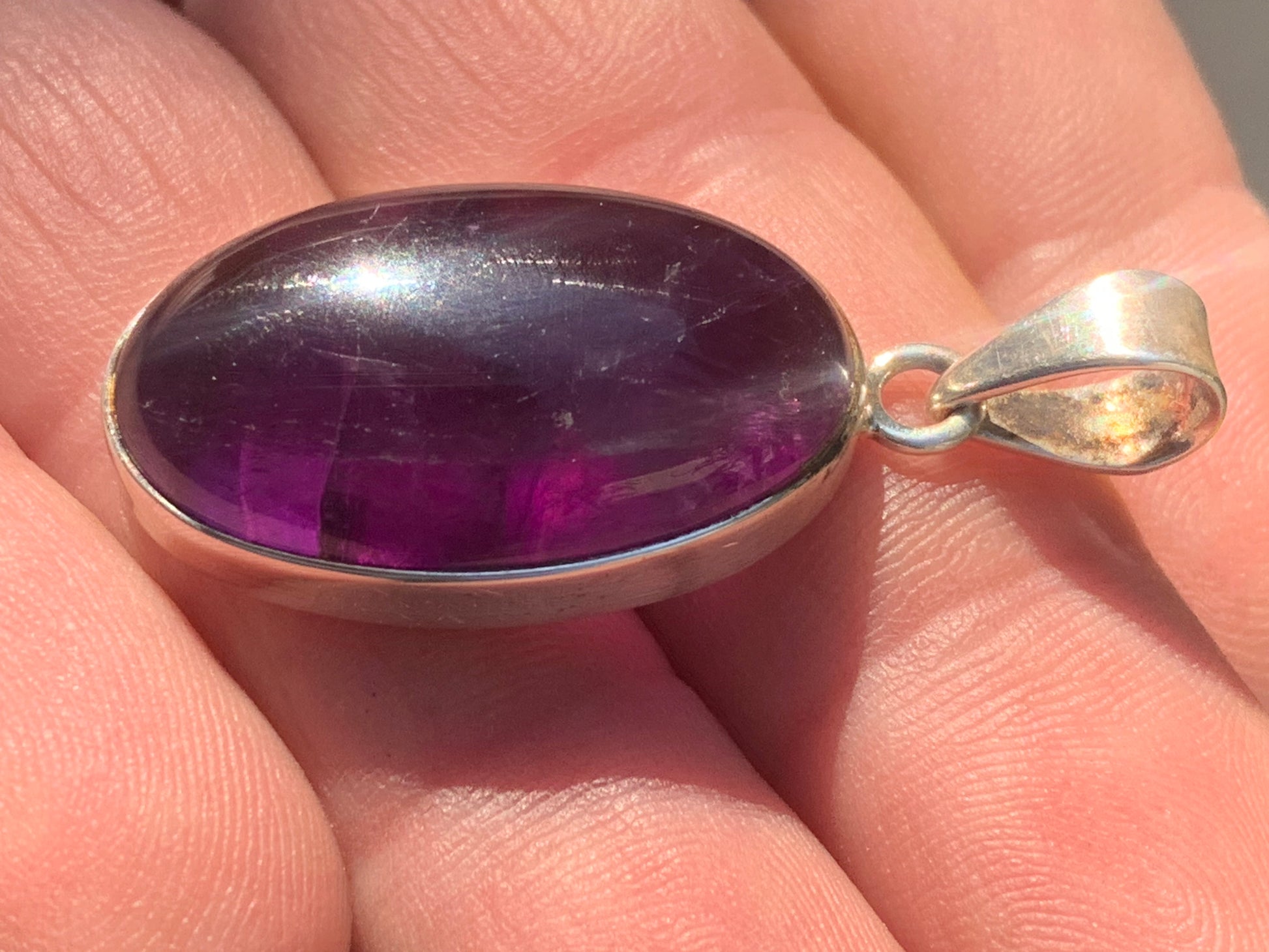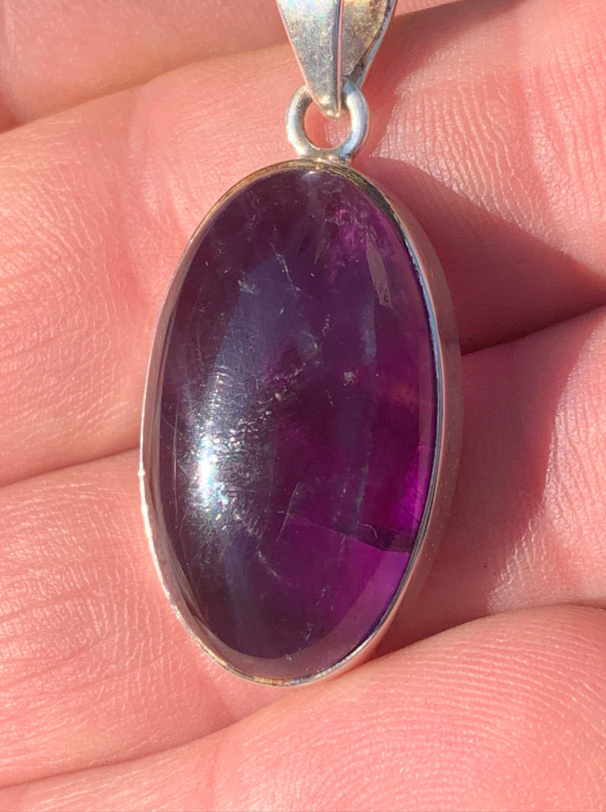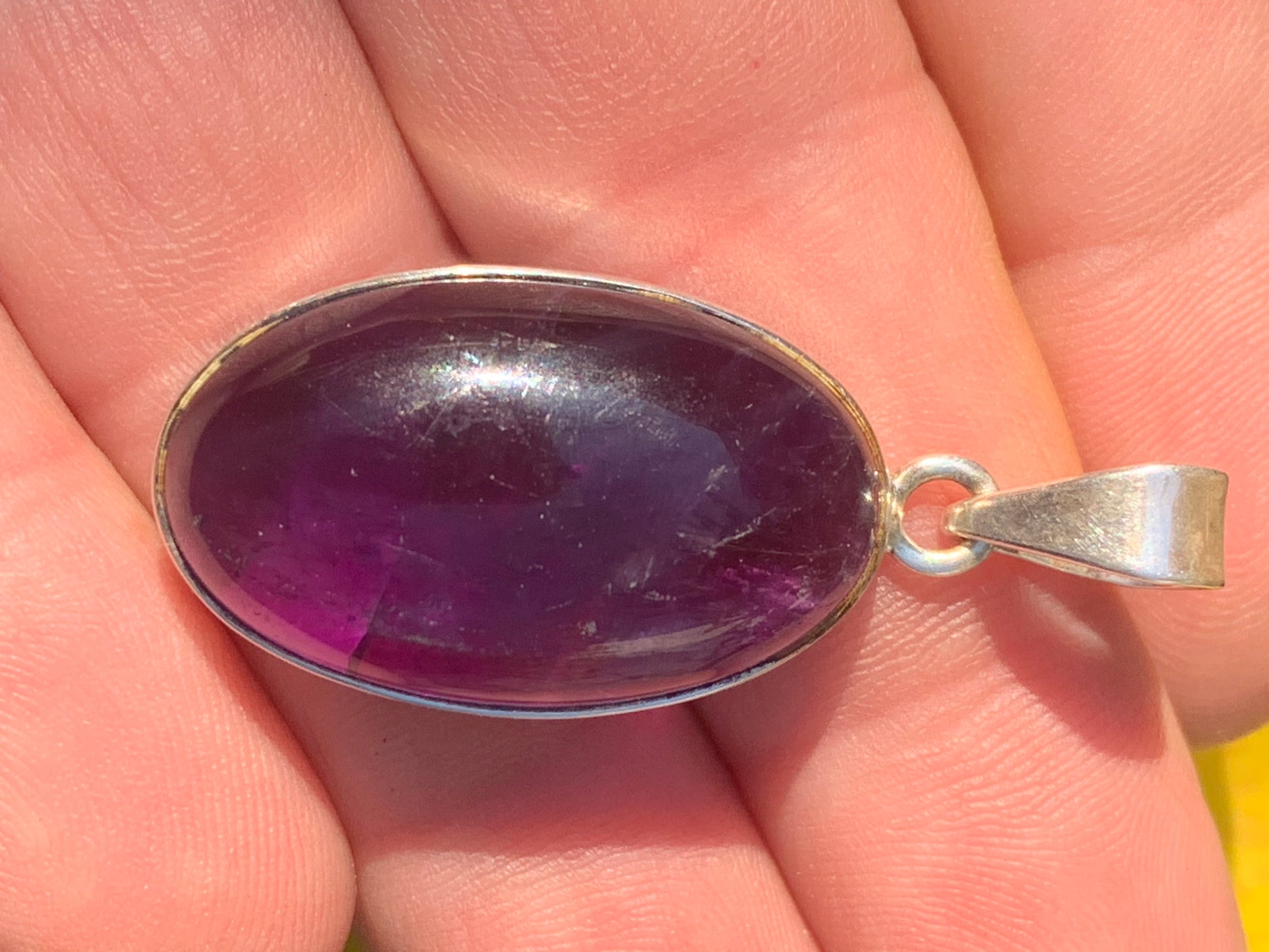 Améthyste, superbe pendentif en Argent de 42 mm de hauteur x 19 de largeur x 10 d'épaisseur. Vendu avec cordon réglable de couleur noire offert !